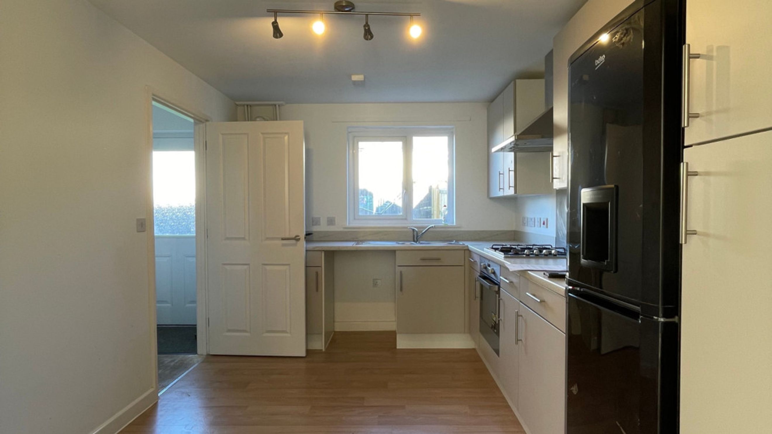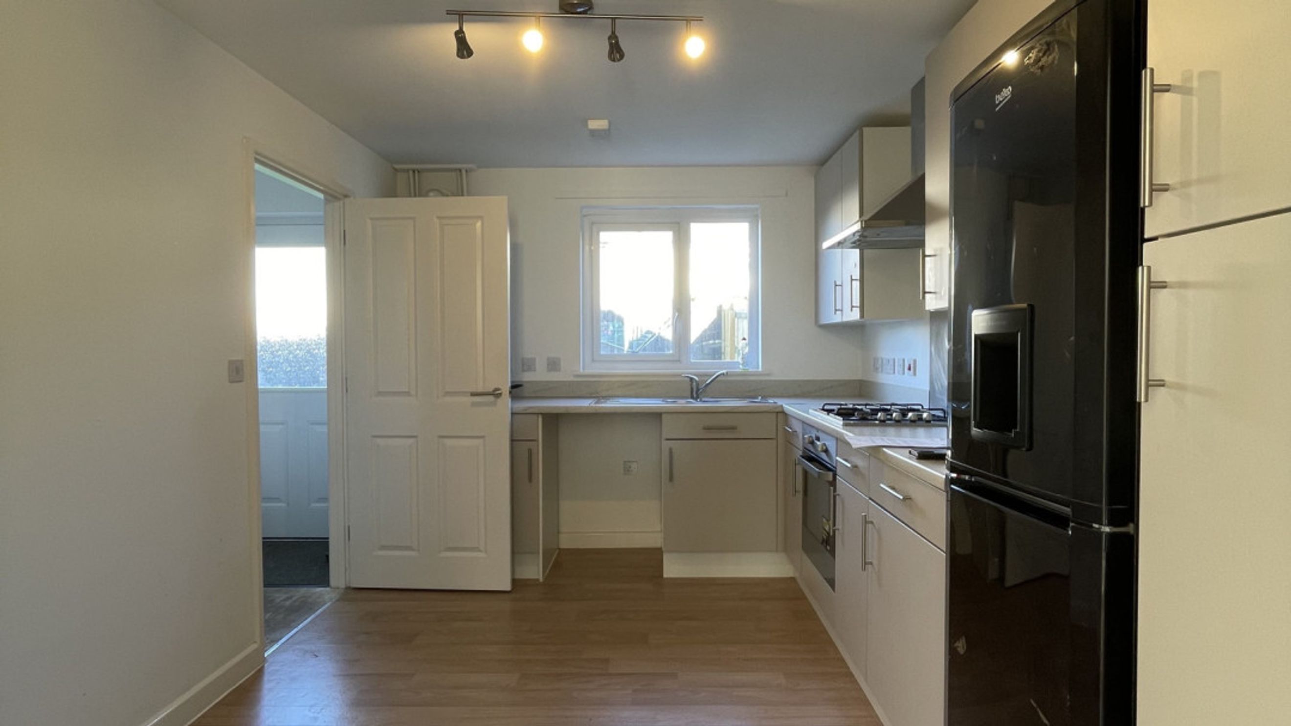 The thoughtfully designed ground floor includes an entrance hallway into a spacious living room. This leads to a separate, fully fitted kitchen/dining area, complete with a rear entrance lobby and a convenient downstairs w/c.