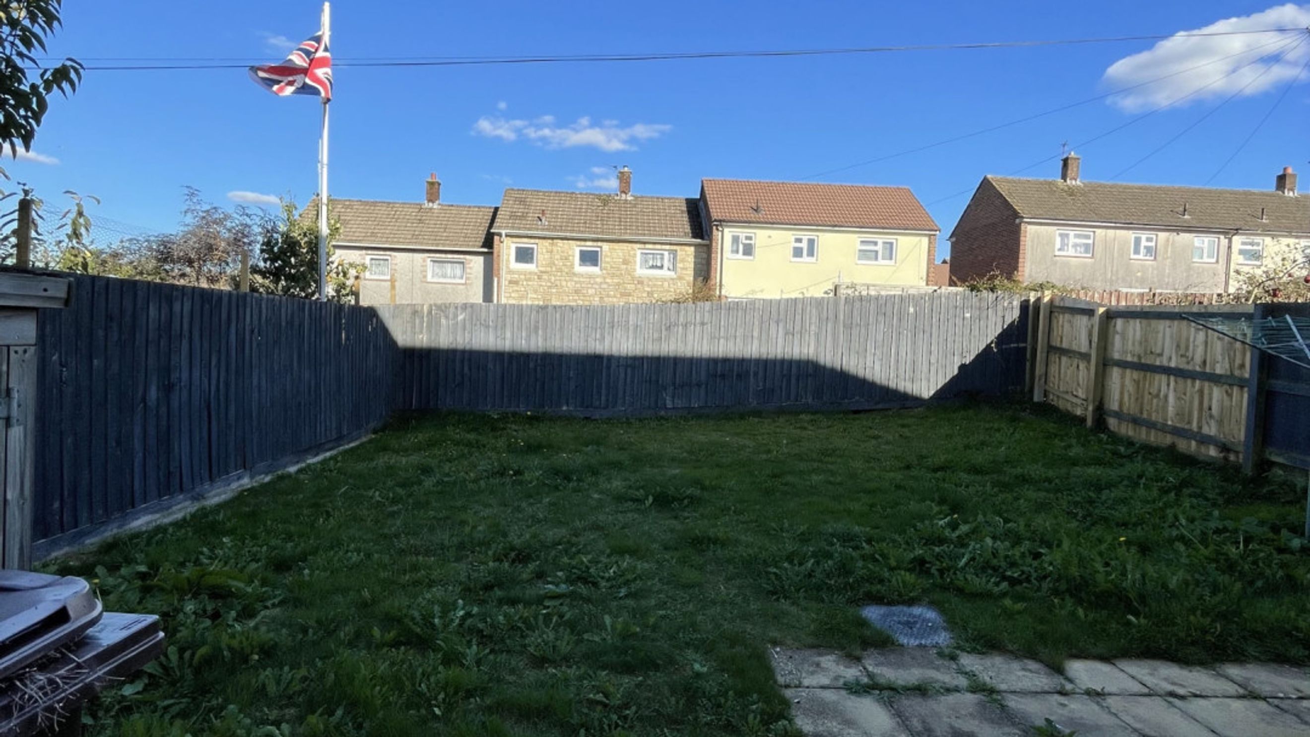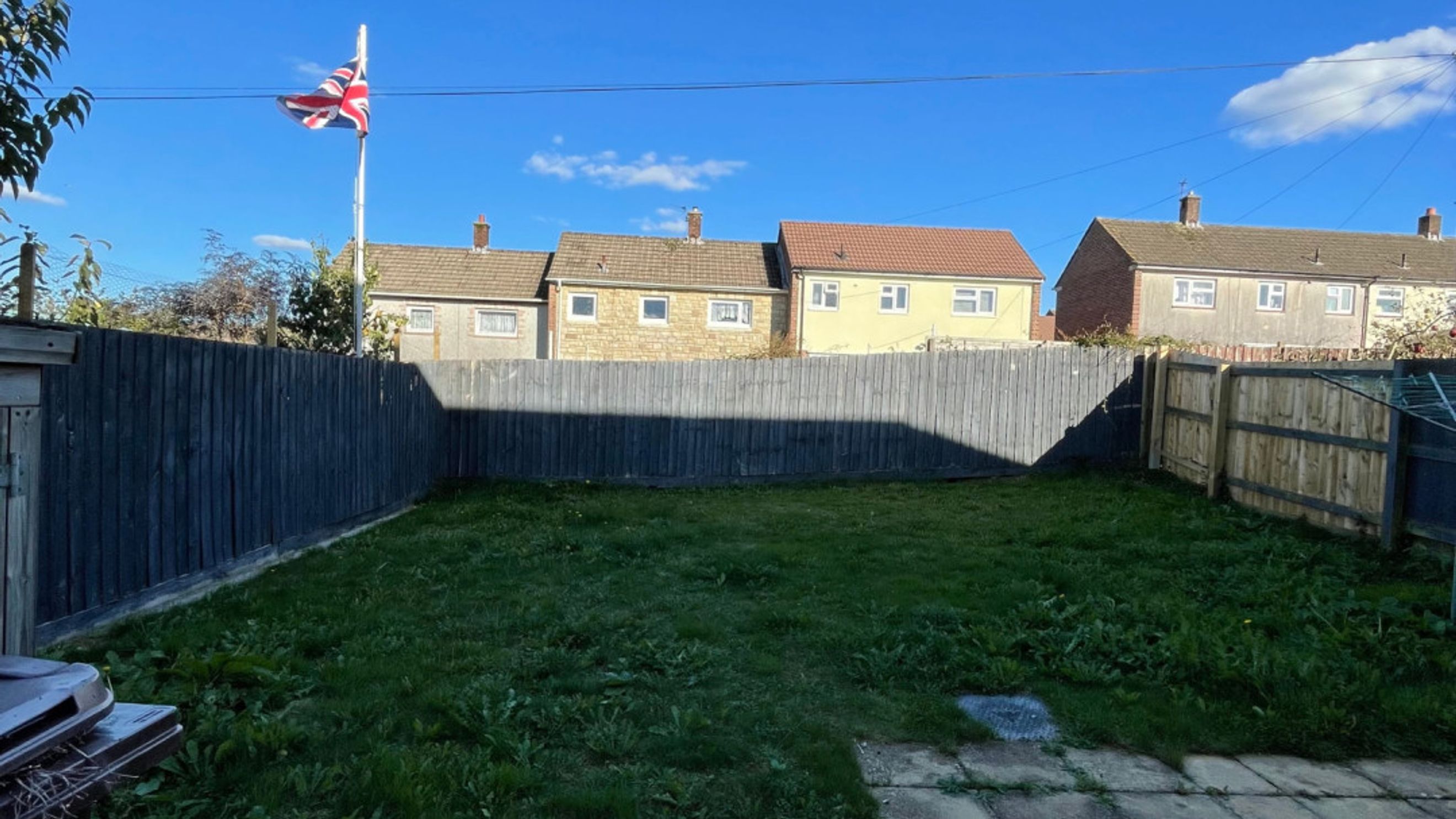 Outside, there is a large level garden area. The garden also features a small patio area. Additionally, the property offers two designated parking spaces.