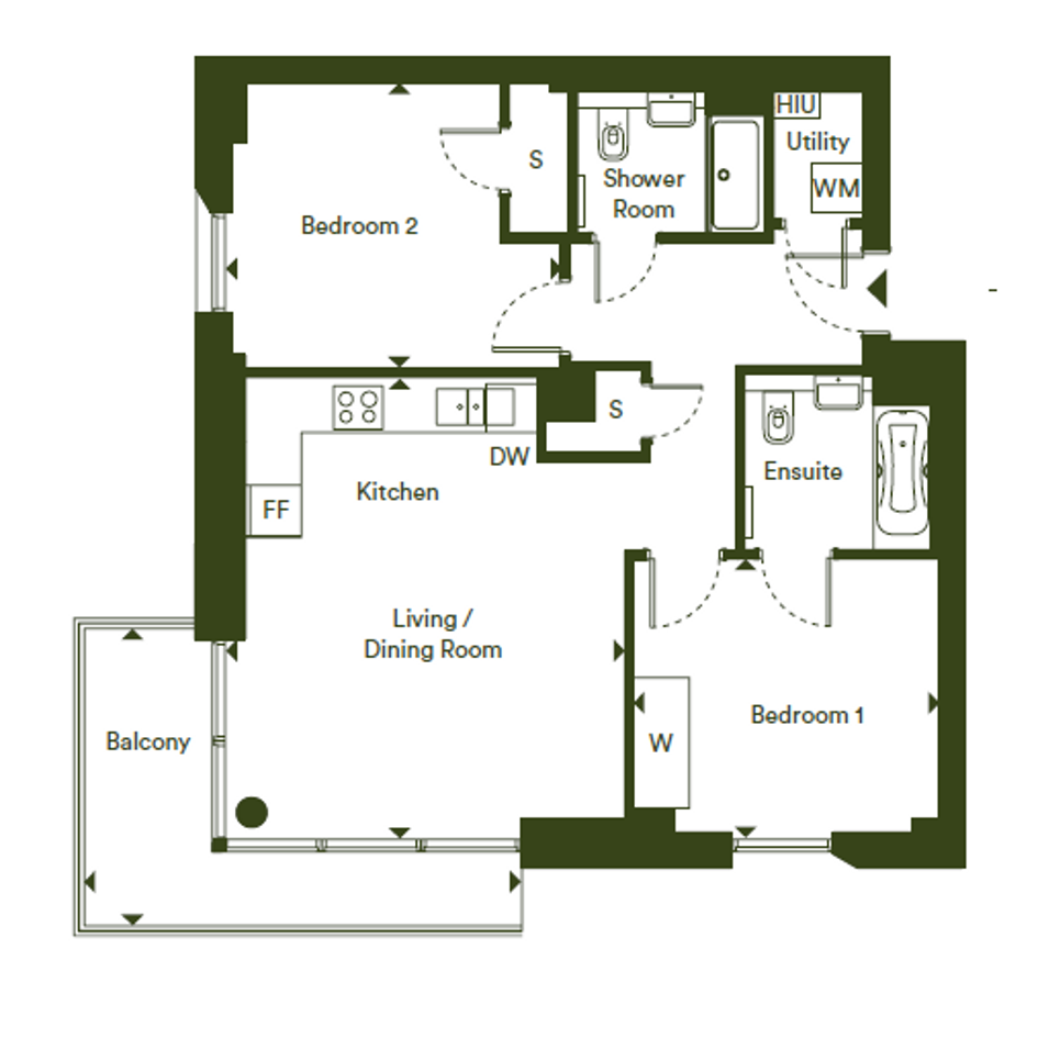 Jet House - Plot E2.6.02 is a 2 bedroom sixth floor apartment offering 70sq.m of internal floor area with outdoor space.