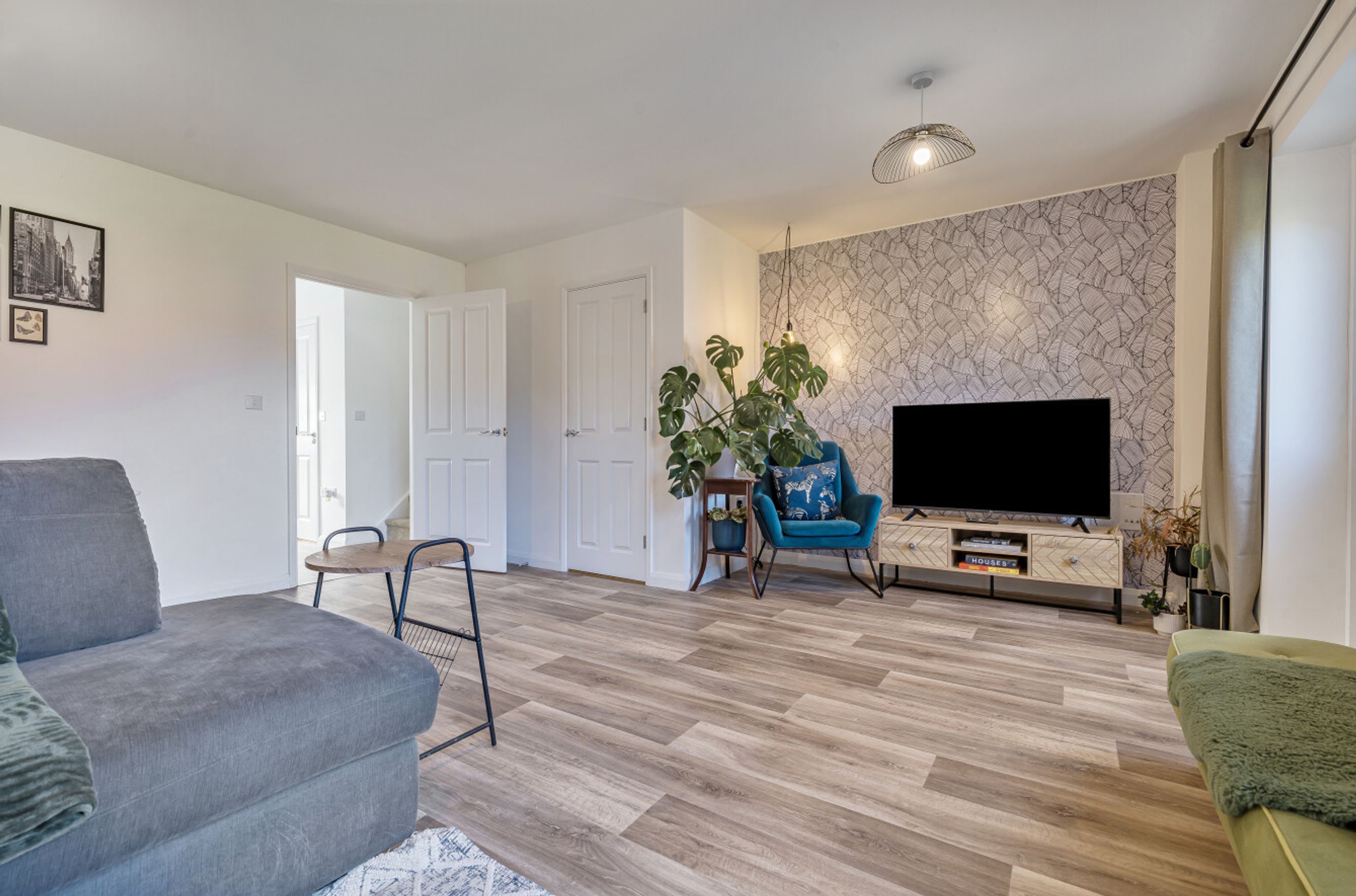 The ground floor features a bright and generous living area with direct access to the rear garden, perfect for entertaining or relaxing. Upstairs, three well-proportioned bedrooms provide ample space for family life or working from home, supported by useful built-in storage cupboards.