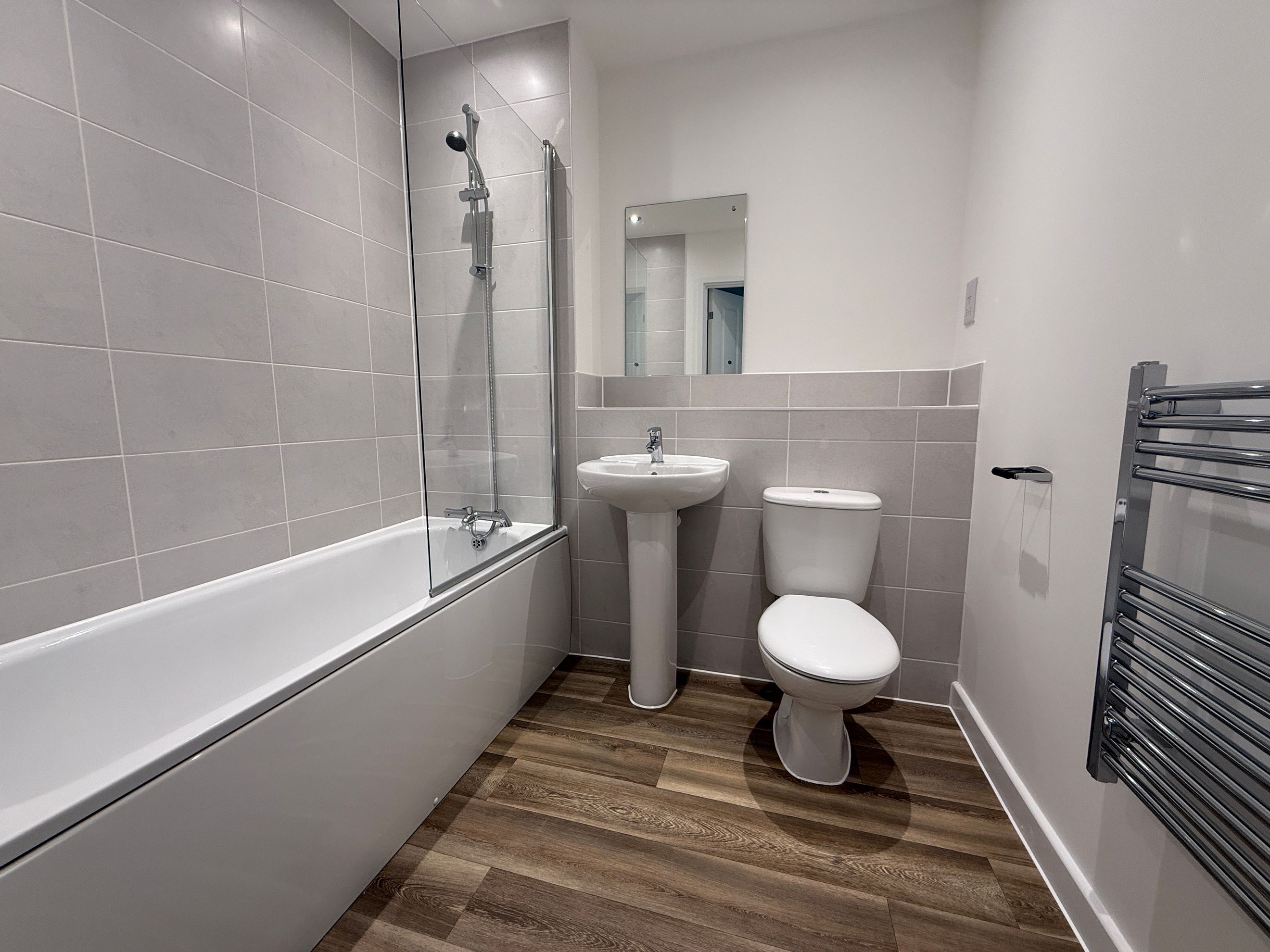 This brand new first floor apartment features an open plan lounge/kitchen/diner with access to a private balcony, a large double bedroom and a bathroom.