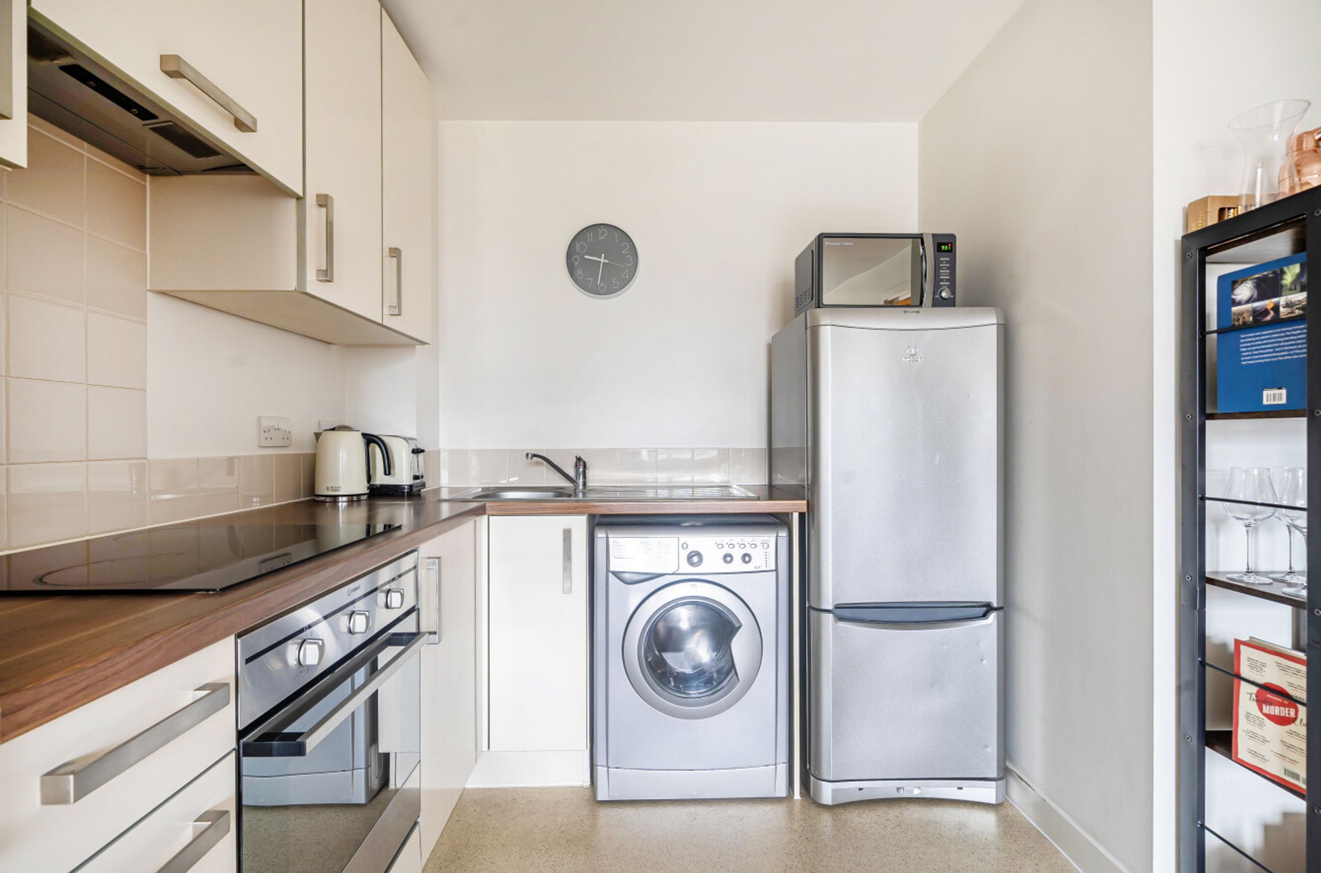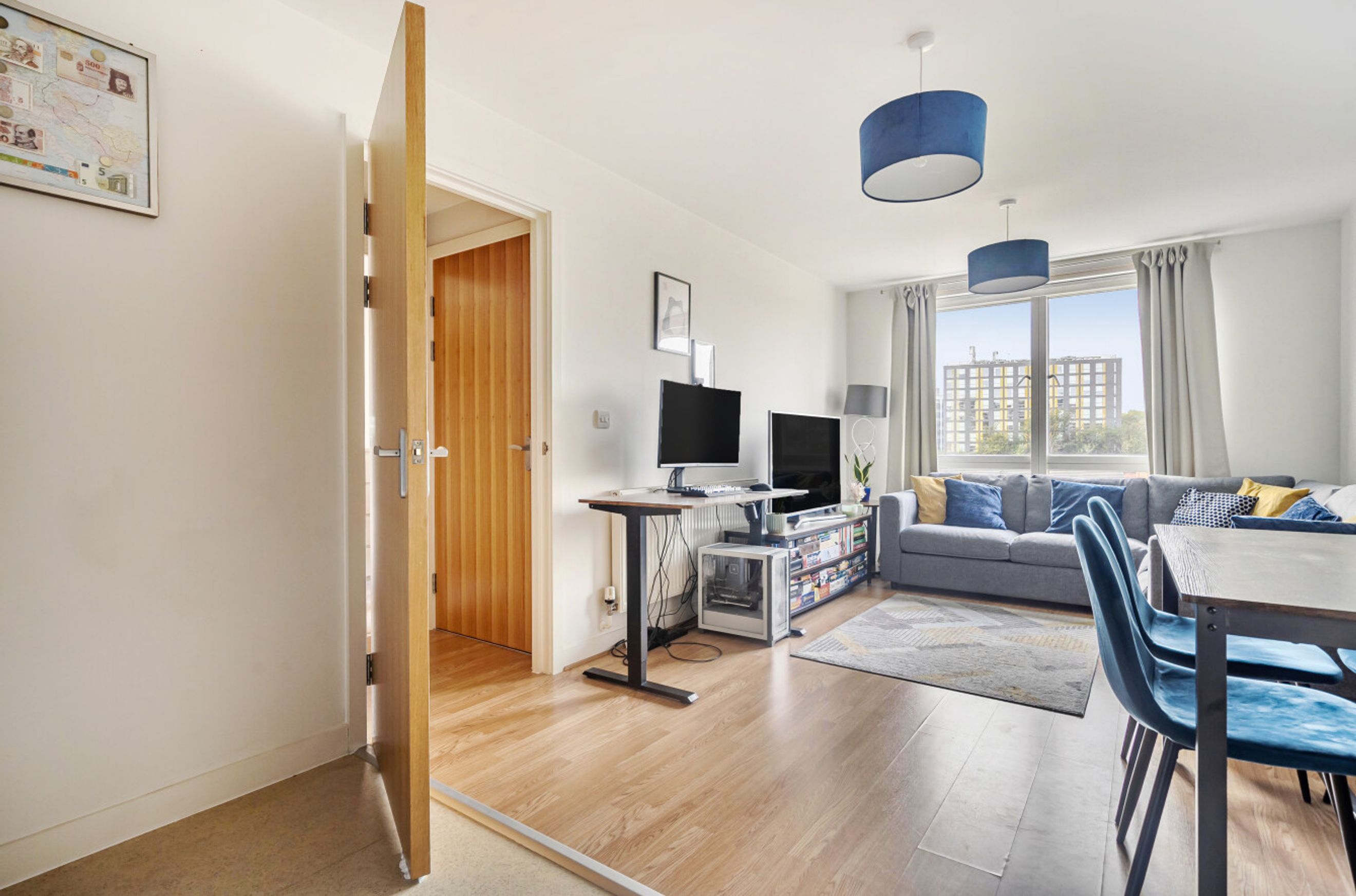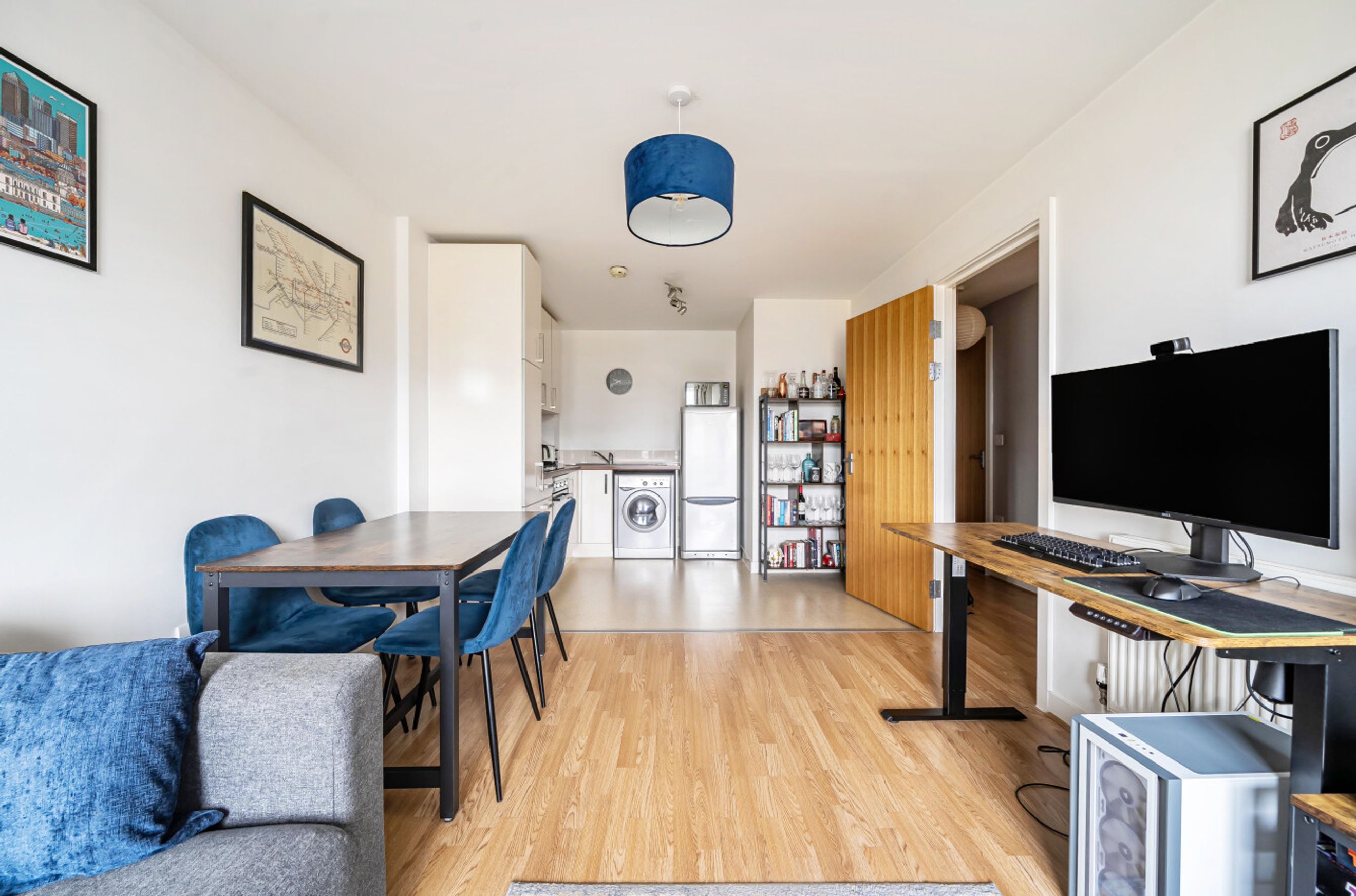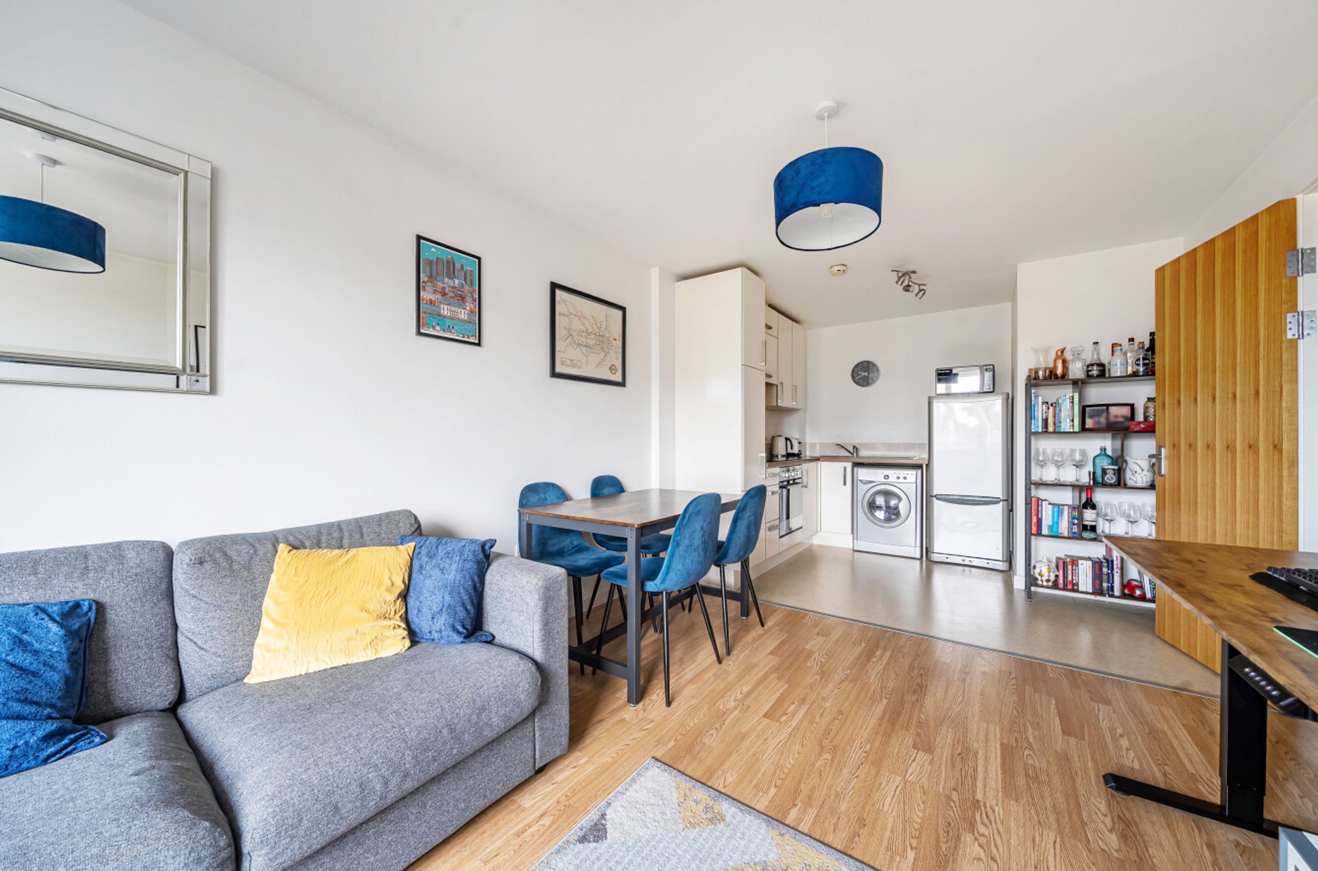 This smartly-presented, south-west-facing apartment features a twenty-two-foot reception room with attractive, open-plan kitchen area. The property has a good-sized bedroom, a simple, white-tiled bathroom and a pair of storage/utility cupboards in the entrance hallway. Well insulated walls, modern double glazing and a communal heating/hot water system make for a good energy-efficiency rating. Nara Building is part of the Silkworks development which has an attractive communal courtyard/garden. Elverson Road DLR is the nearest station with Lewisham, for services into London Bridge/Waterloo East/Charing Cross/Cannon Street/Victoria also just a short walk away.