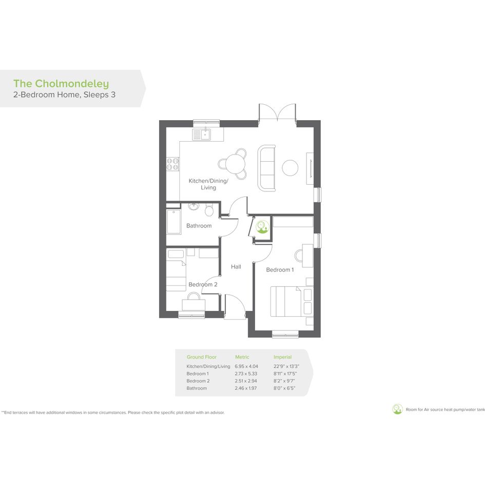 The Cholmondeley at Charnock Grove is an elegantly designed two-bedroom bungalow.