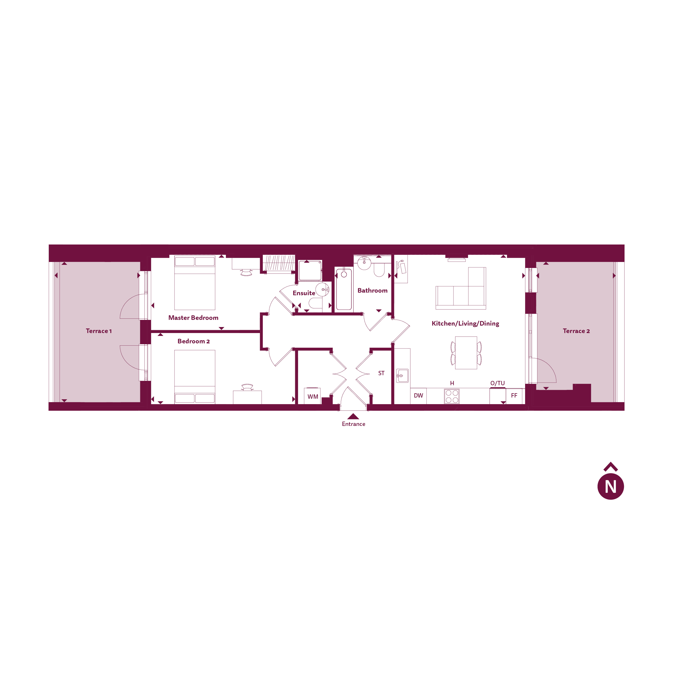 9 Williamson House is situated in New Cross, SE14, and boasts two bright bedrooms, with an en-suite to the master bedroom, a separate main bathroom, with a shower over bath unit, and a heated towel rail. The kitchen is fully fitted with integrated Zanussi appliances, with an open living/dining area, and two private balconies at either end of the property. The Pomeroy development itself also includes a beautiful communal courtyard, and is situated just an 8-minute walk from Queens Road Peckham Station, connecting residents to London Bridge in as little as 8 minutes.