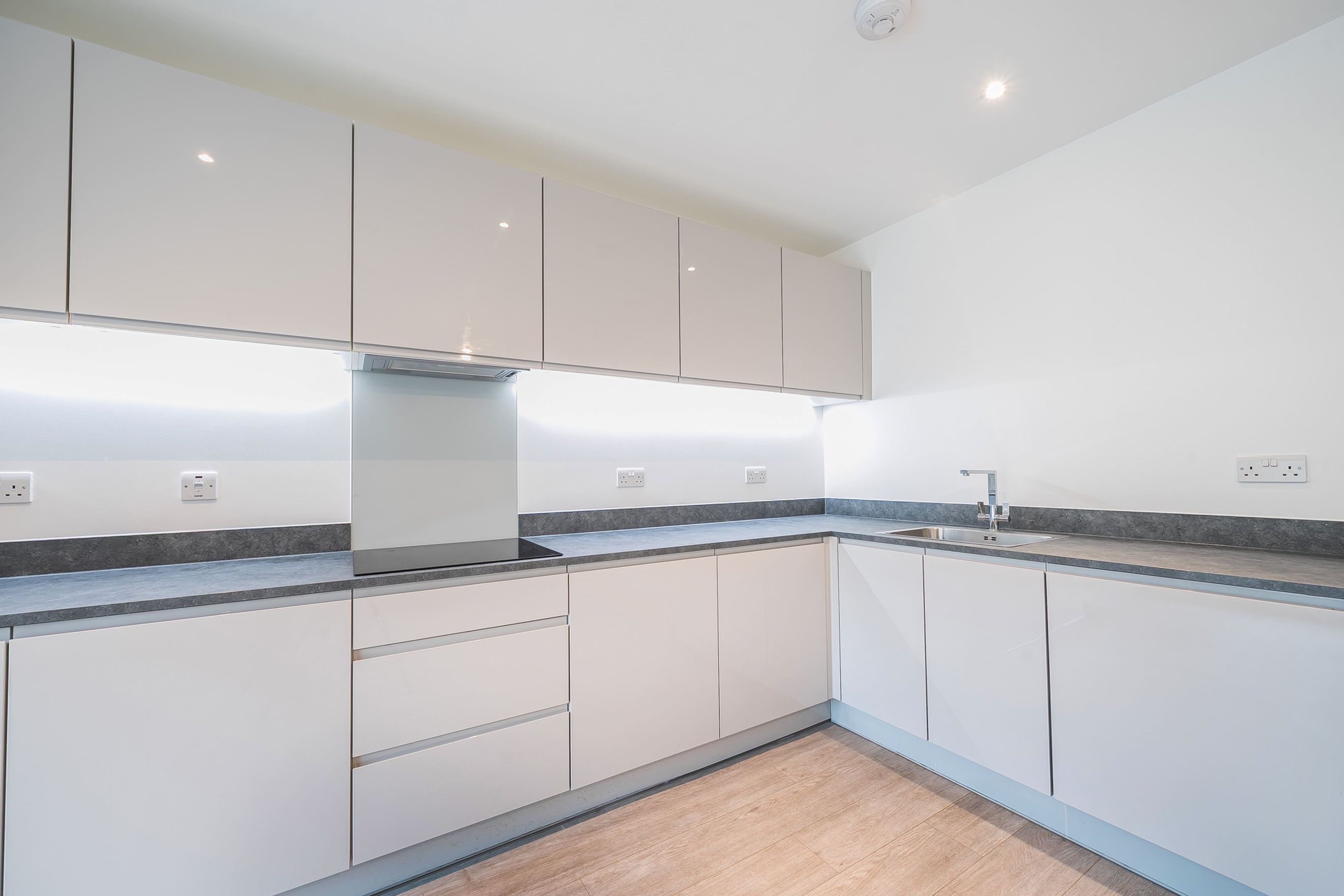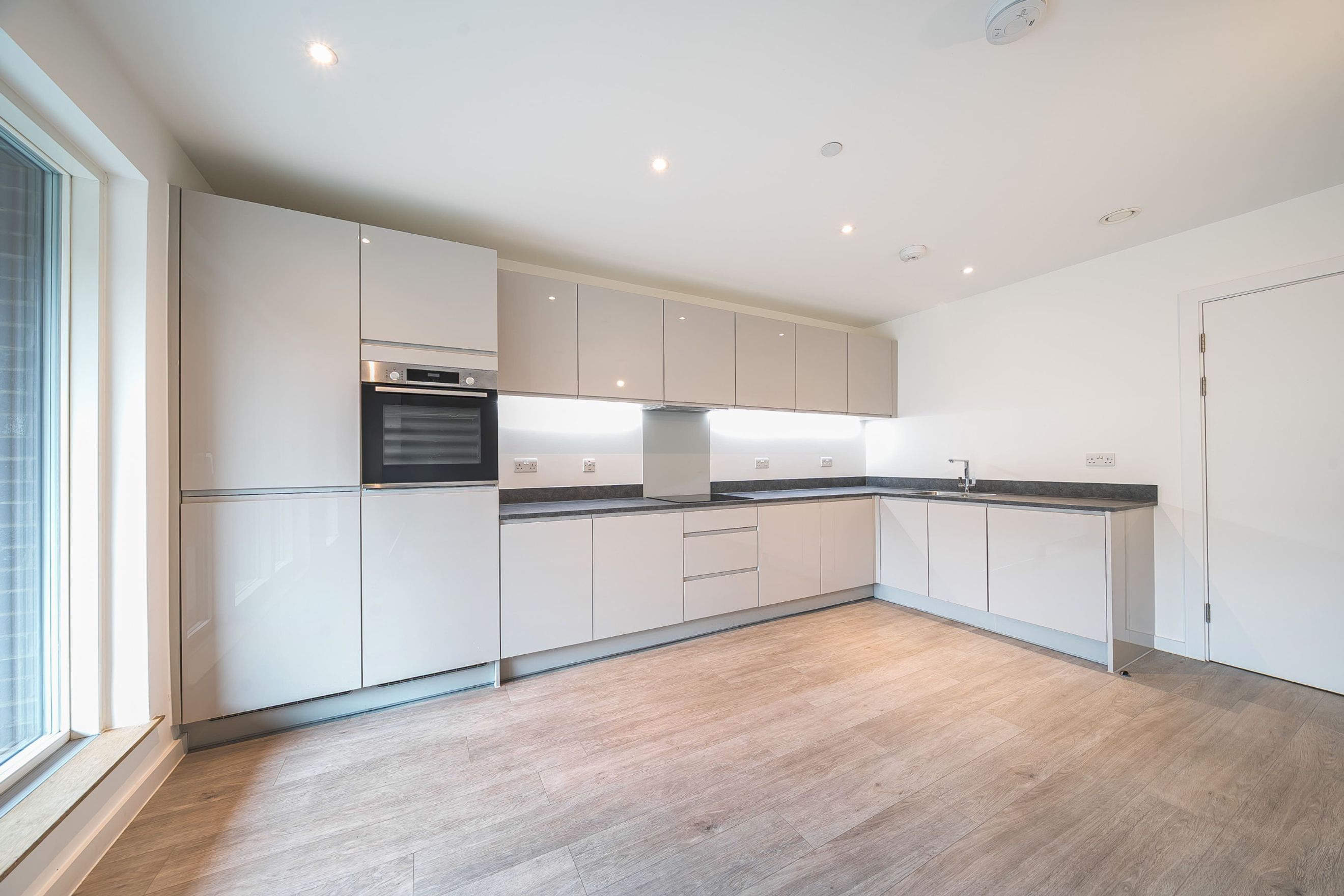 Contemporary fully fitted kitchen with integrated appliances