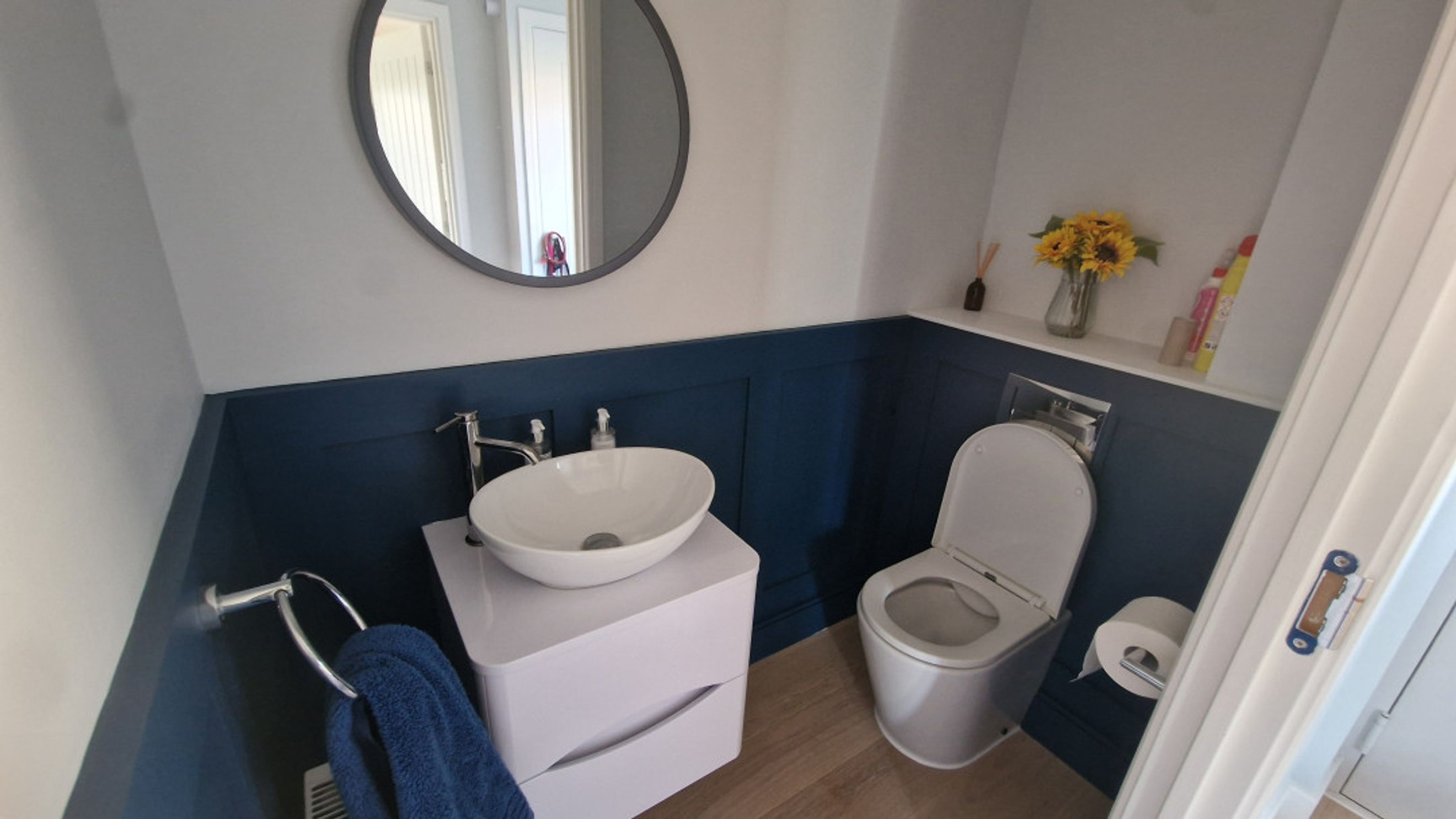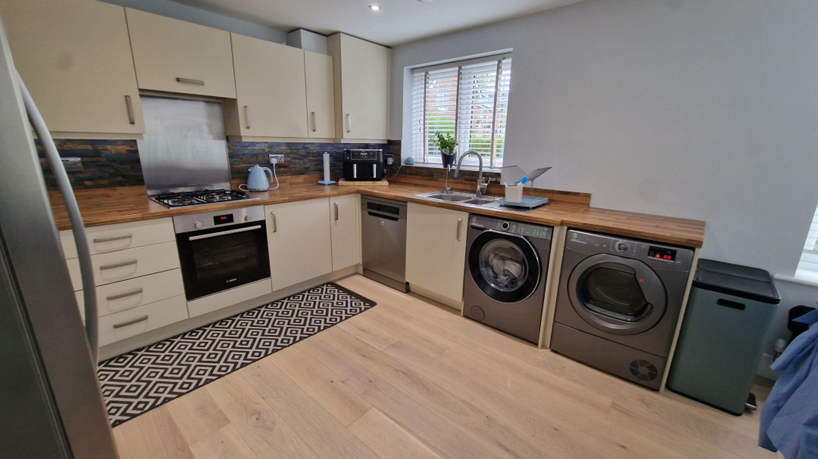 Upon entering the home, you're welcomed by a spacious hallway complete with a storage cupboard and a convenient W.C., all finished with soft carpet flooring. From here, a door leads into the modern kitchen/diner, which features a range of sleek fitted wall and base units, an integrated oven, hob, and extractor fan. The vinyl flooring adds a practical touch to this stylish space. The lounge is accessed from the hallway and offers a bright, airy atmosphere, enhanced by double doors that open out onto the private rear garden. This room also benefits from comfortable carpet flooring, making it a perfect space for relaxing or entertaining.