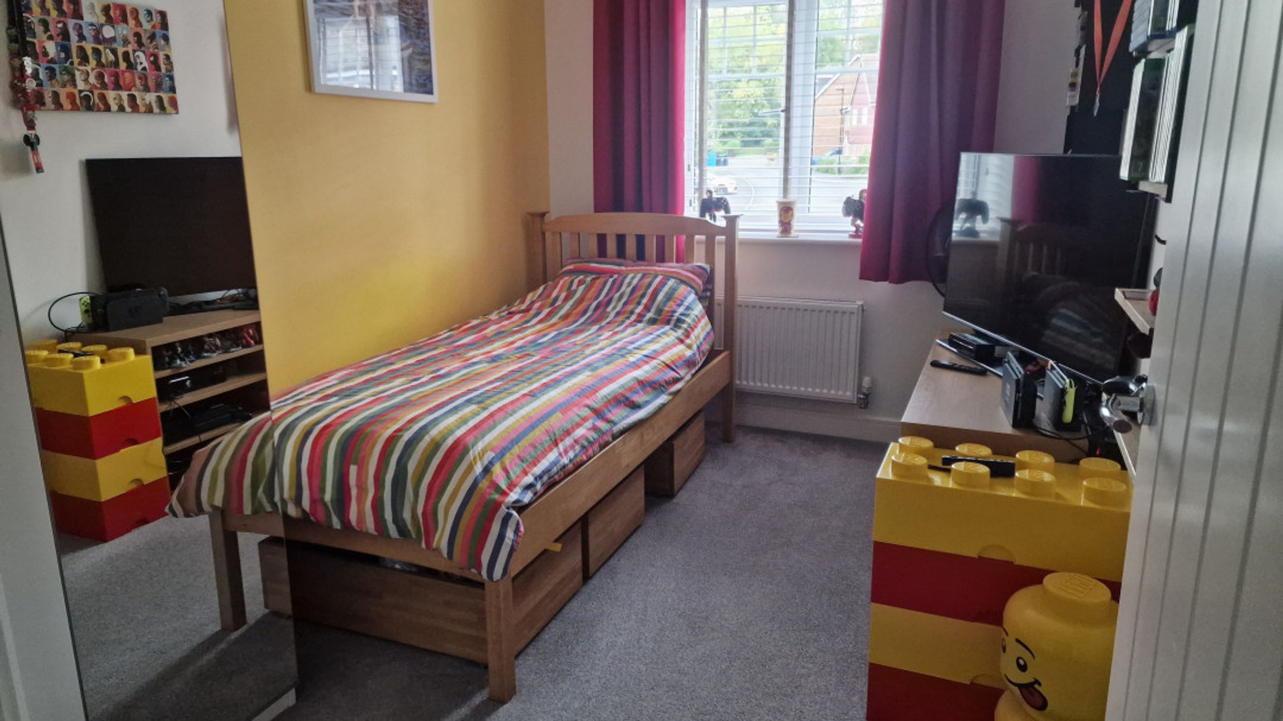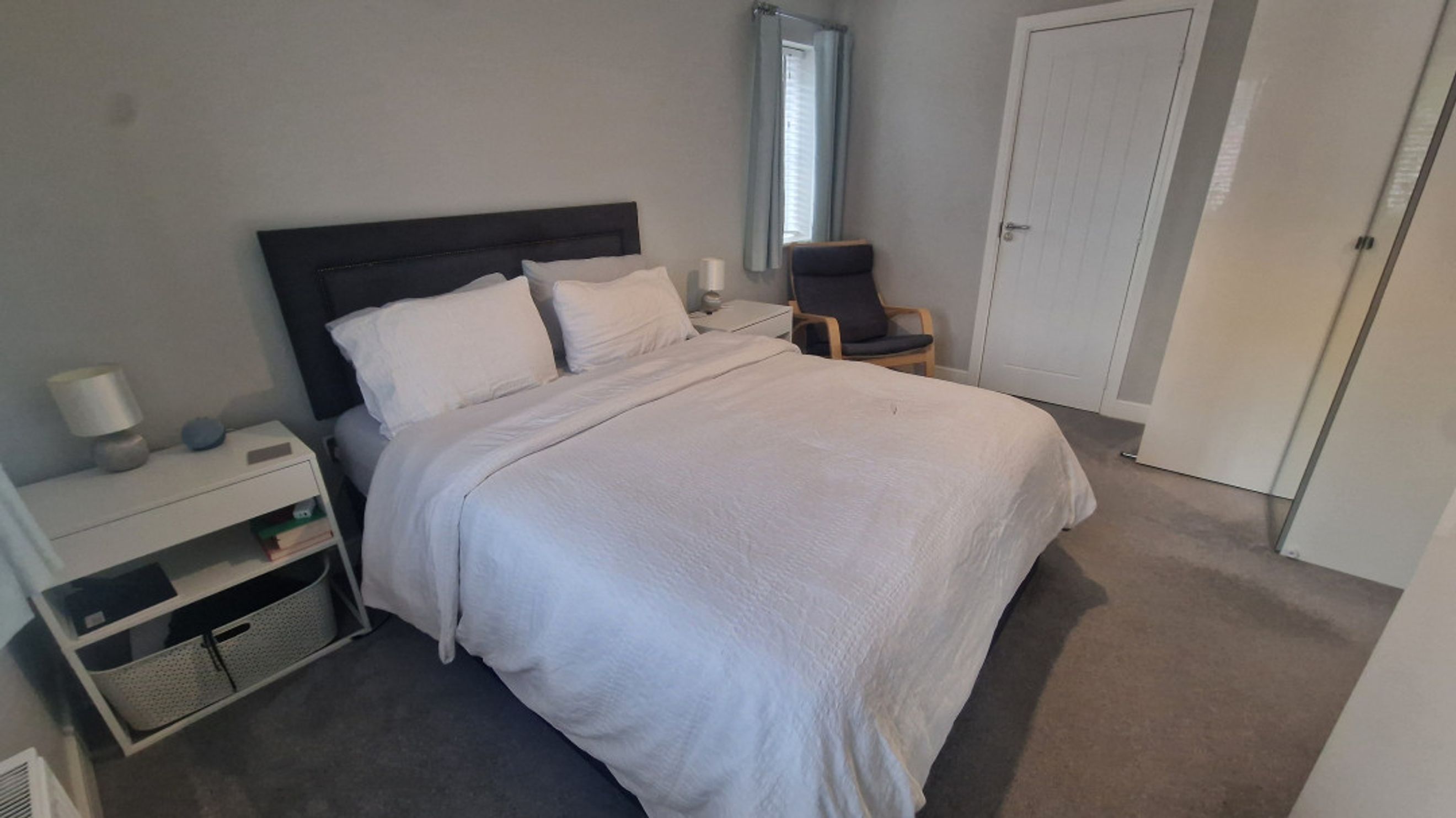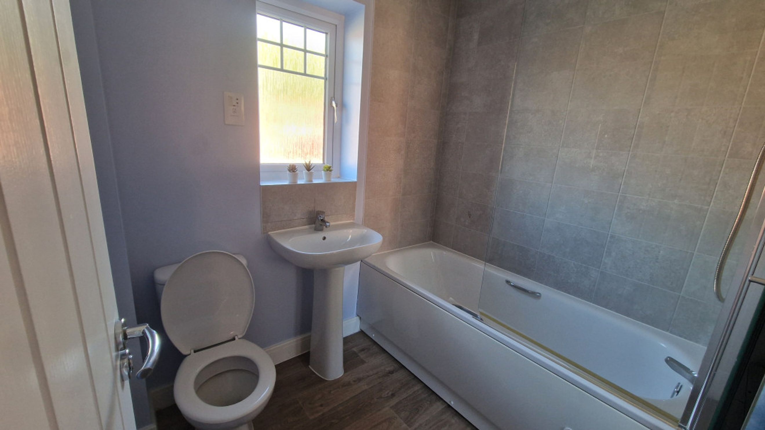 Upstairs, the carpeted landing leads to a newly fitted family bathroom with a clean white suite and vinyl flooring. The generous main bedroom is positioned at the front of the property and enjoys plenty of natural light through a large window. This room also includes access to a private ensuite shower room with a built-in storage cupboard and vinyl flooring. Bedroom two is a good-sized double with dual-aspect windows to the front and side, along with a double storage cupboard. Bedroom three is located at the rear of the home and overlooks the garden, offering a peaceful retreat.