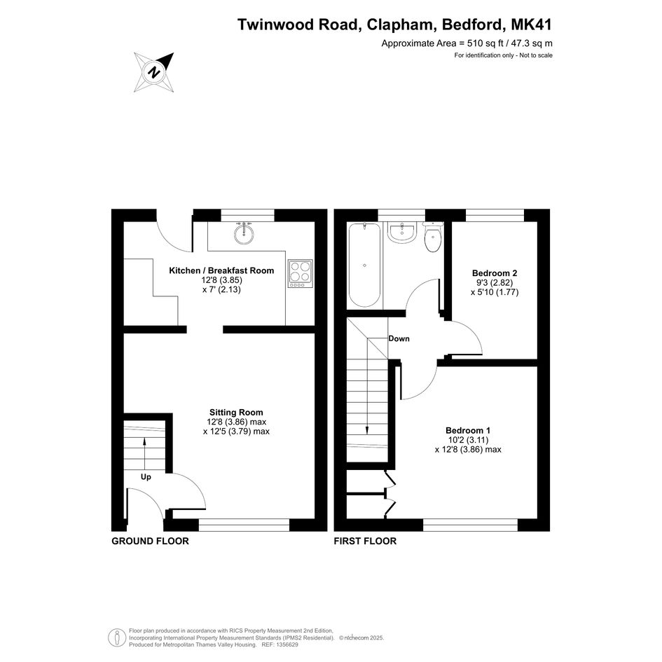 The property is spread across two floors with the living room and kitchen on the ground floor. On the first floor, there are two-bedrooms and one family bathroom.