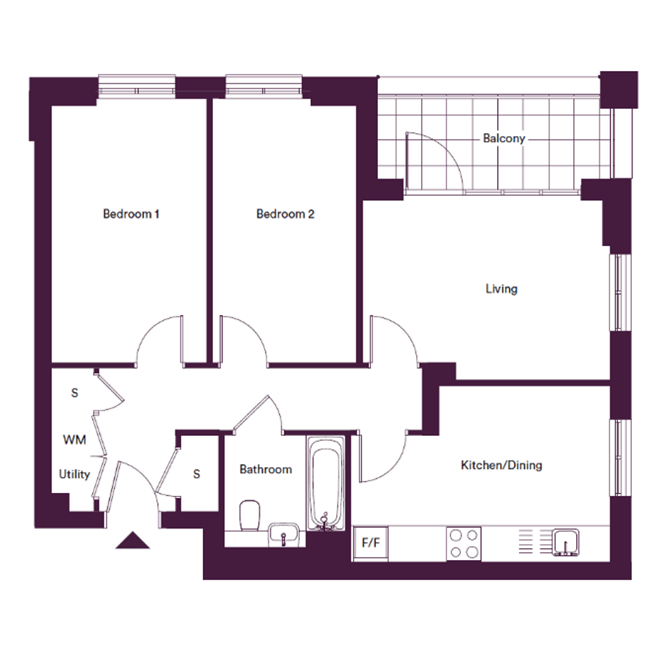 2 bedroom, 3rd floor apartment offering 70 sq.m of internal floor area with private outdoor space.