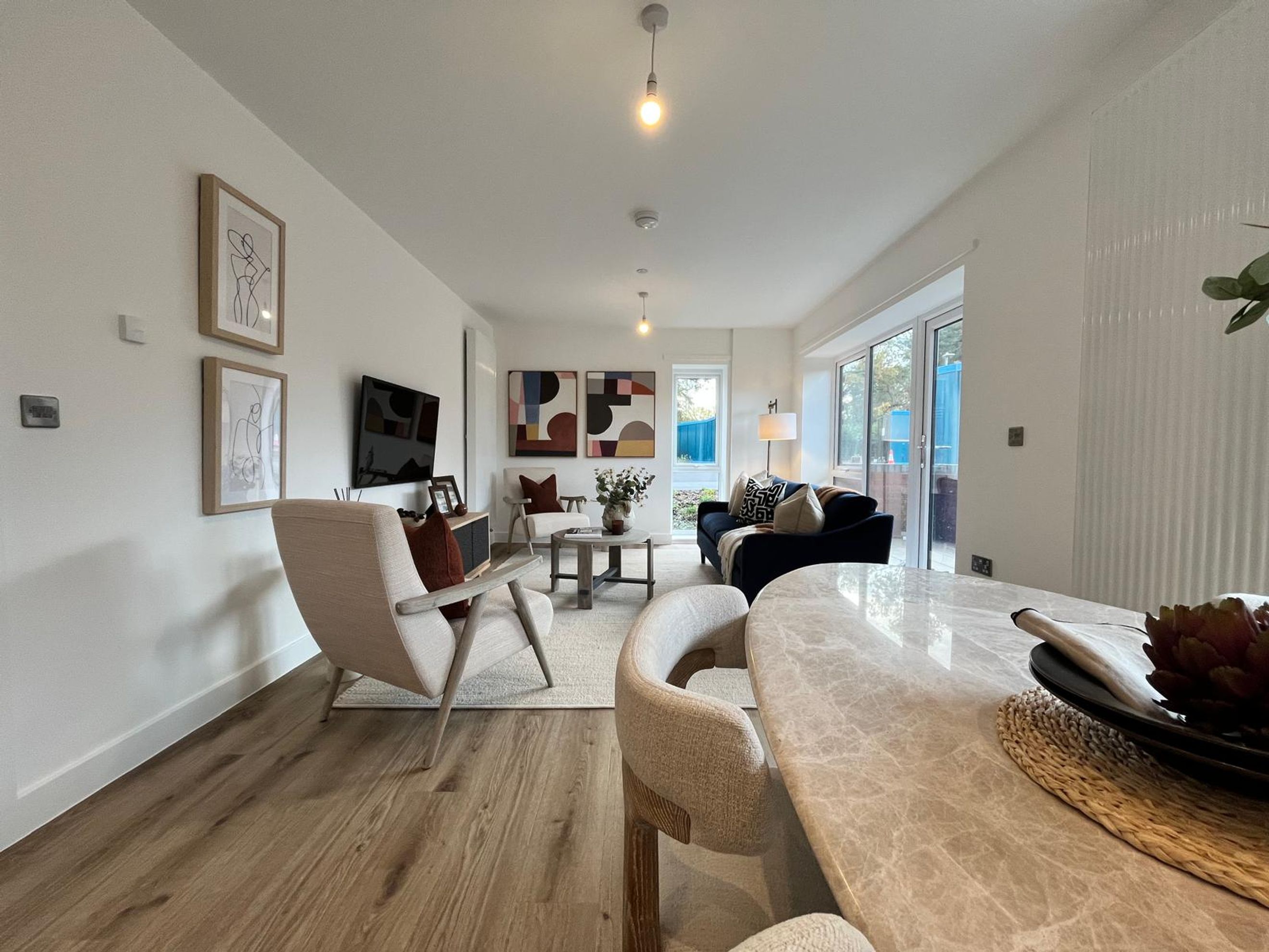 Each property welcomes you with a spacious hallway that separates all rooms, creating a sense of flow and privacy throughout. Enjoy two generously sized double bedrooms, a family bathroom, and a bright, open-plan living area perfect for entertaining or relaxing in style.
