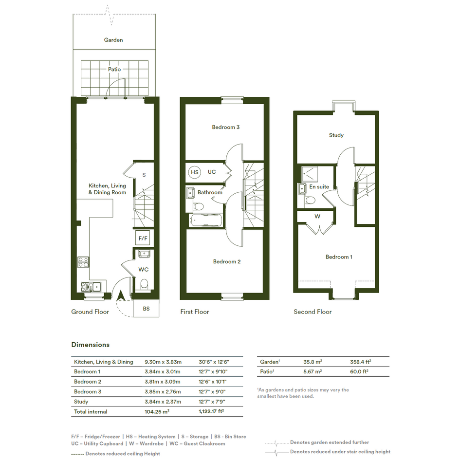 3 bedroom, 2 bathroom over 3 floor providing 104 sq m of internal space.