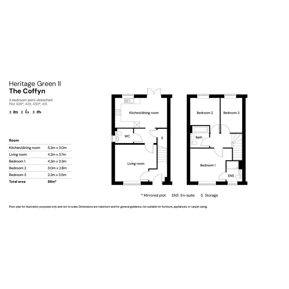 The large, bright living room is the perfect space for relaxing or entertaining guests, plus there’s a downstairs WC and under stair storage. Upstairs there are 3 bedrooms and a stylish bathroom suite – bedroom 1 is spacious and features a tiled en-suite shower room, bedroom 2 is a bright double bedroom and bedroom 3 is versatile and suitable for many uses, including child or guest bedroom or home office.