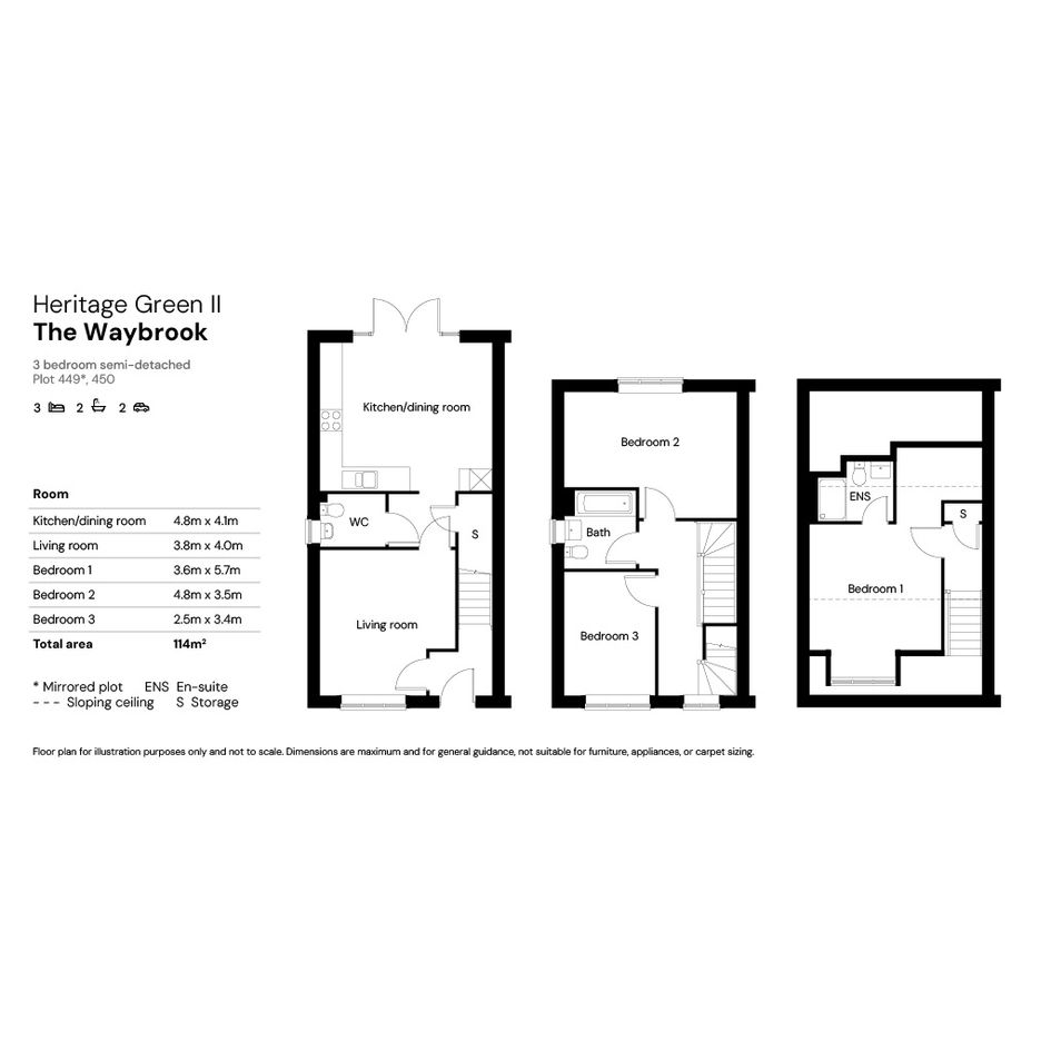 On the first floor are two good sized bedrooms and a contemporary family bathroom. The entire top floor is dedicated to the impressive main bedroom, complete with an en-suite and built-in storage. This home offers one parking space & garage. The Waybrook is perfect for families or first-time buyers looking for a modern and versatile space.