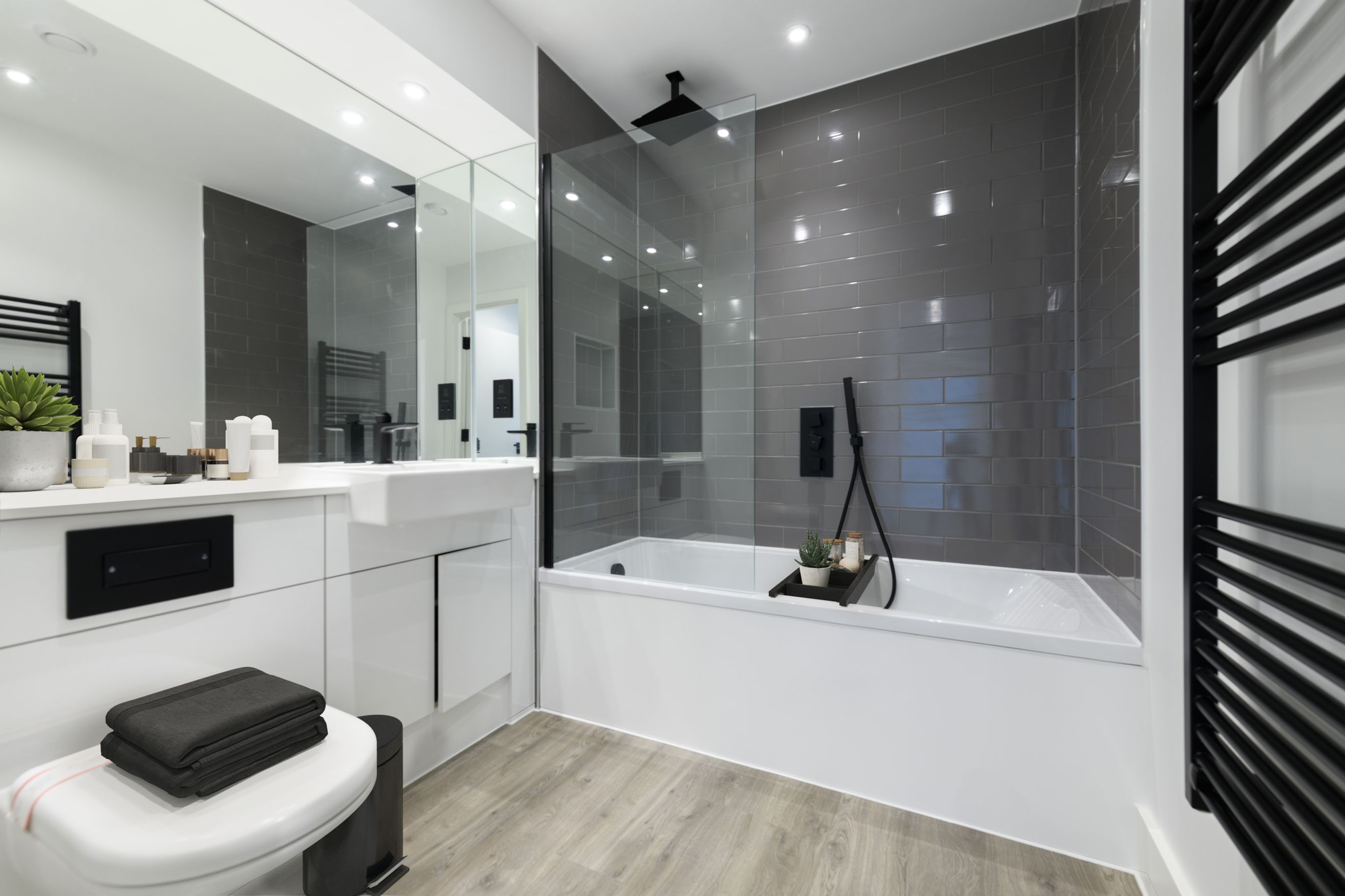 These high specification apartments include stylish fitted kitchens in a sleek grey, with integrated appliances, bathrooms with fitted furniture and modish matt black taps. Each apartment contains ample storage, Amtico flooring throughout, with carpets to the bedrooms.