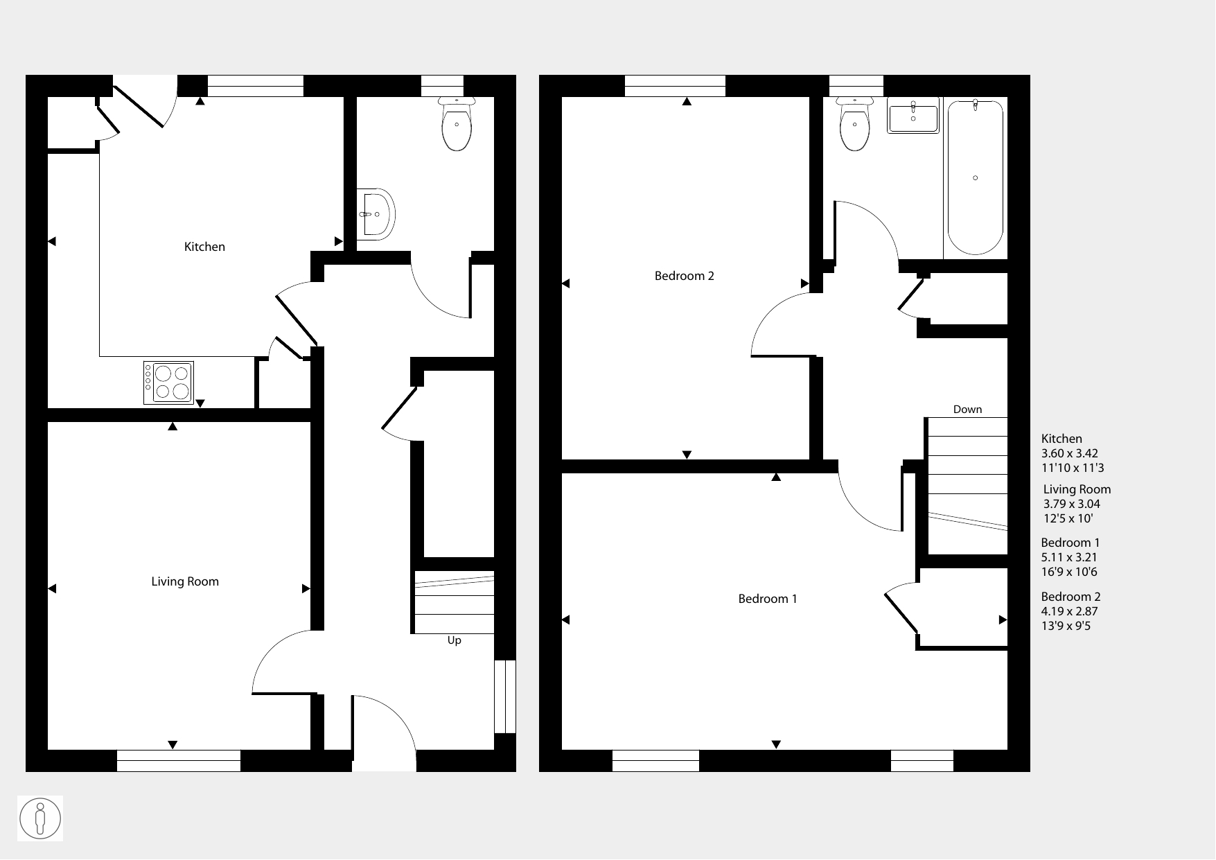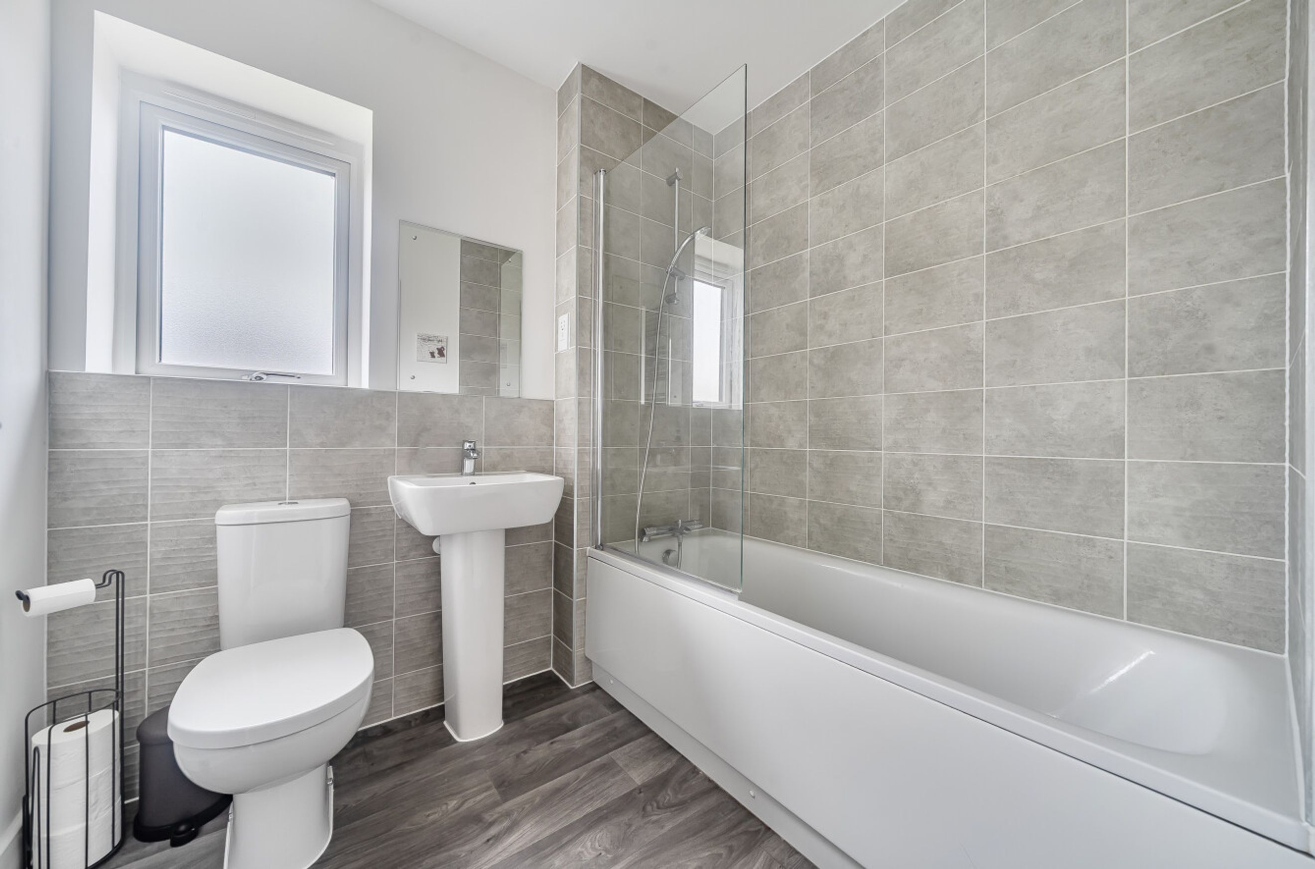 Upstairs, there are two comfortable, double bedrooms. The bathroom has a modern, white suite.