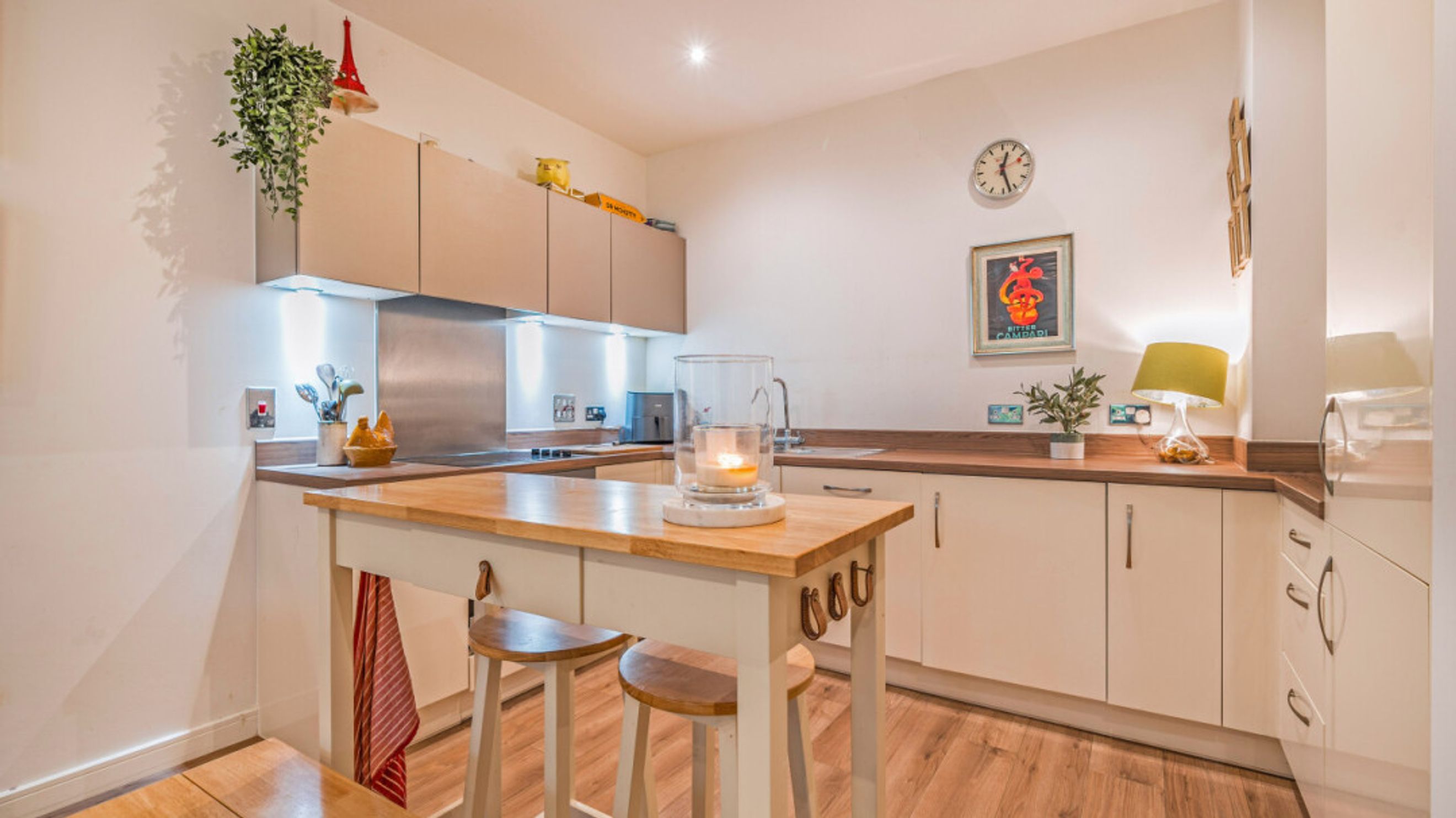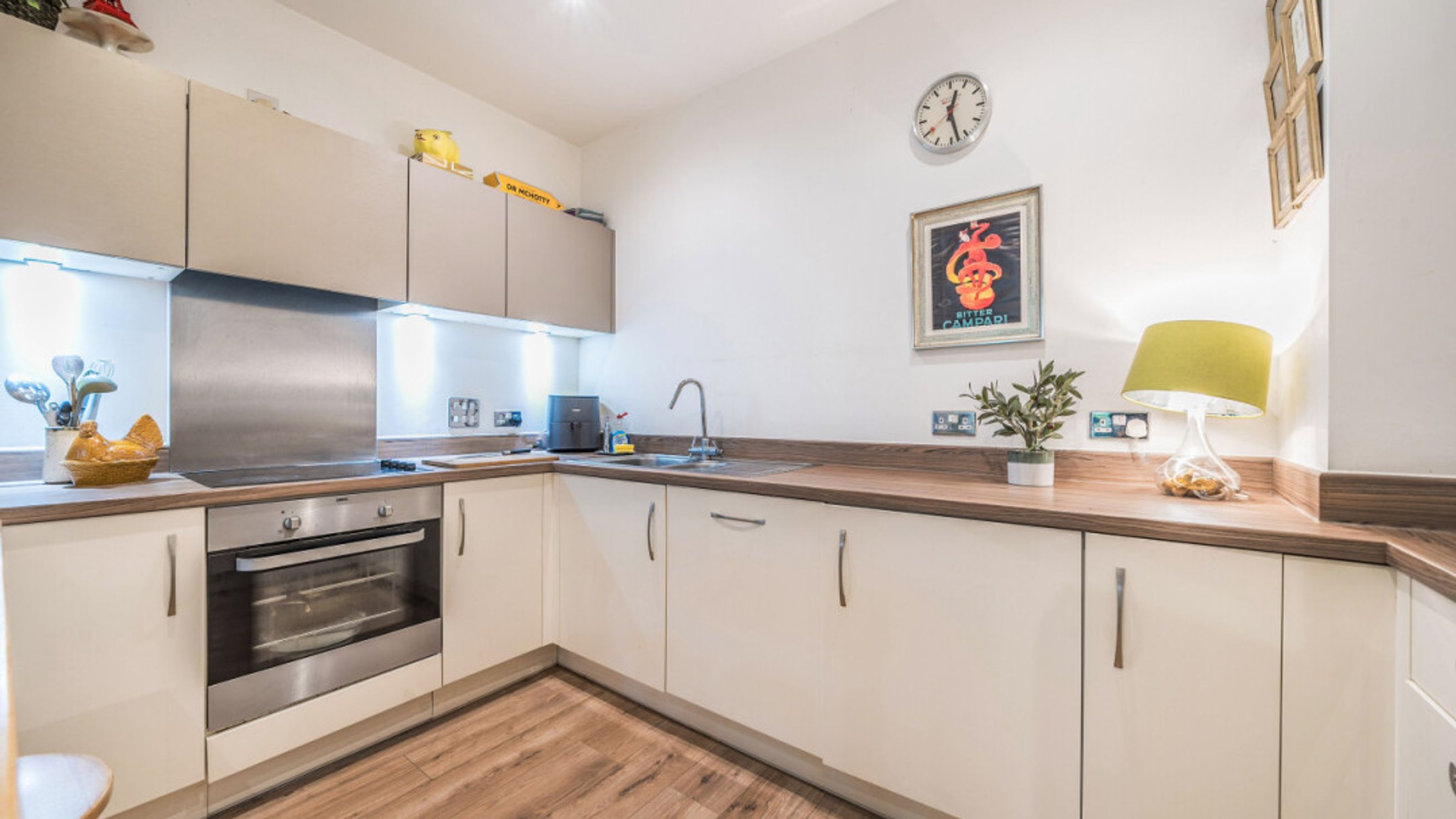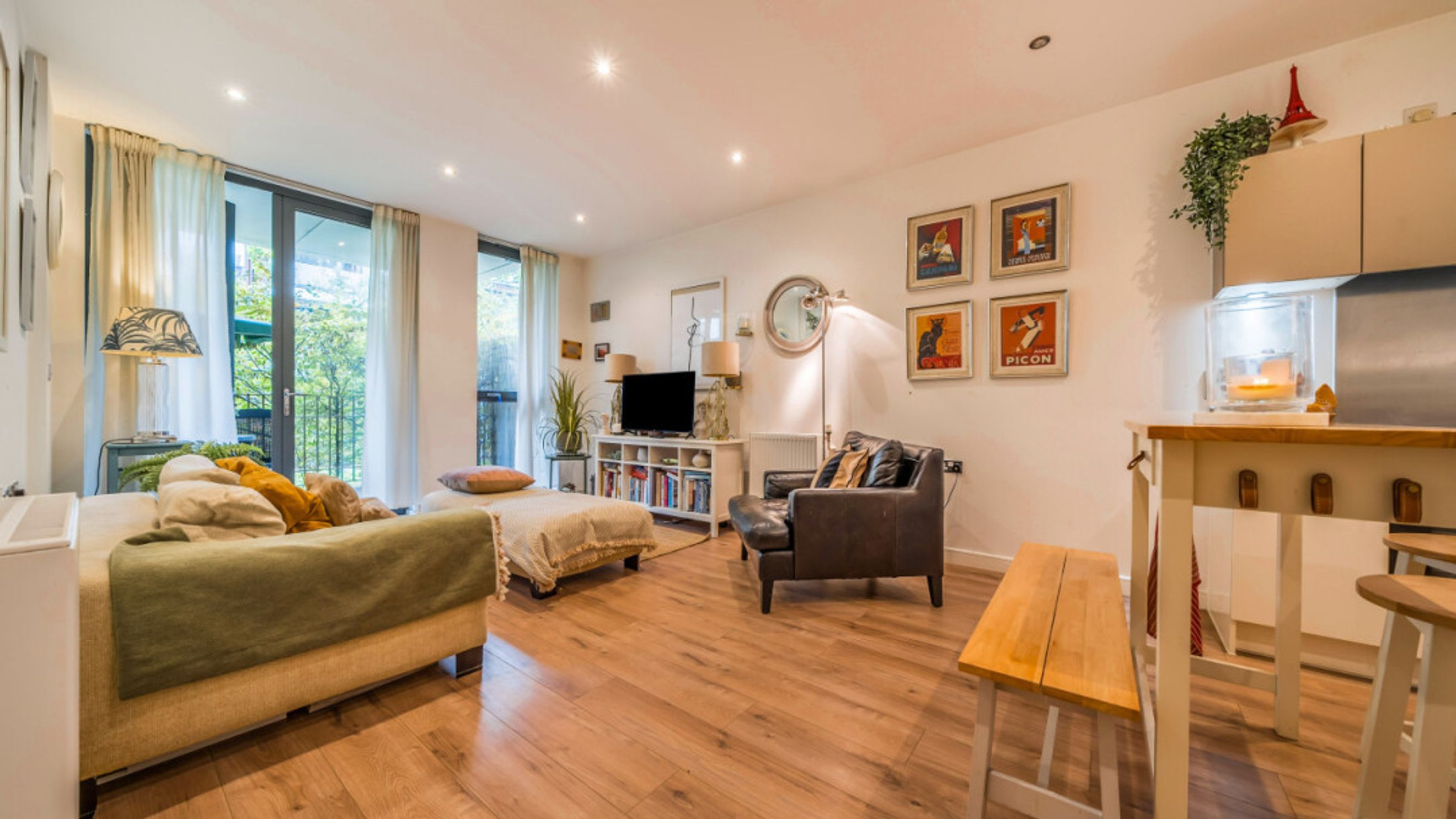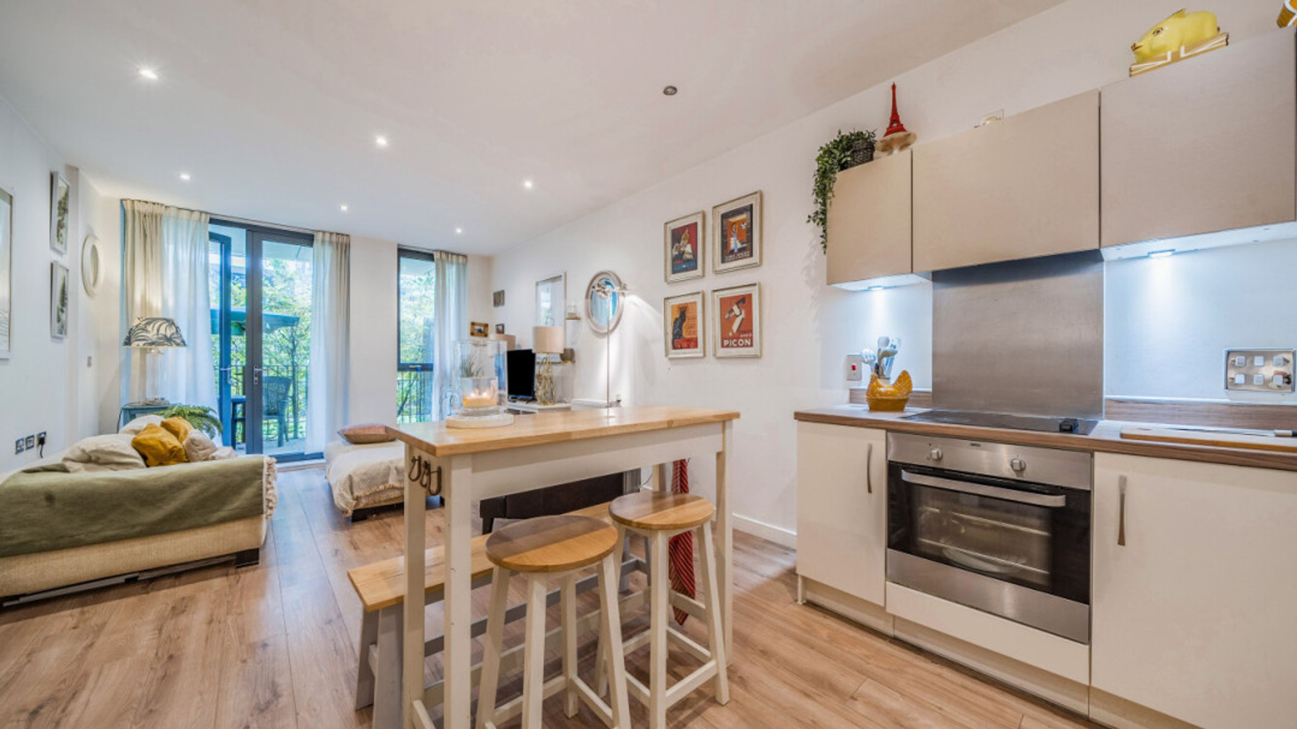 Enter this beautifully presented, stylish, apartment through a spacious hallway with large store. An open plan living area, gives access to a full width secluded patio overlooking the communal gardens, which is large enough to dine or relax. The modern kitchen incorporates fully integrated appliances. A spacious double bedroom, which benefits from built in mirrored wardrobes, also opens onto the patio. A contemporary bathroom completes the accommodation.
