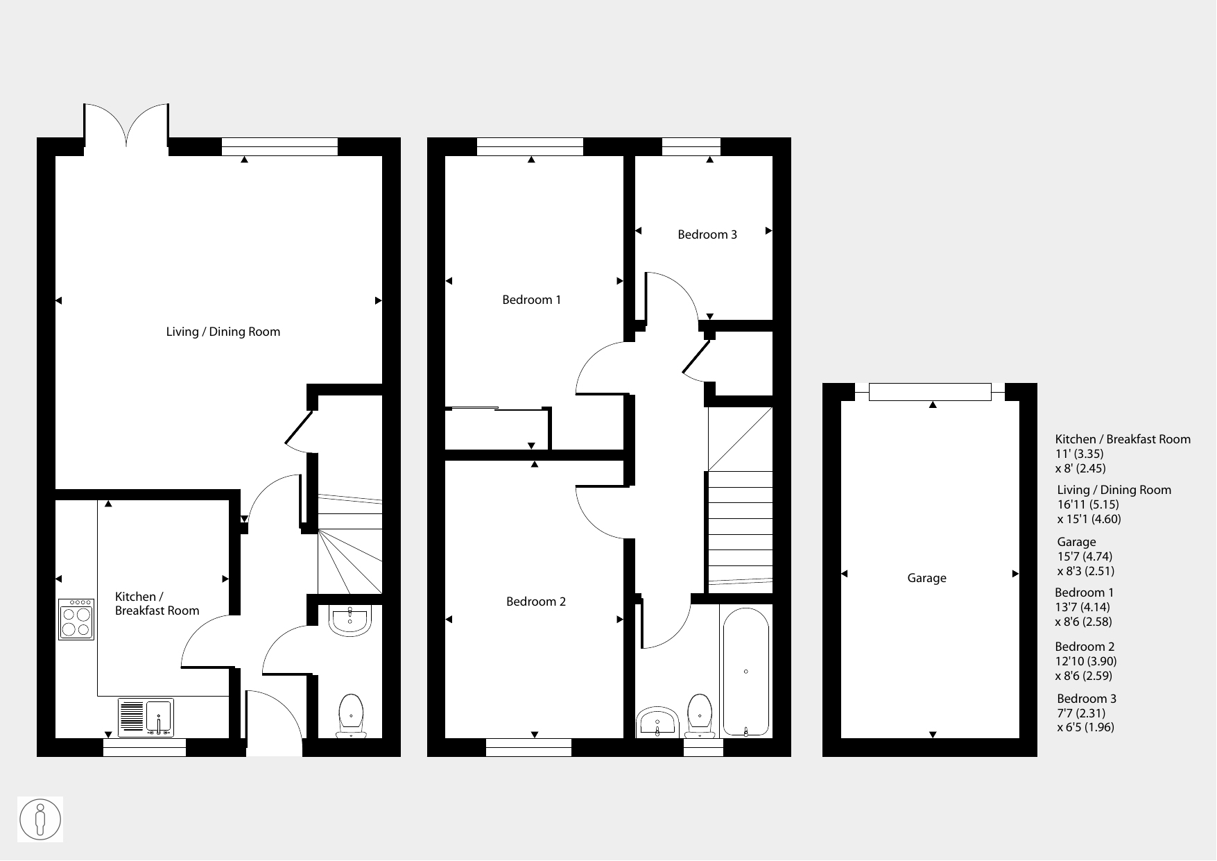 Upstairs, there are three comfortable bedrooms, with a wardrobe to the master. The bathroom has a white suite.