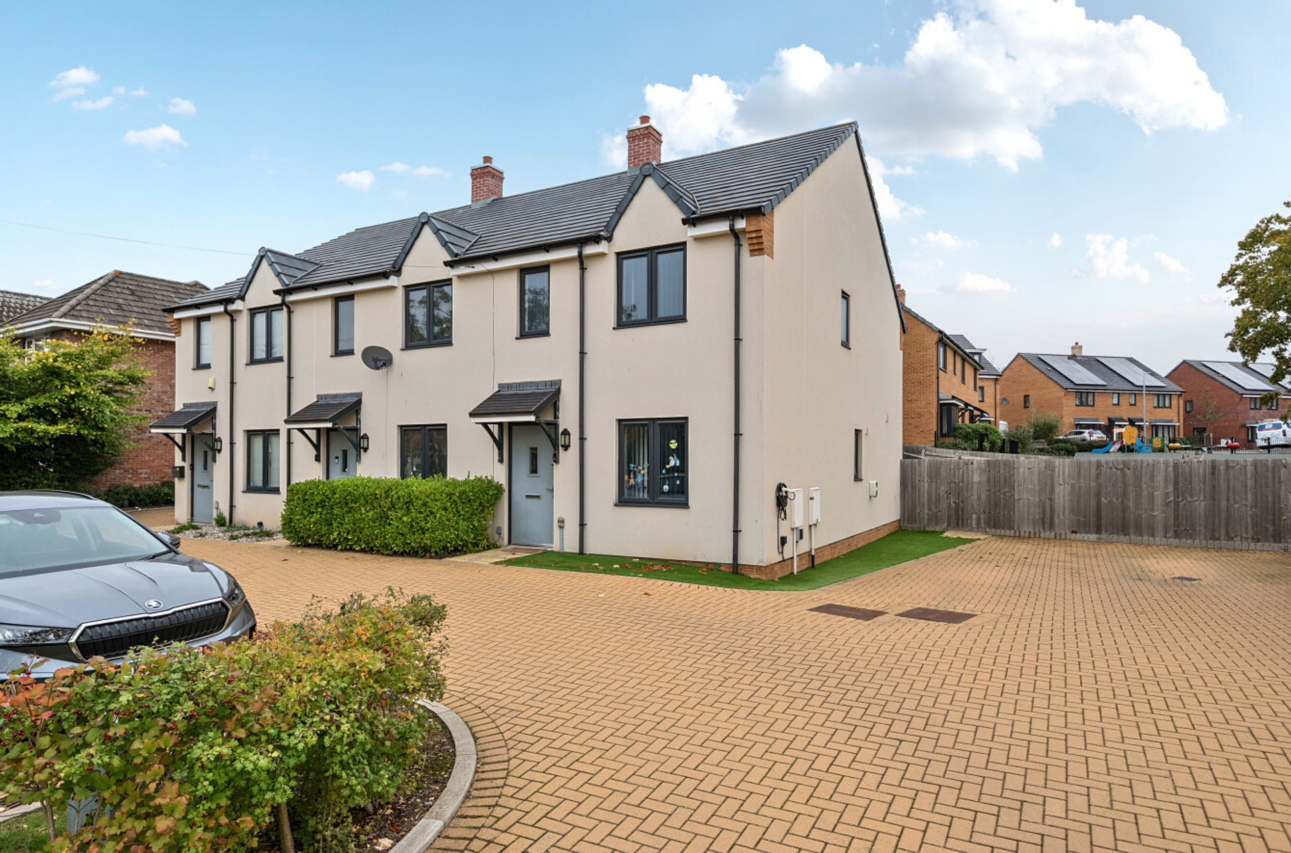 A recently-constructed house in the village of Stoke Gifford. The property forms one end of a short, three-house terrace and has a conventional layout with the reception at the front, a central cloakroom and an attractive kitchen/dining room which leads to the rear garden. On the first floor are two spacious bedrooms and a smart, modern, naturally-lit bathroom. Well insulated walls, roof and floor, high performance glazing and gas central heating all contribute towards a very good energy-efficiency rating. The house comes with a two-car driveway plus there are a couple of, shared, visitor spaces opposite. Ofsted list four primary schools and a secondary within a mile radius, all rated 'Good'. Bristol Parkway Railway Station is within comfortable walking distance or a brief bus/bike ride and the location offers convenient access to the M4 and M32 motorways, if driving.