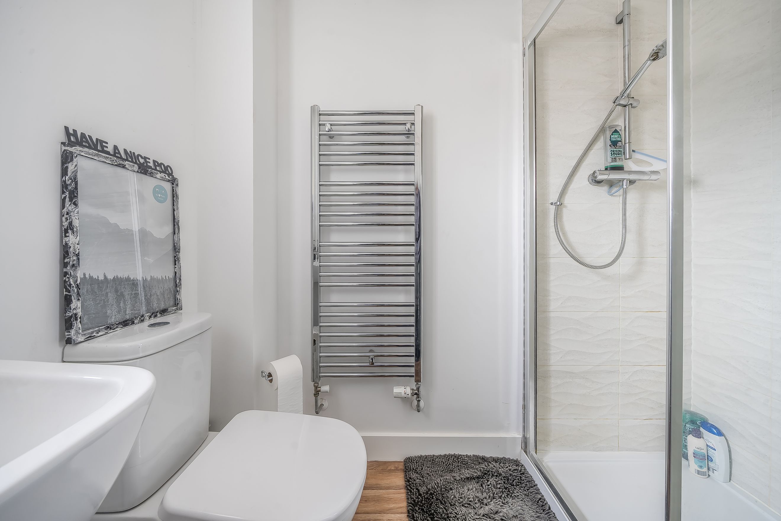 Upstairs, the first floor boasts three well-proportioned bedrooms, making this an ideal layout for families or those working from home. The main bedroom includes an en-suite shower room for added privacy, while bedrooms two and three offer flexibility for children's rooms, a guest room, or a home office. A modern family bathroom completes the upstairs accommodation, providing both a bath and shower for convenience. There are two parking spaces at the front of the property.