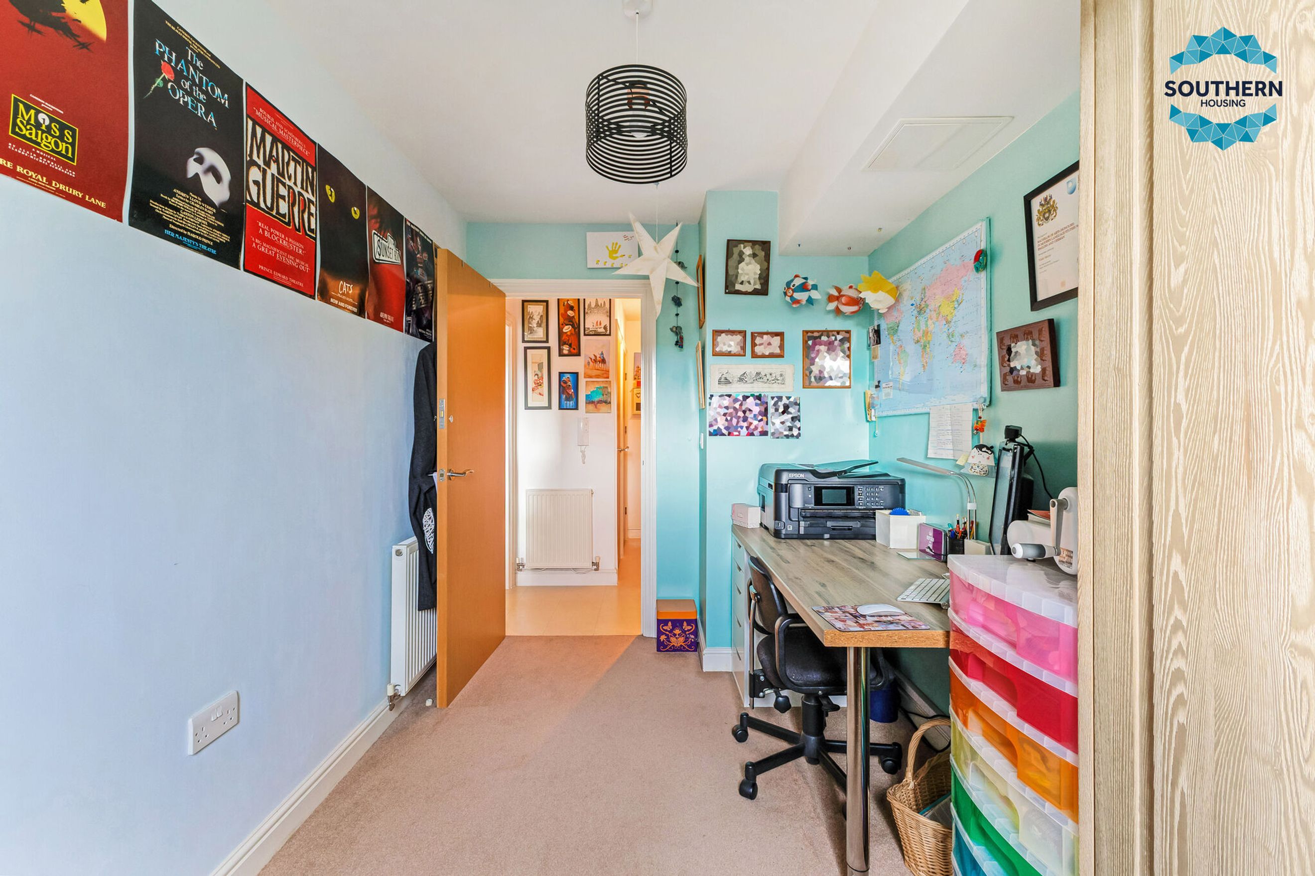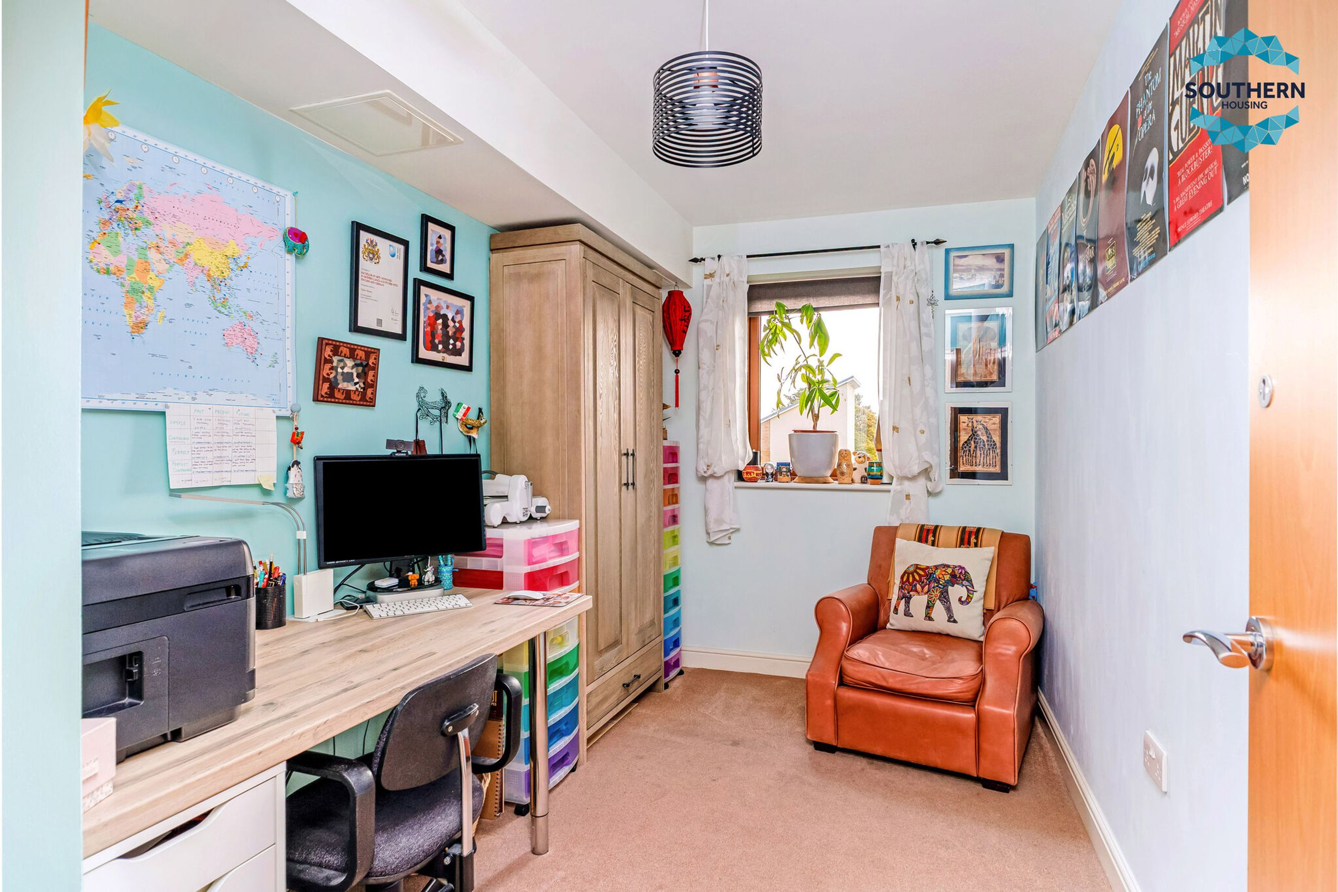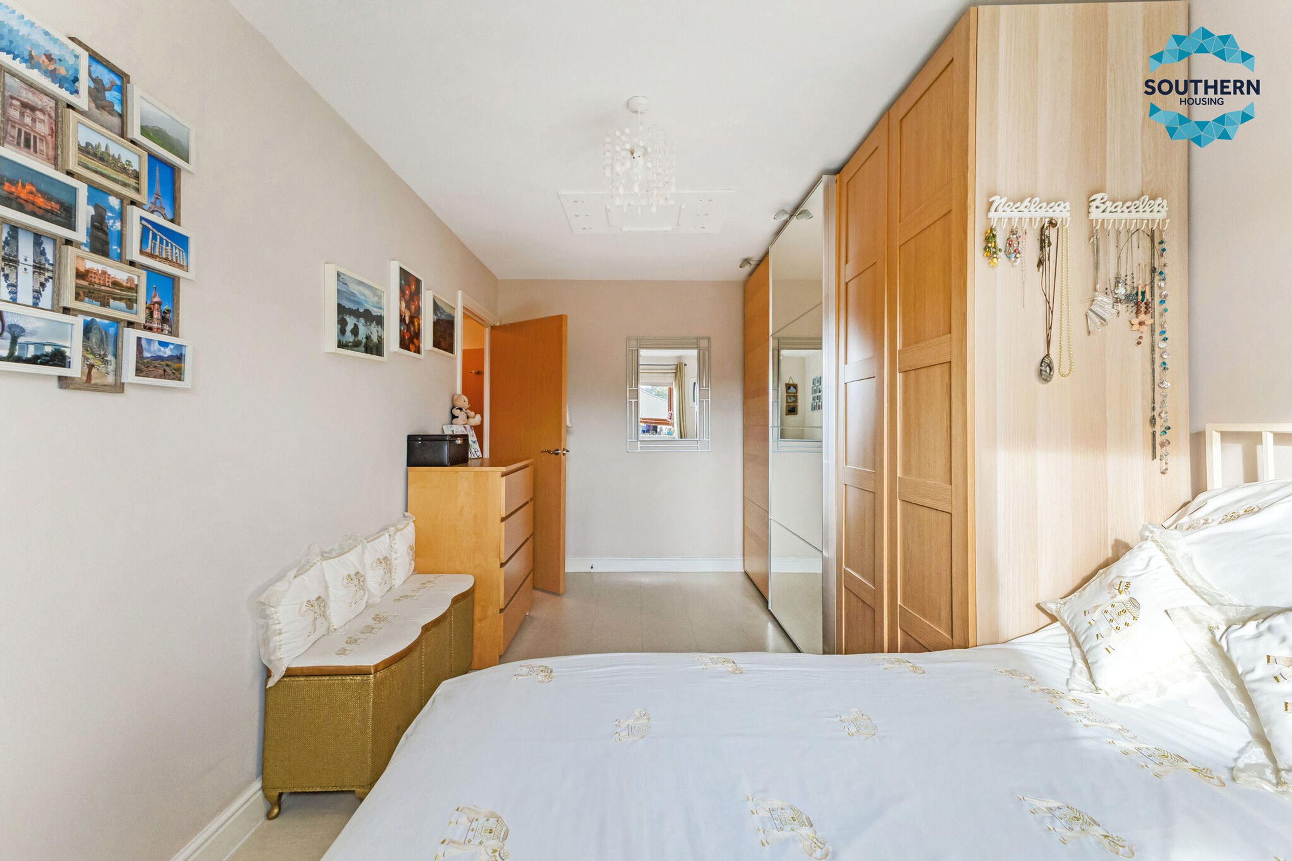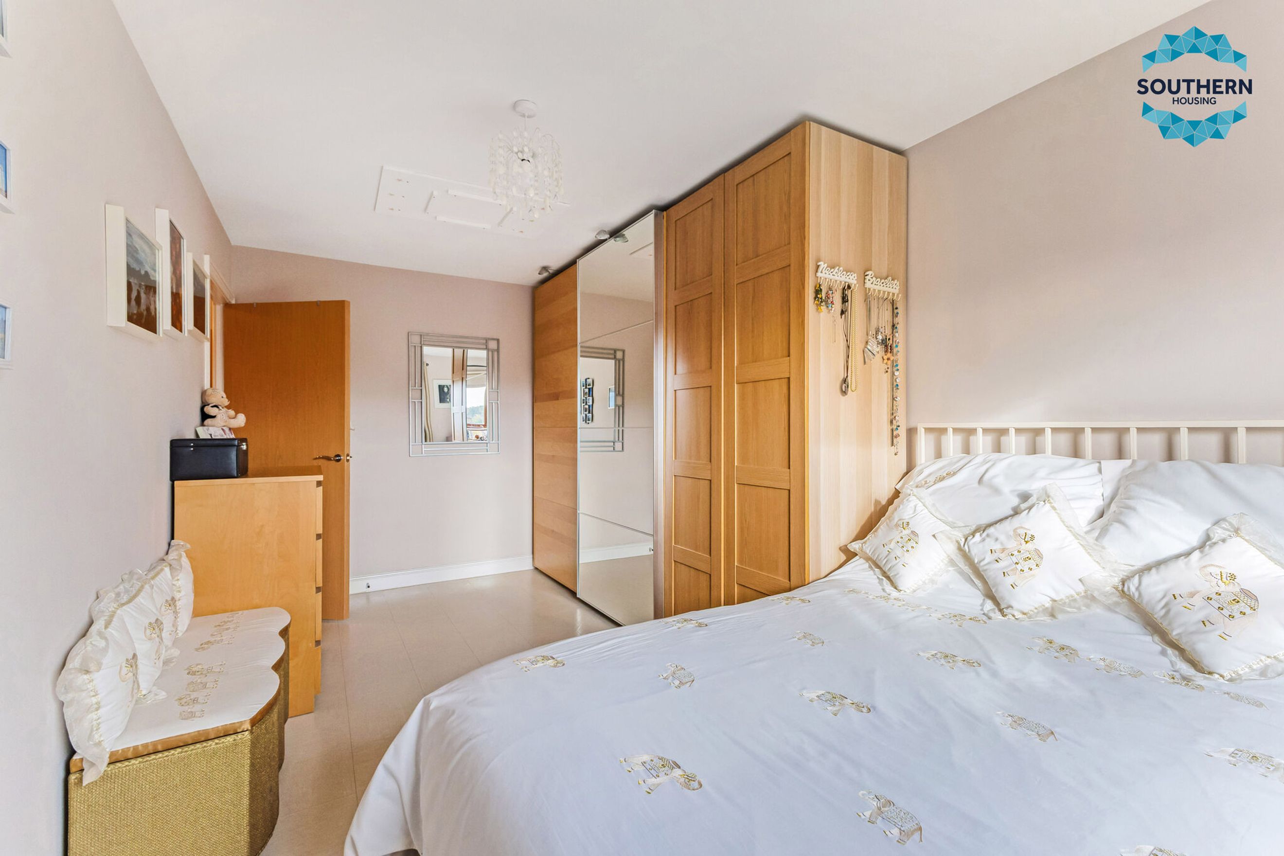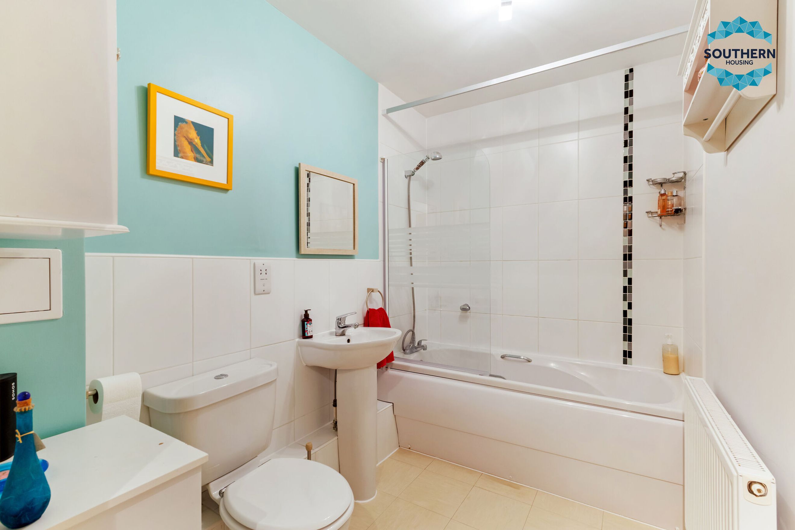 The first of the two bedrooms is a well-sized double, featuring a built-in cupboard and plenty of room for additional furniture. The family bathroom is spacious and includes a shower over the bath, offering comfort and convenience.