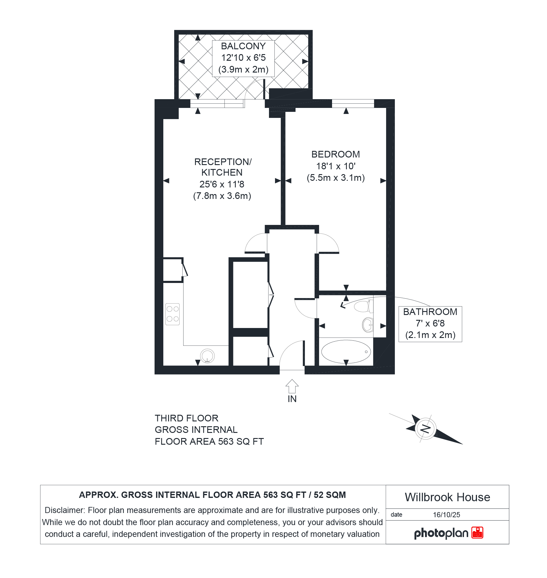 Third Floor: Kitchen/Lounge. Bedroom. Bathroom with WC.