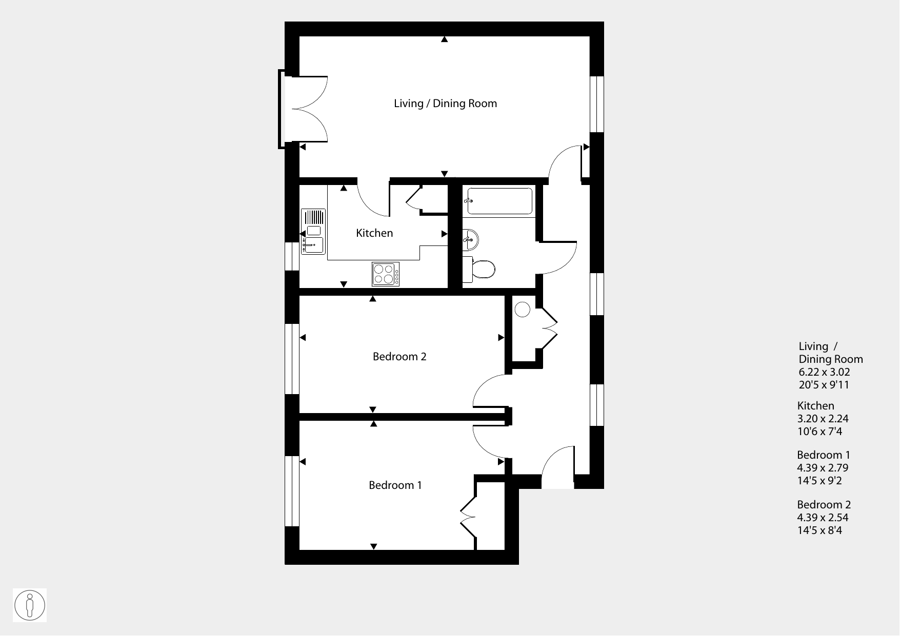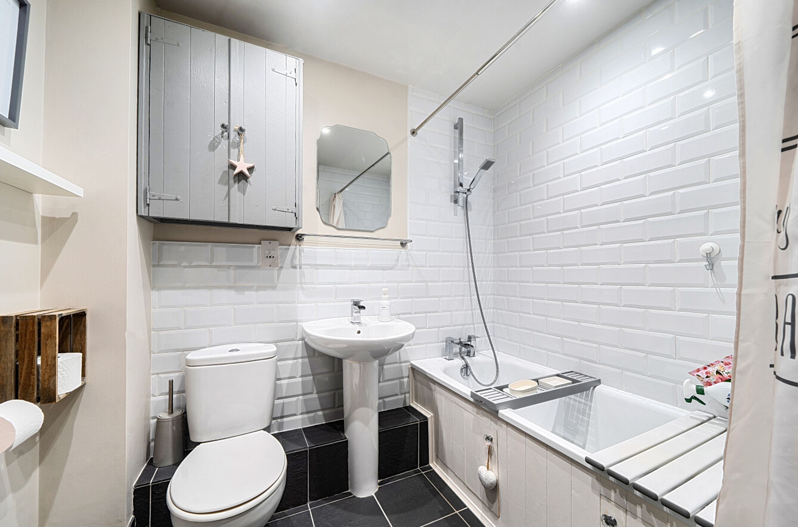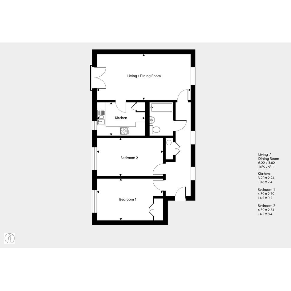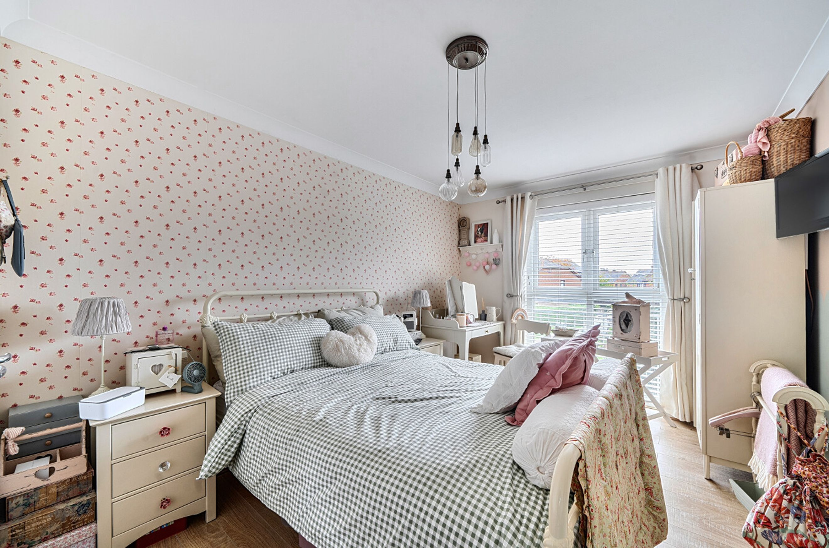 Featuring a spacious living area with a Juliette balcony. The kitchen has an integrated oven, hob and hood. There are two spacious bedrooms, with built-in storage to the master. The bathroom has a modern, white suite.