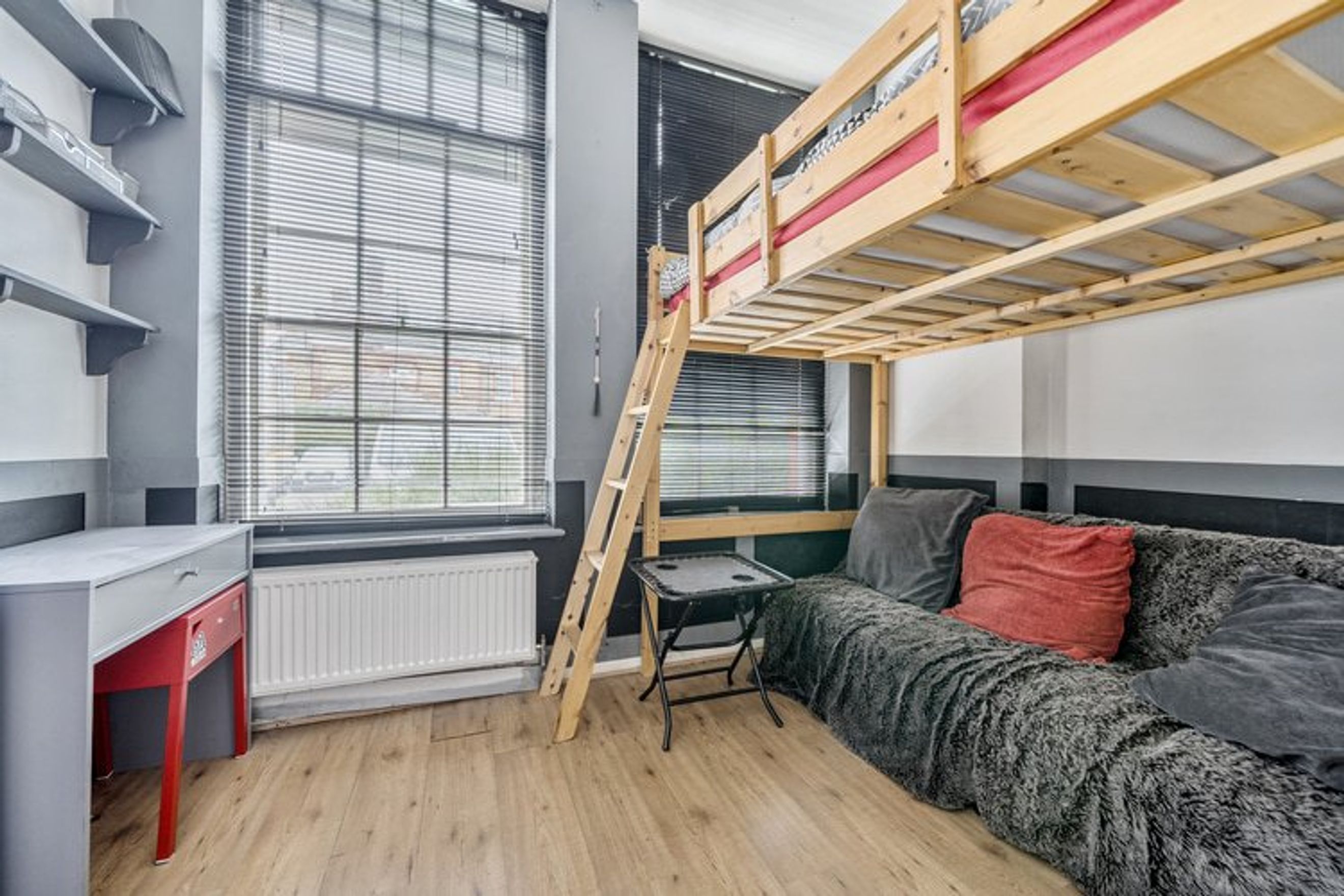 The property offers residents an allocated parking spot and access to a shared garden area.