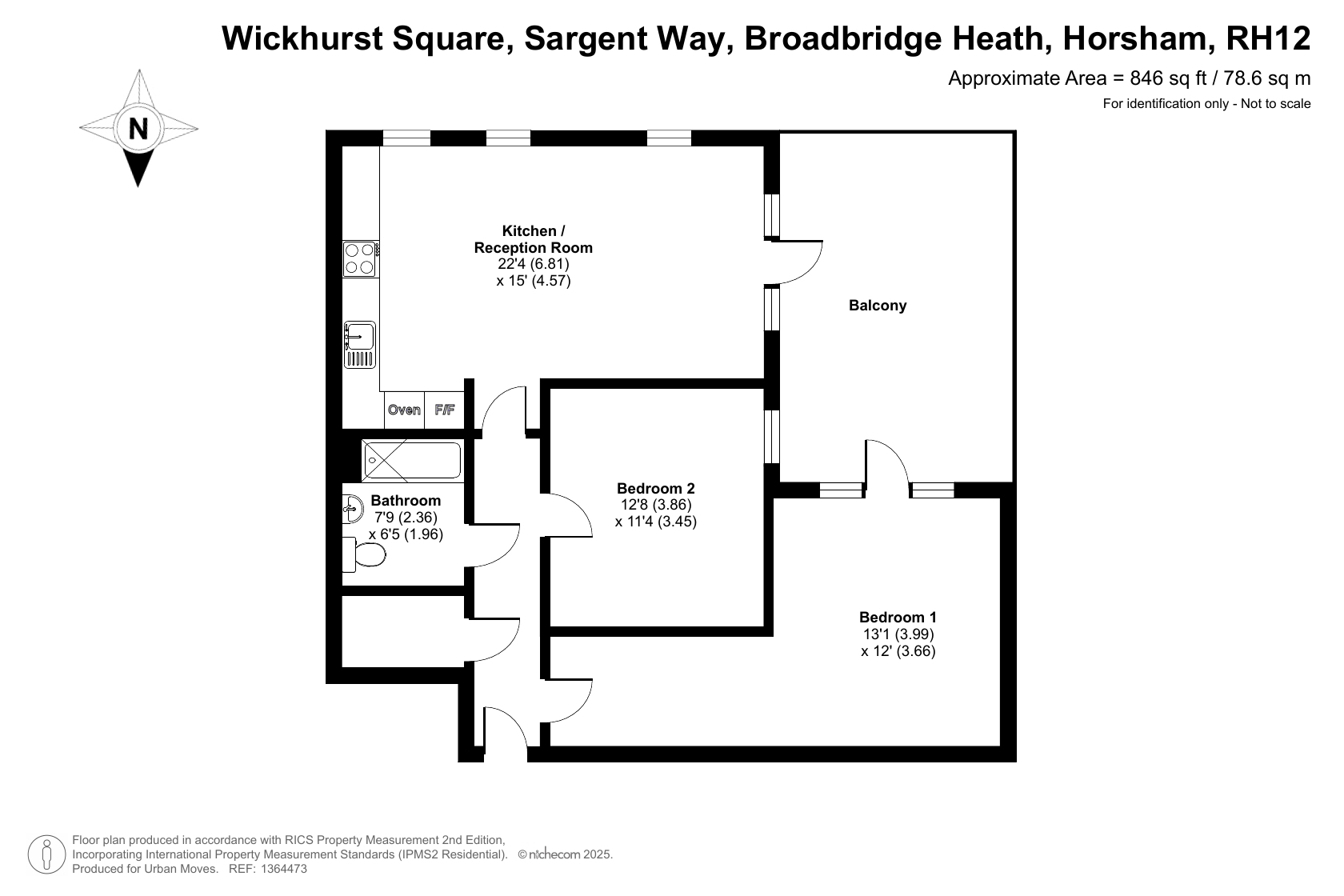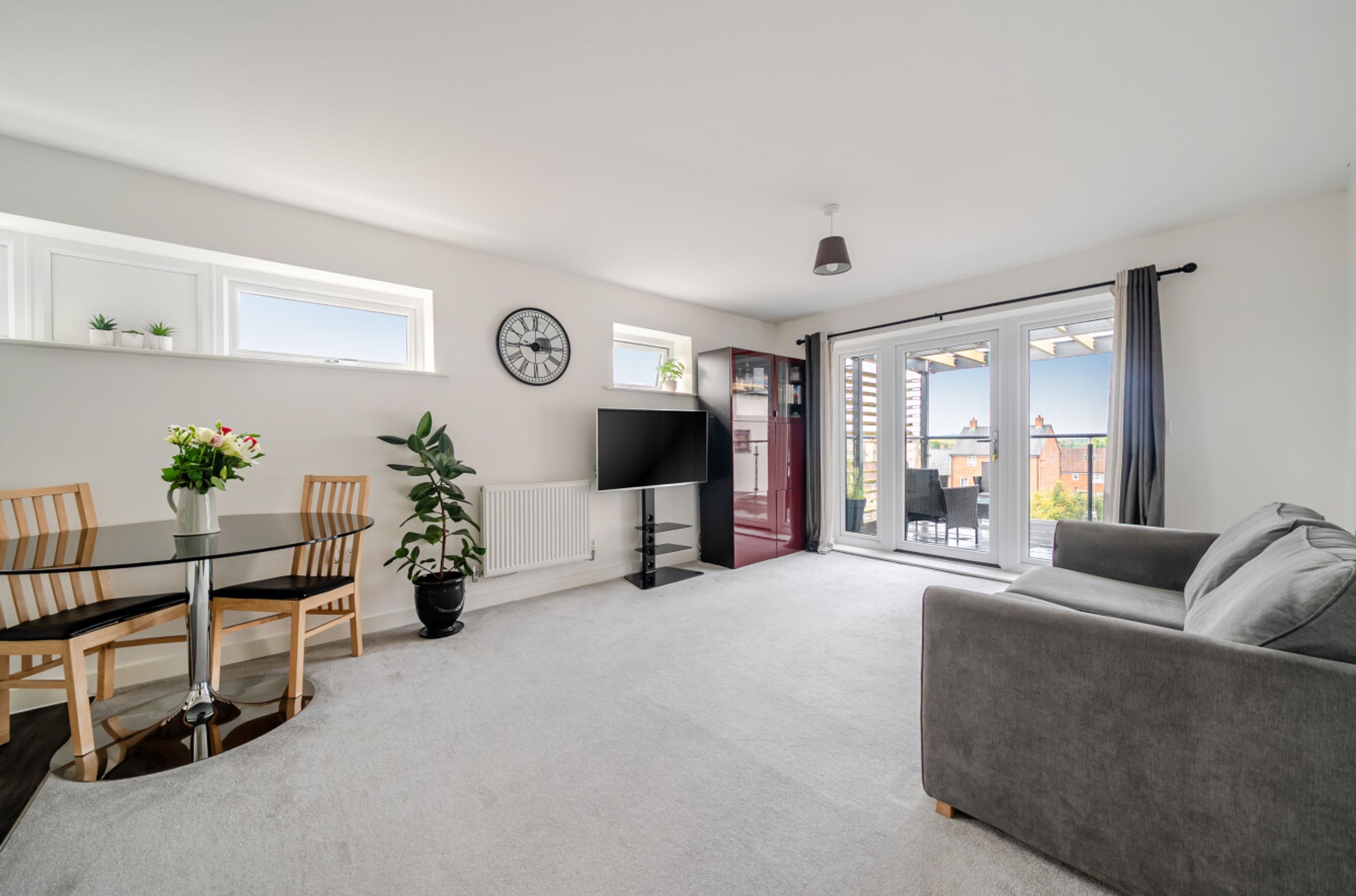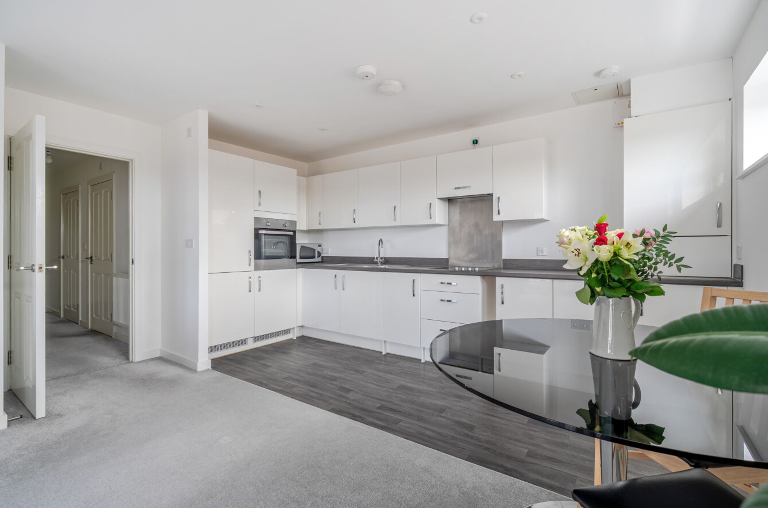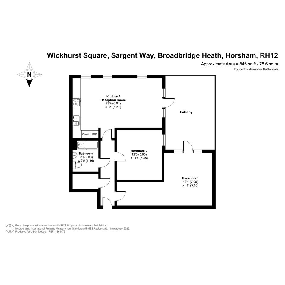 This generously-sized flat is on the top (second) floor of a recently-constructed development in the village of Broadbridge Heath. The property has a twenty-two-foot, dual-aspect reception room with open-plan kitchen area featuring sleek units and integrated appliances. There is a spacious main bedroom plus a second, comfortable, double bedroom and a simple, modern bathroom. A built-in storage/utility cupboard has been provided in the entrance hallway and well insulated walls and roof, high performance glazing and gas central heating all contribute towards a very good energy-efficiency rating. The large south and west facing corner balcony is accessible from either the reception or main bedroom. There is a Co-Op store in the ground-floor retail unit, a large Tesco nearby and Horsham town centre is only two miles to the east. The flat comes with use of an allocated parking space. Nearby Tanbridge House School is Ofsted-rated 'Outstanding'.