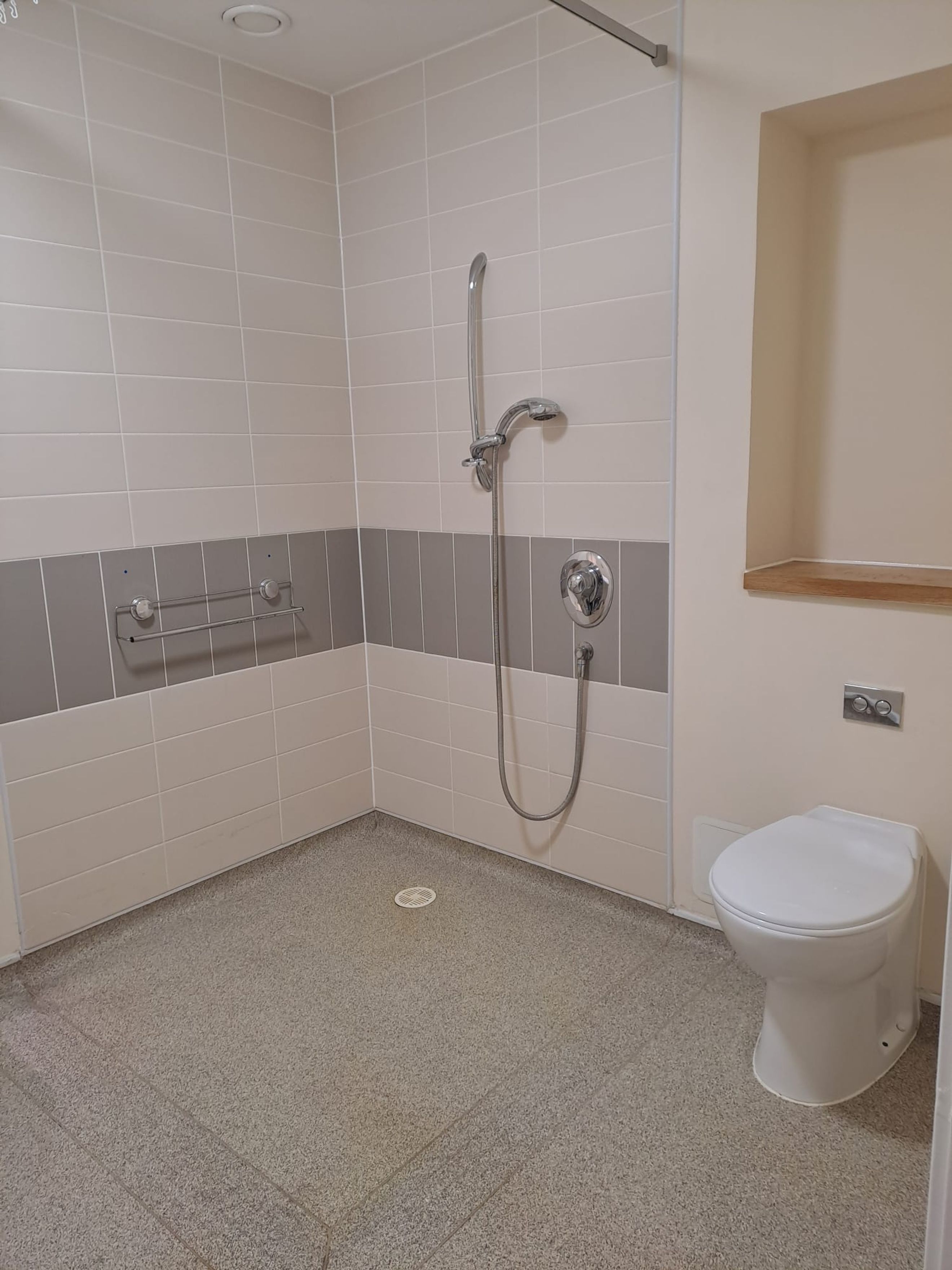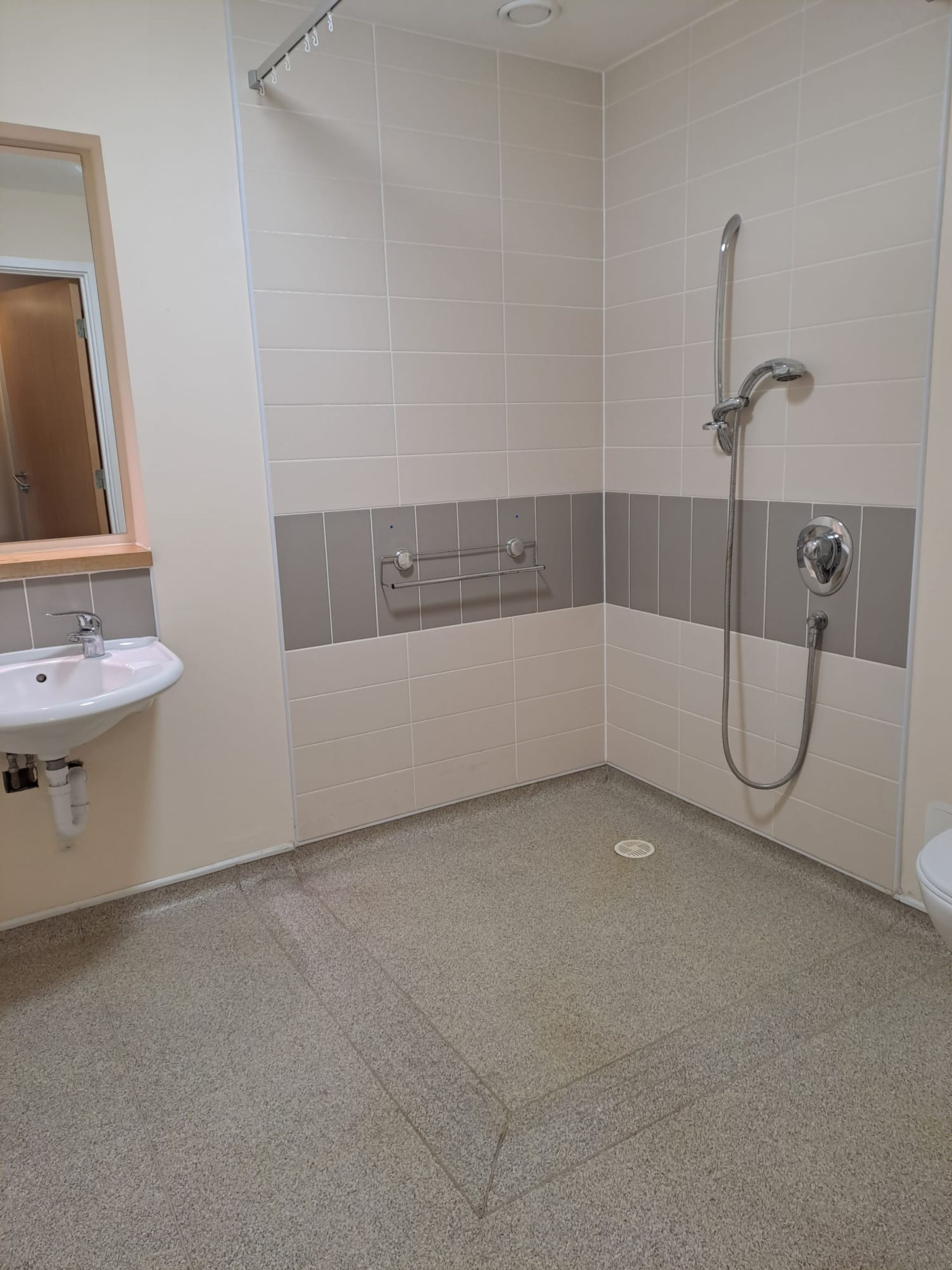 Fitted with a three piece suite comprising a wash hand basin, an electric shower walk in shower, low level W/C, and a radiator.