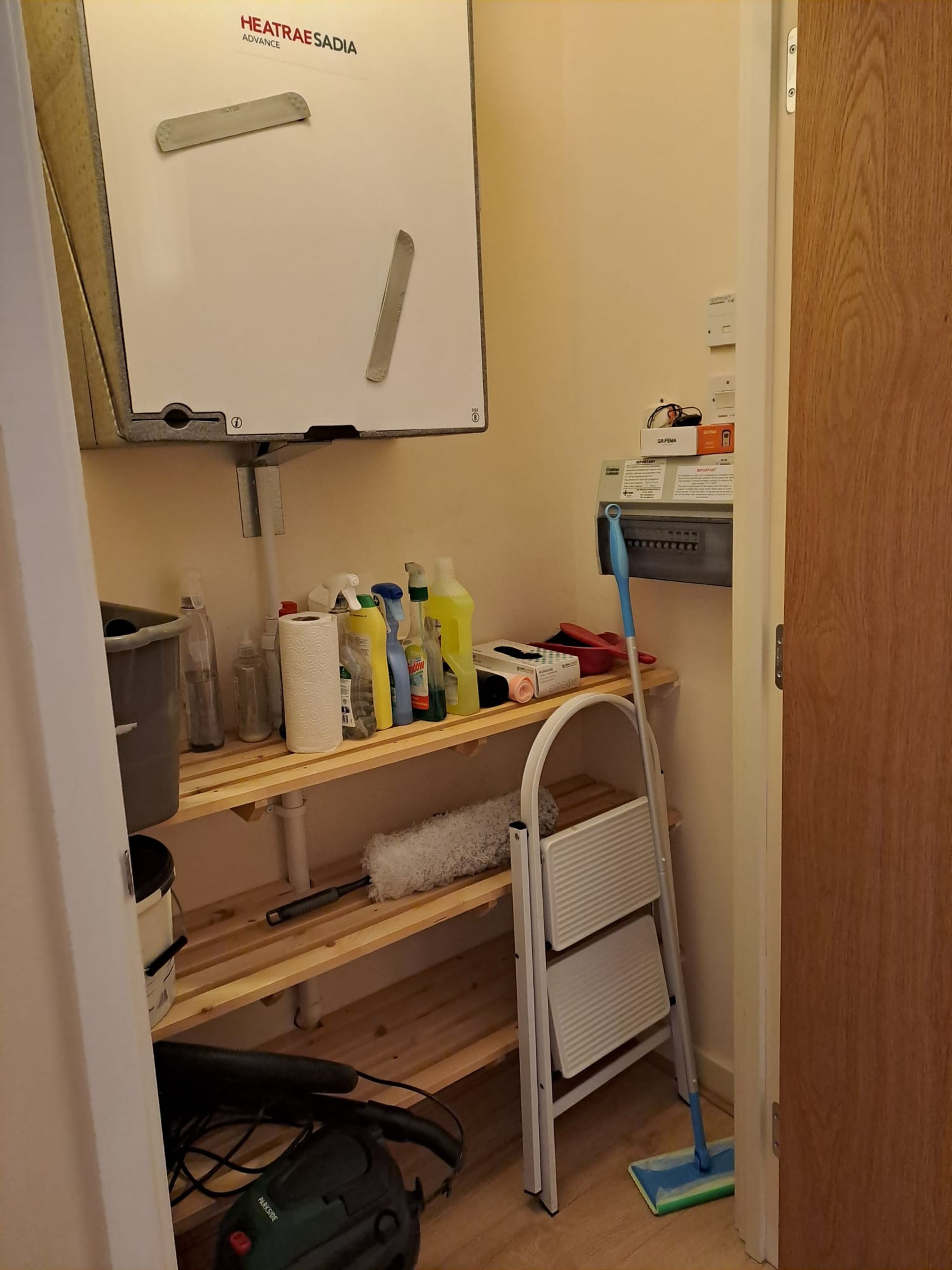 Welcoming entrance hallway, having a built-in cupboard housing the central heating boiler and doors to all rooms.