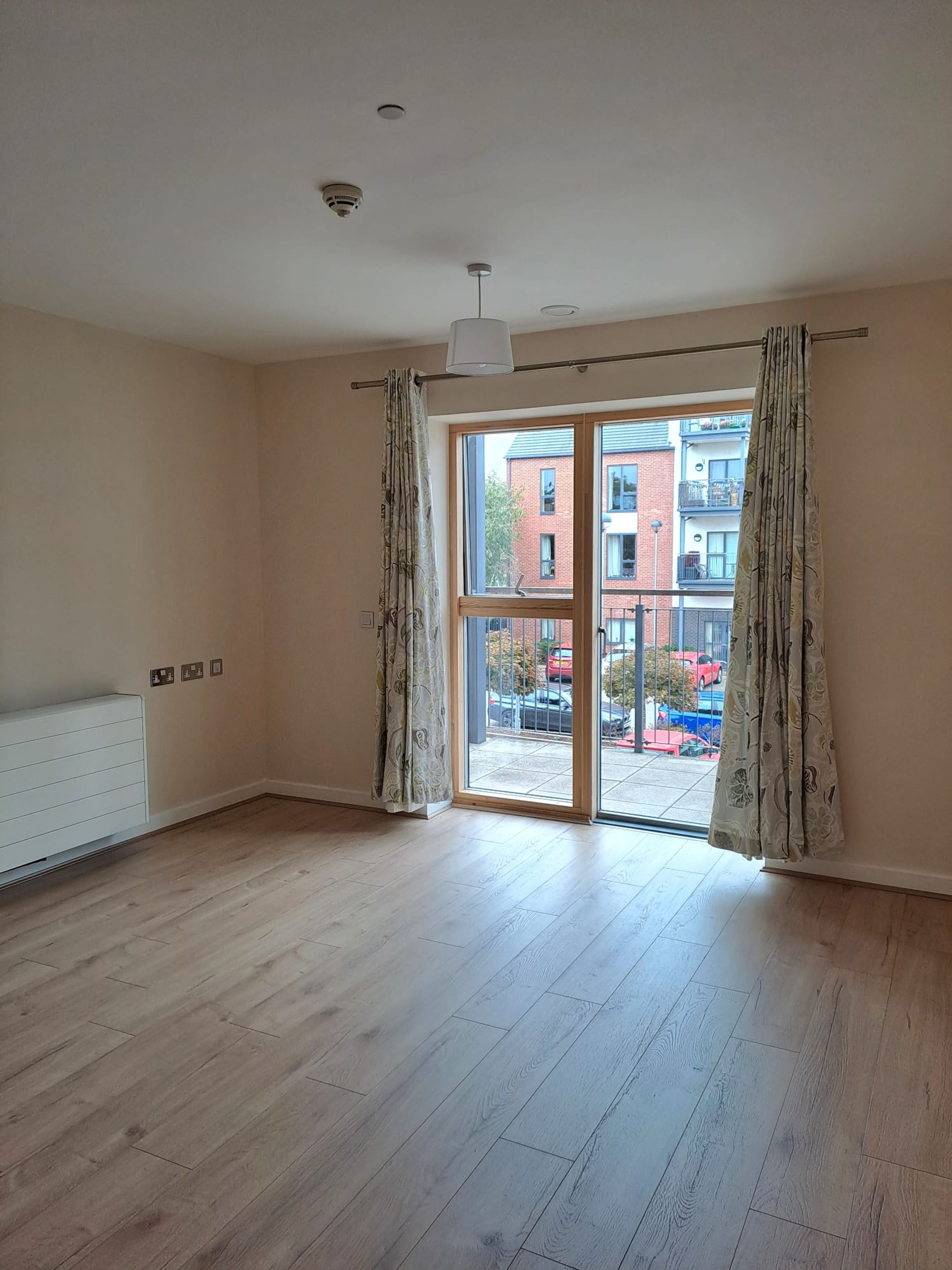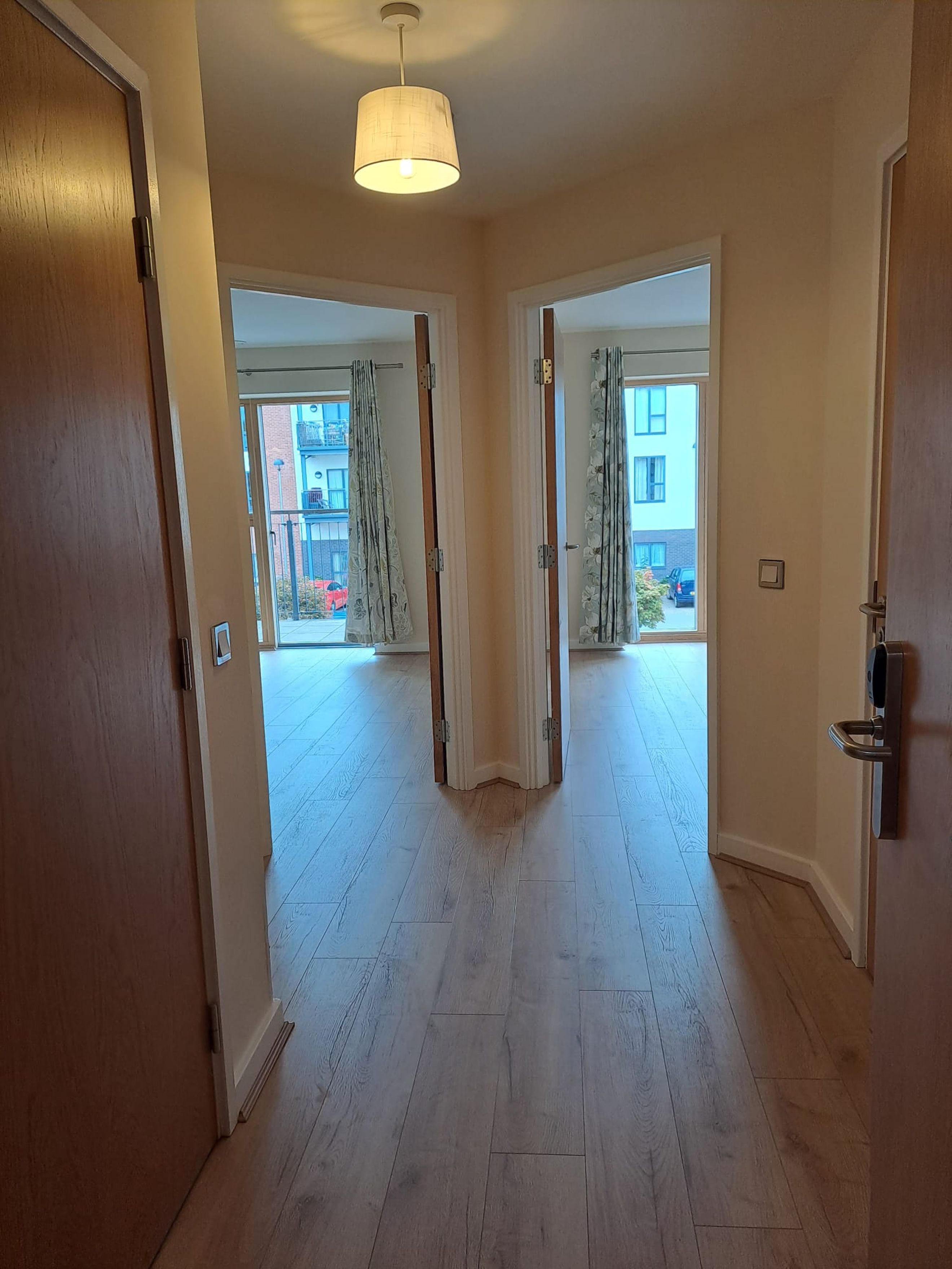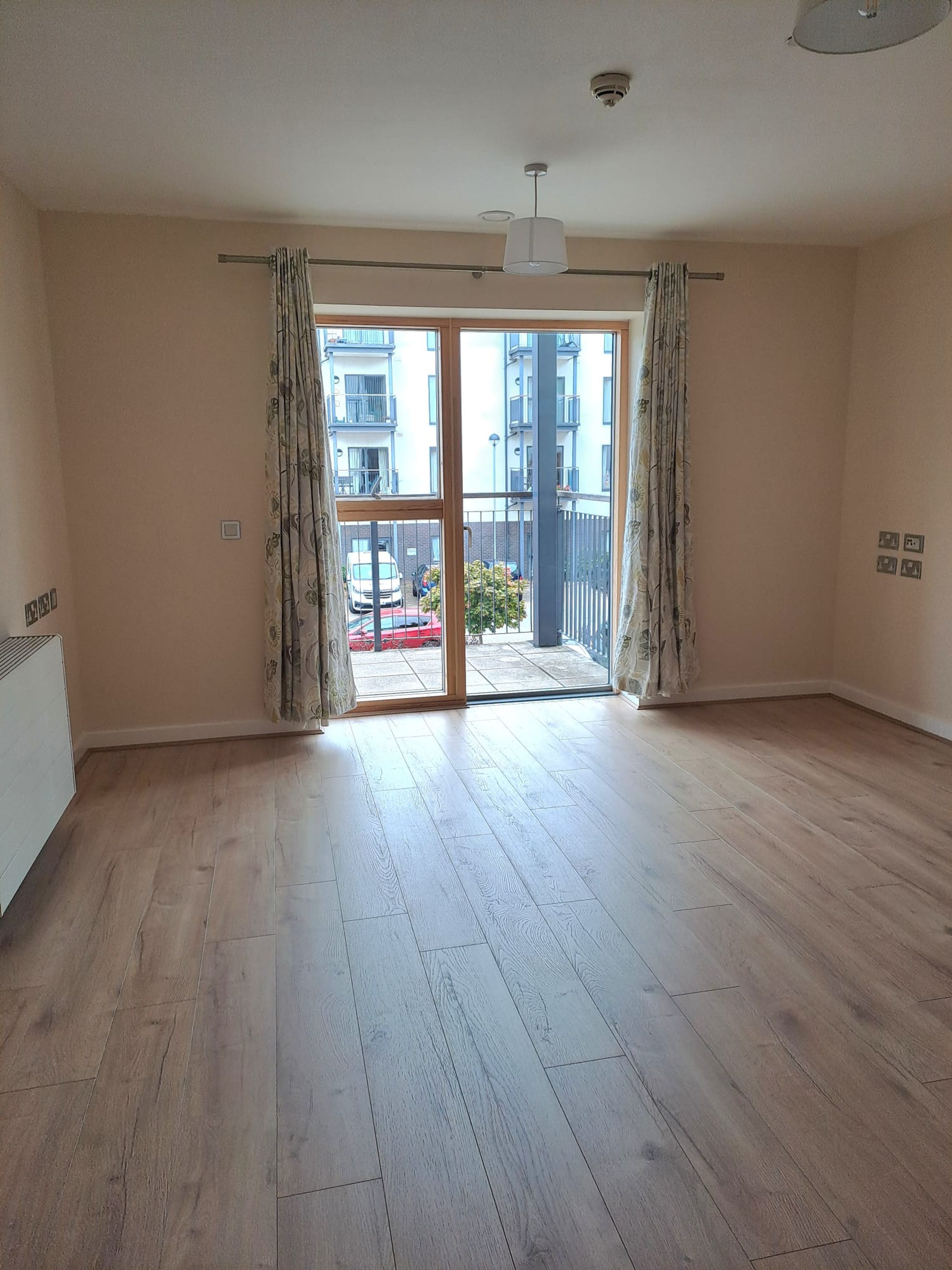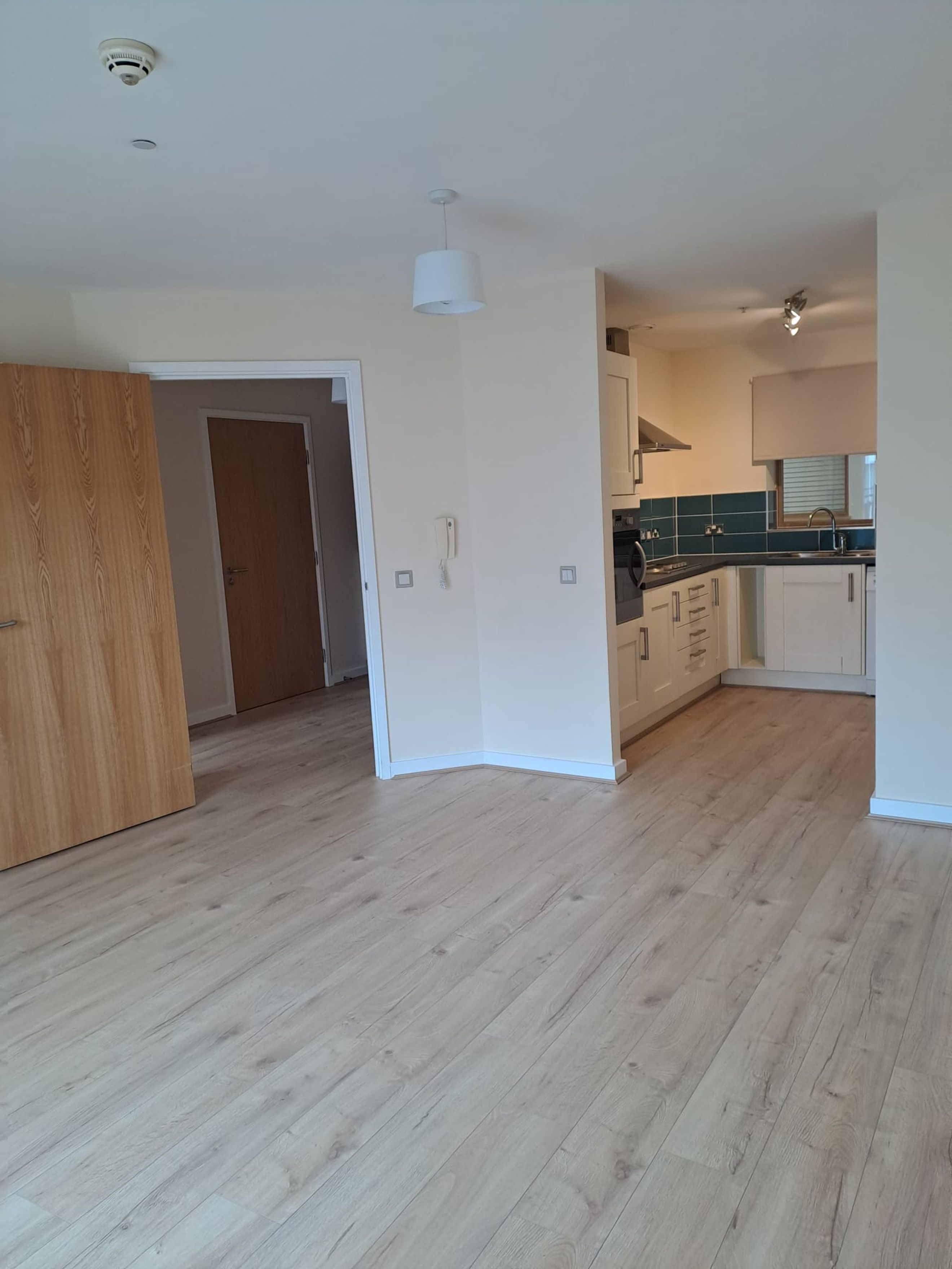 Spacious, light and airy lounge area. Comprising a telephone entry system, an electric radiator, wood effect laminate flooring, doors leading to the balcony and an archway to the kitchen area.