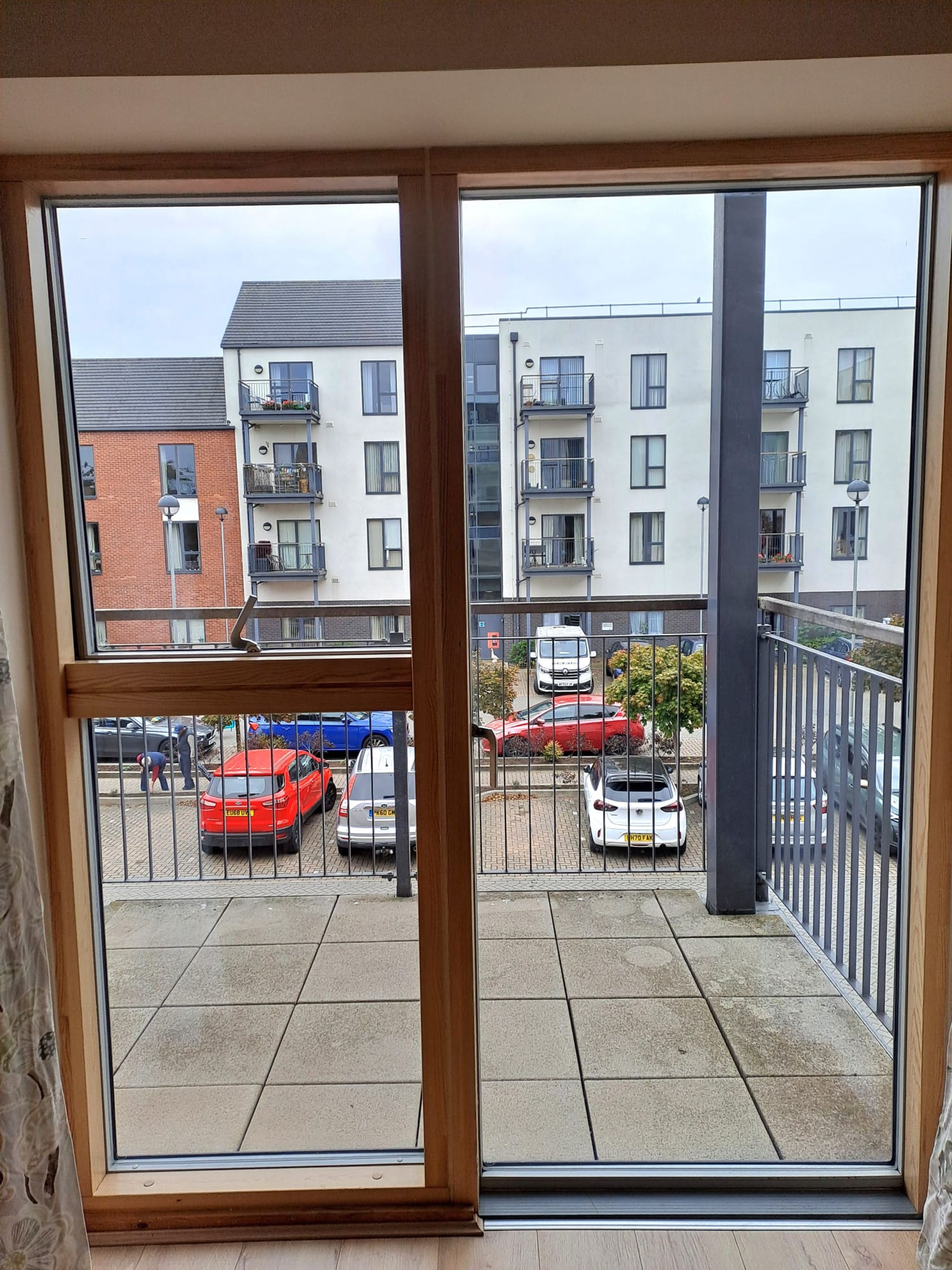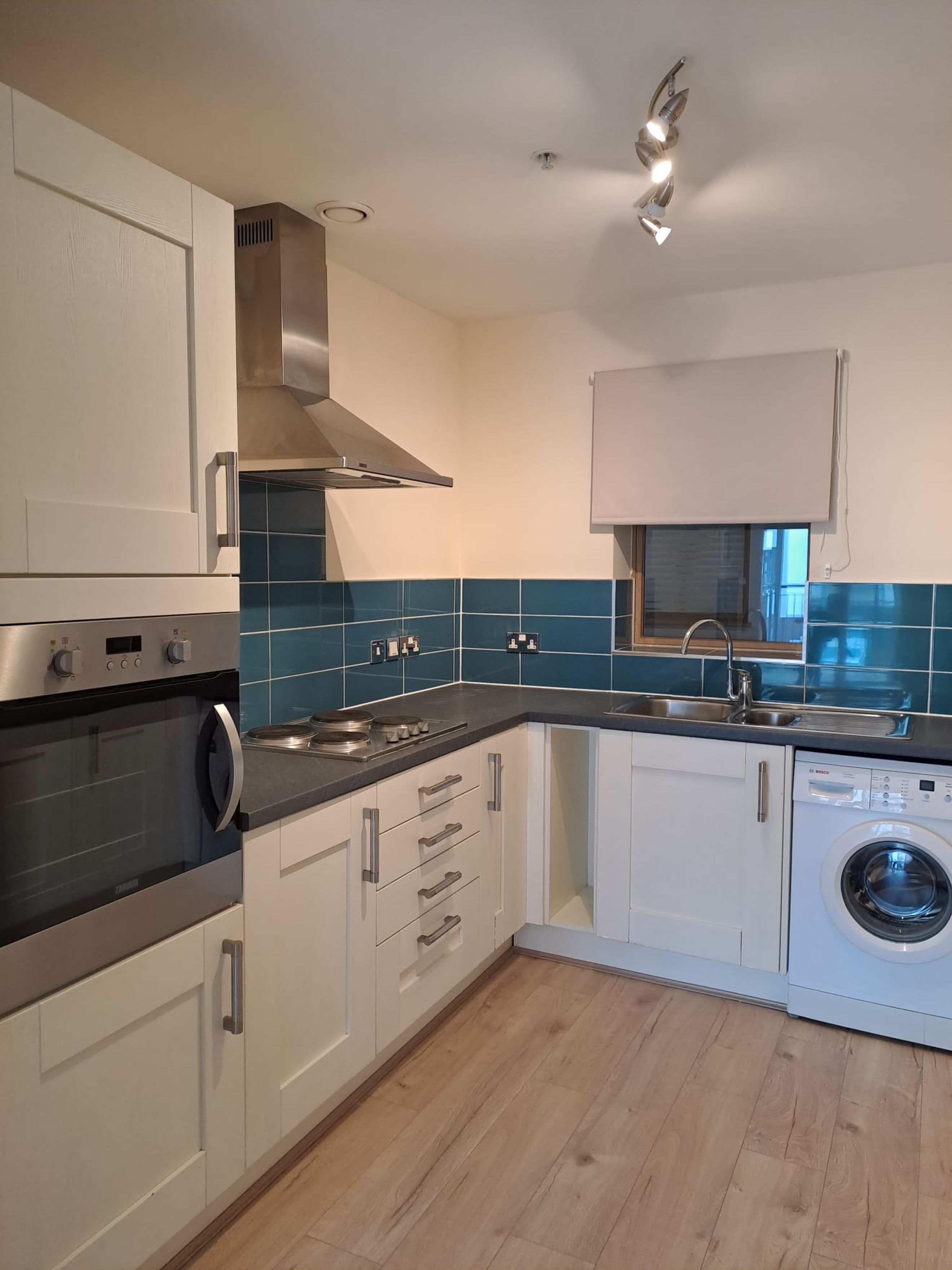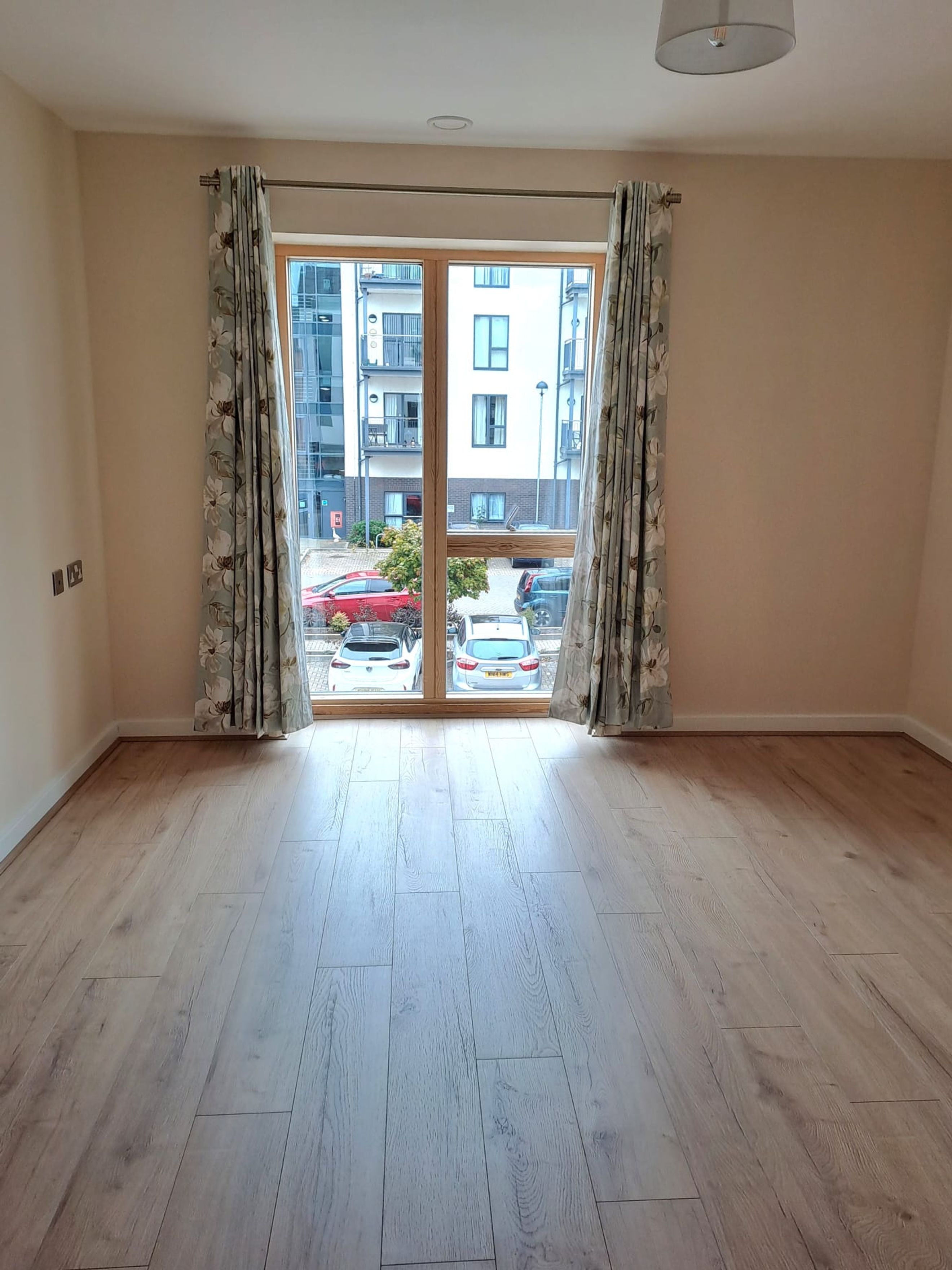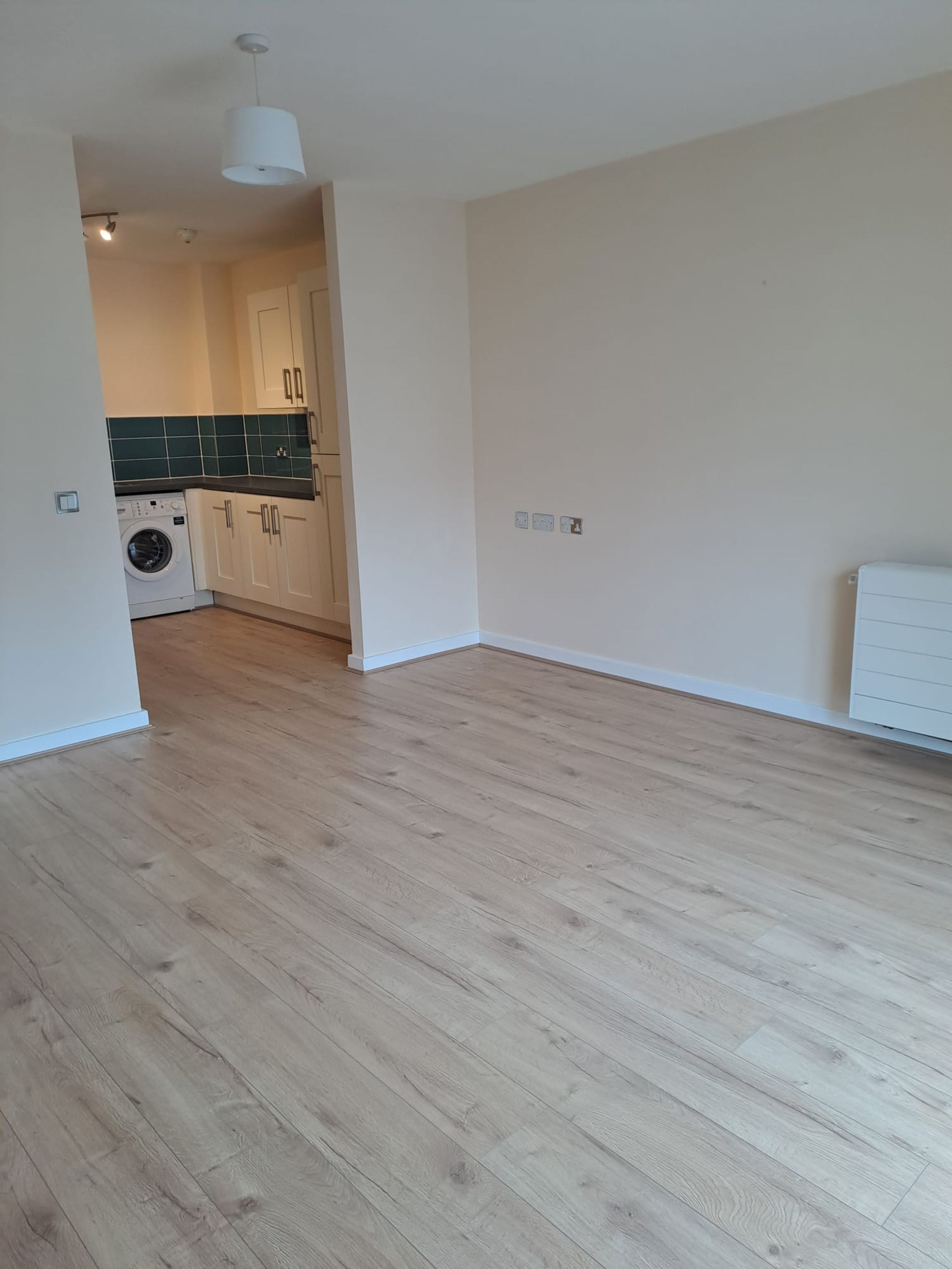 Spacious, light and airy lounge area. Comprising a telephone entry system, an electric radiator, wood effect laminate flooring, doors leading to the balcony and an archway to the kitchen area.