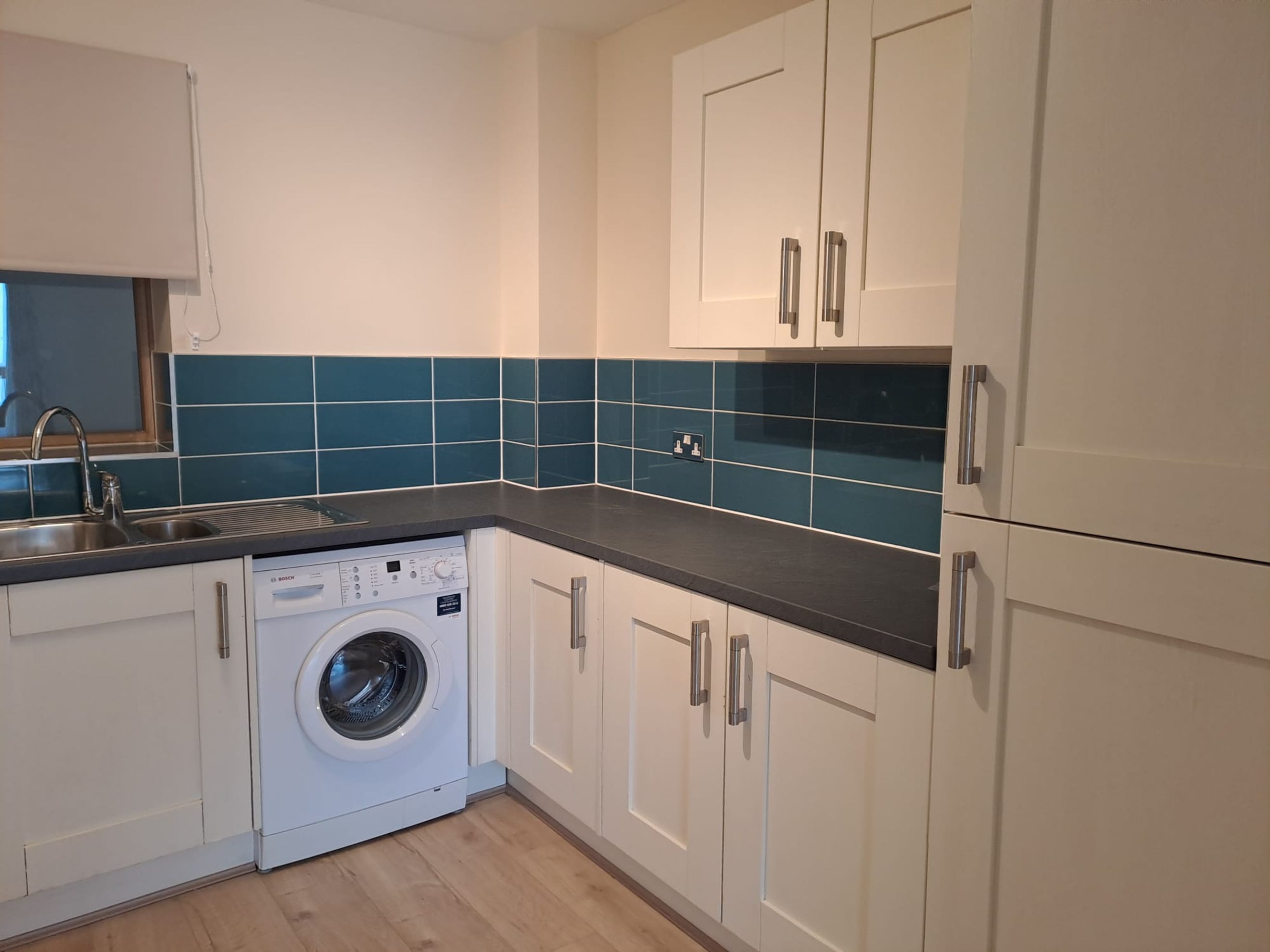 Fitted with wall and base units with complimentary work surfaces and tiling to the splash back areas, incorporating a sink and drainer unit. There is an electric oven, electric hob with cooker hood over and an integrated fridge/freezer.