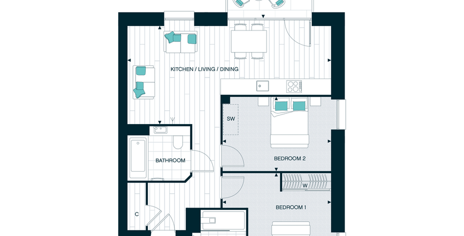 Reserve this spacious two bedroom apartment, positioned on the 11th floor with a spacious and private balcony with views towards the podium gardens. Featuring Weston Homes' fully inclusive specification, enjoy an open plan living area, a stylish kitchen with fully integrated appliances and a high-tech bathroom and en-suite.