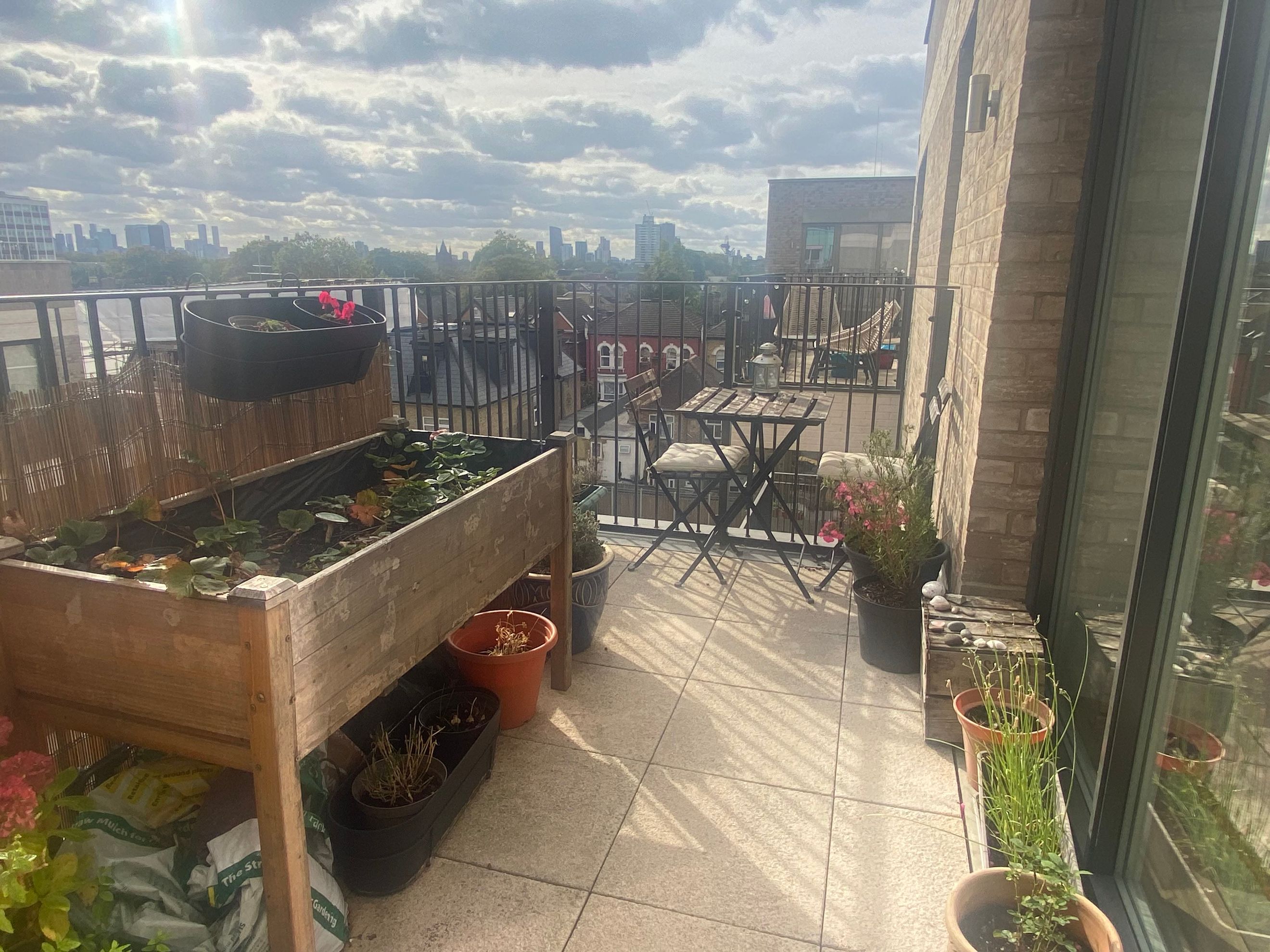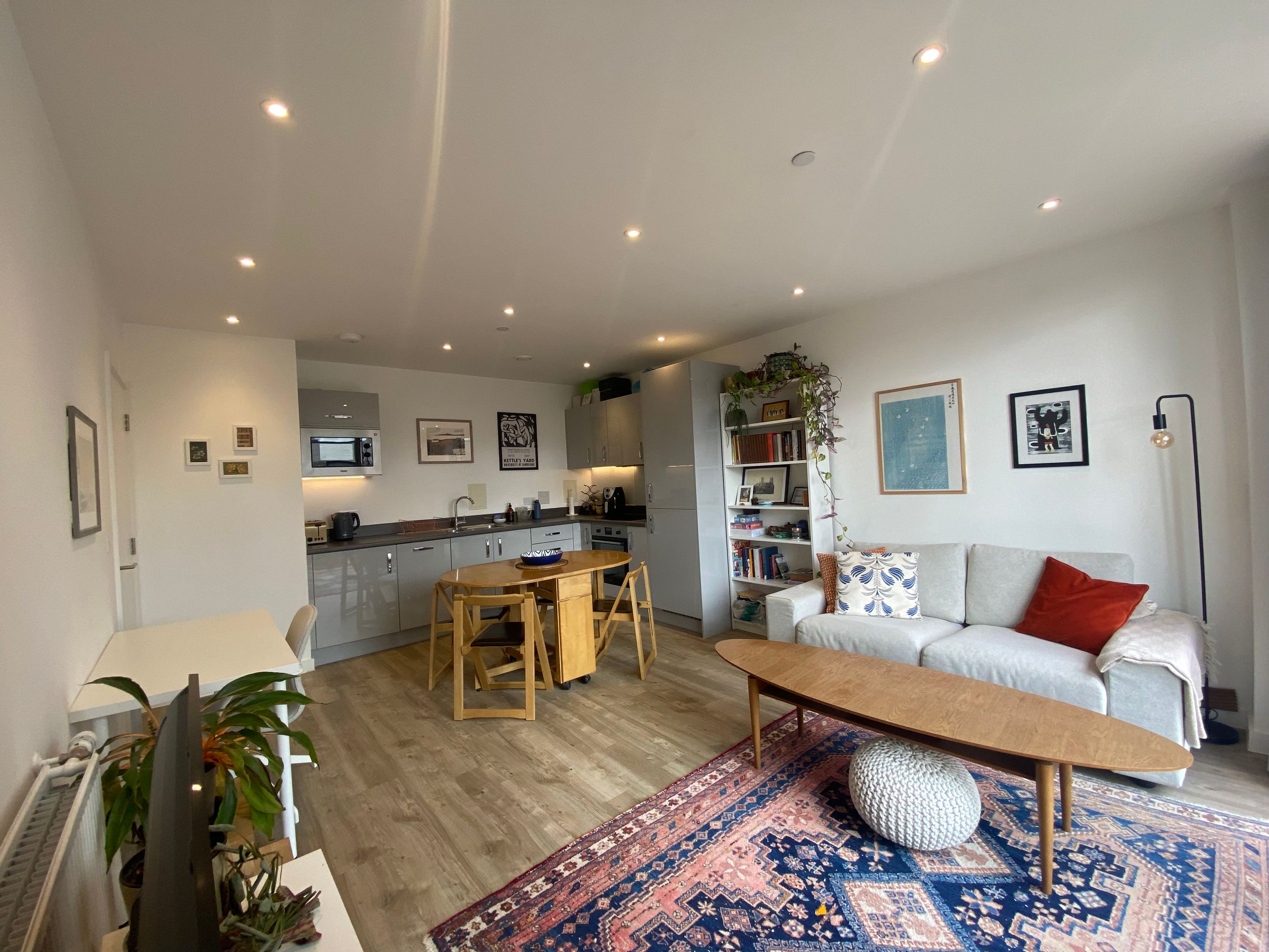A beautiful fourth floor one-bedroom flat with a open plan living-room, kitchen, and balcony