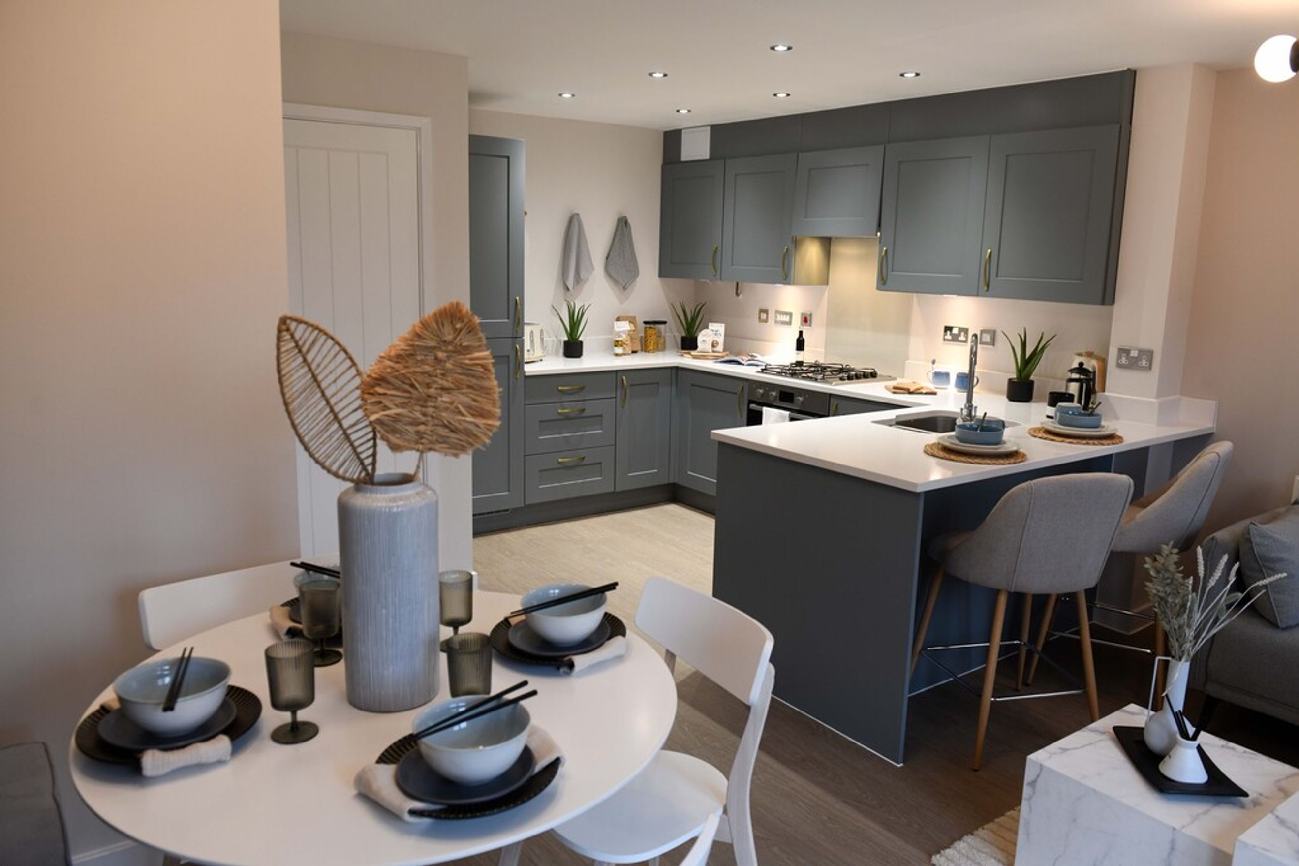 Downstairs, this home's family-focused features are clear to see. From the hallway, the kitchen/diner is a