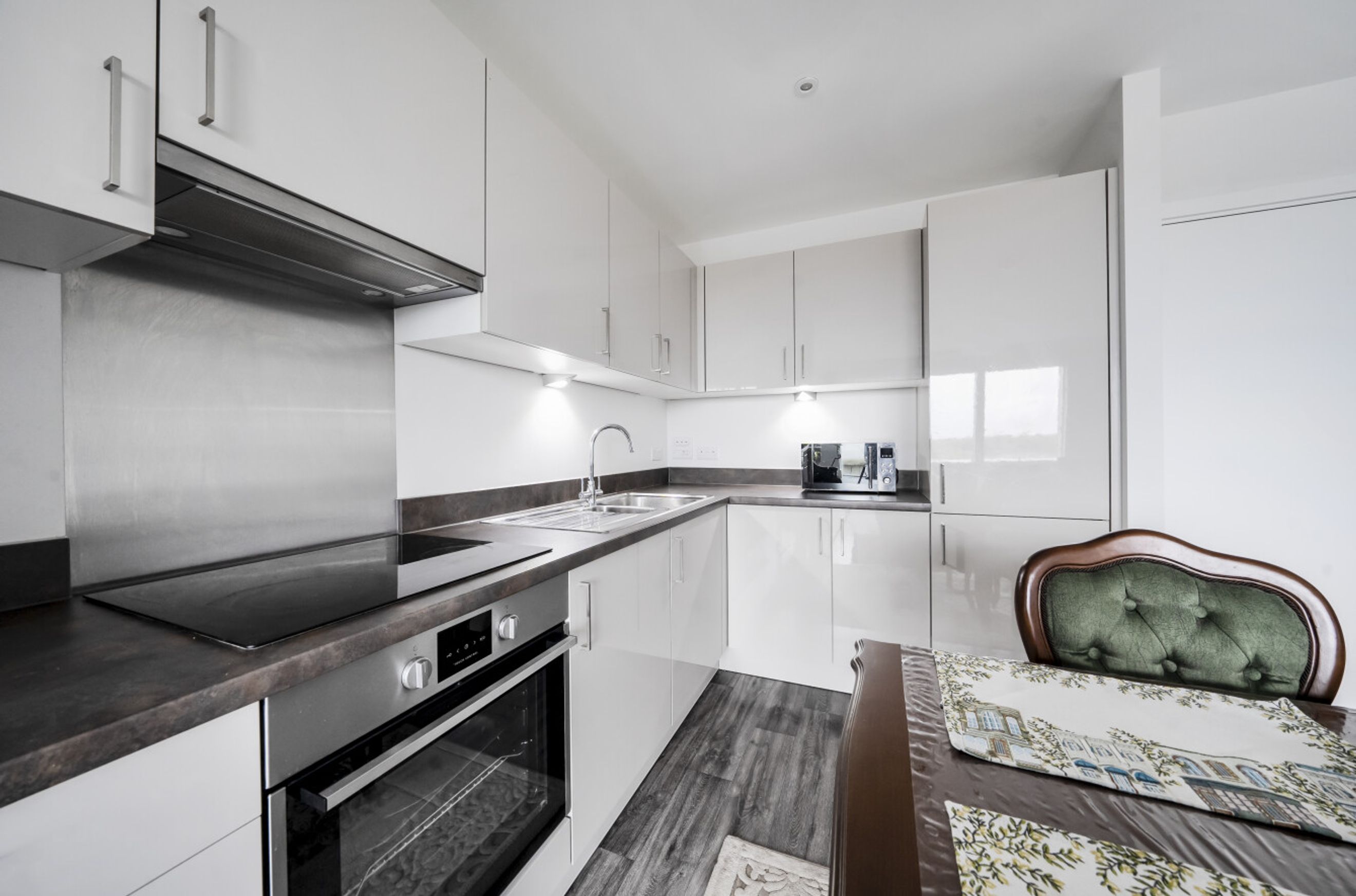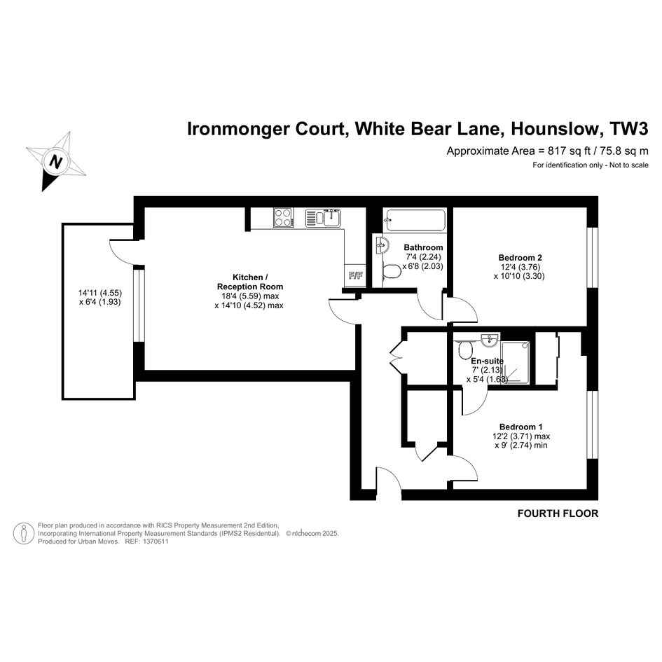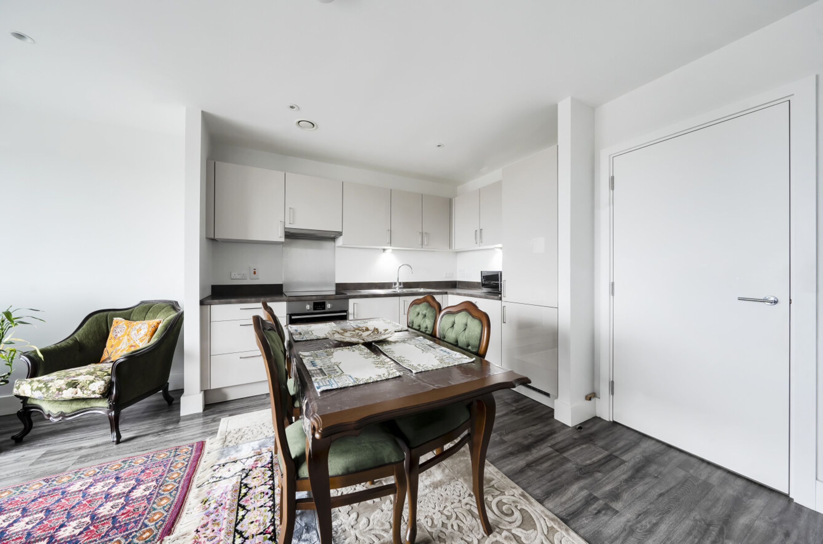 This generously-sized apartment is on the top floor (fourth, building has a lift) of a modern development. The property has a spacious reception room with near-full-height windows and a door that leads out onto the balcony. The open-plan kitchen area features sleek, white units and integrated appliances. There is a main bedroom with fitted wardrobe and en-suite shower room plus a second double bedroom and a bathroom with large overhead shower. Well insulated walls and roof, high performance glazing and a communal heating/hot water system makes for a very good energy-efficiency rating. Ironmonger Court has a communal courtyard and is just minutes from Hounslow East Station. There is a supermarket only a short walk away and the Treaty Shopping Centre is within easy reach. Ofsted list five schools within an approximately half-mile radius, all rated 'Good' and Lampton (secondary) Academy, which is only slightly further away is rated 'Outstanding'.