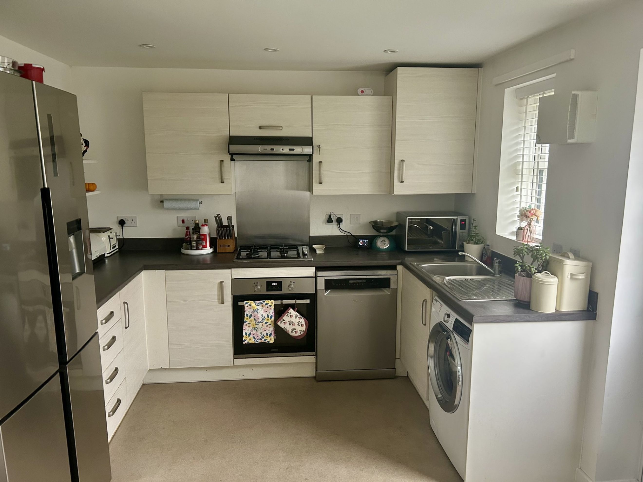 Upon entering, you're welcomed by a large entrance hall that leads into a bright and spacious living room, perfect for relaxing or entertaining. The separate kitchen/diner provides ample storage, an integrated oven, hob, and extractor fan, plus space for your own washing machine. A back door opens directly to the rear garden, making it easy to enjoy outdoor living.