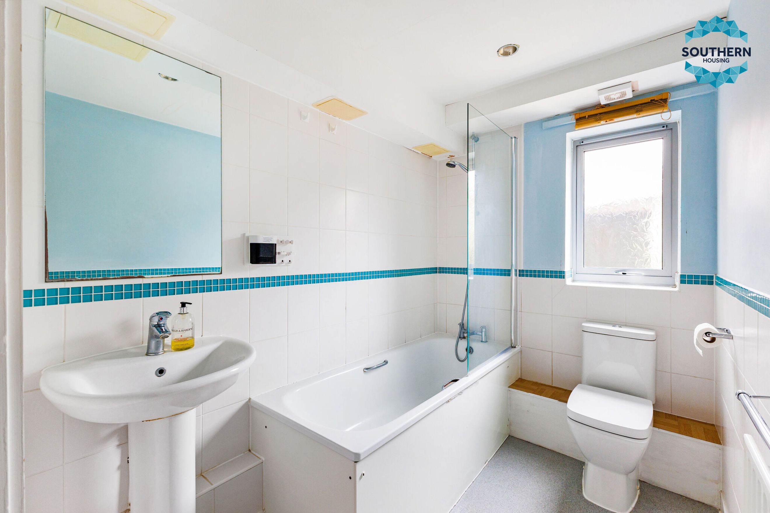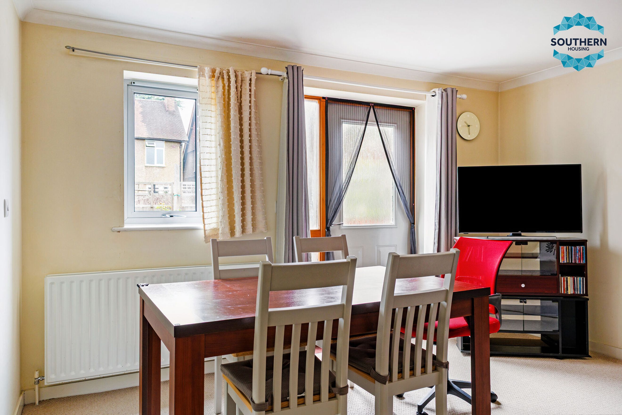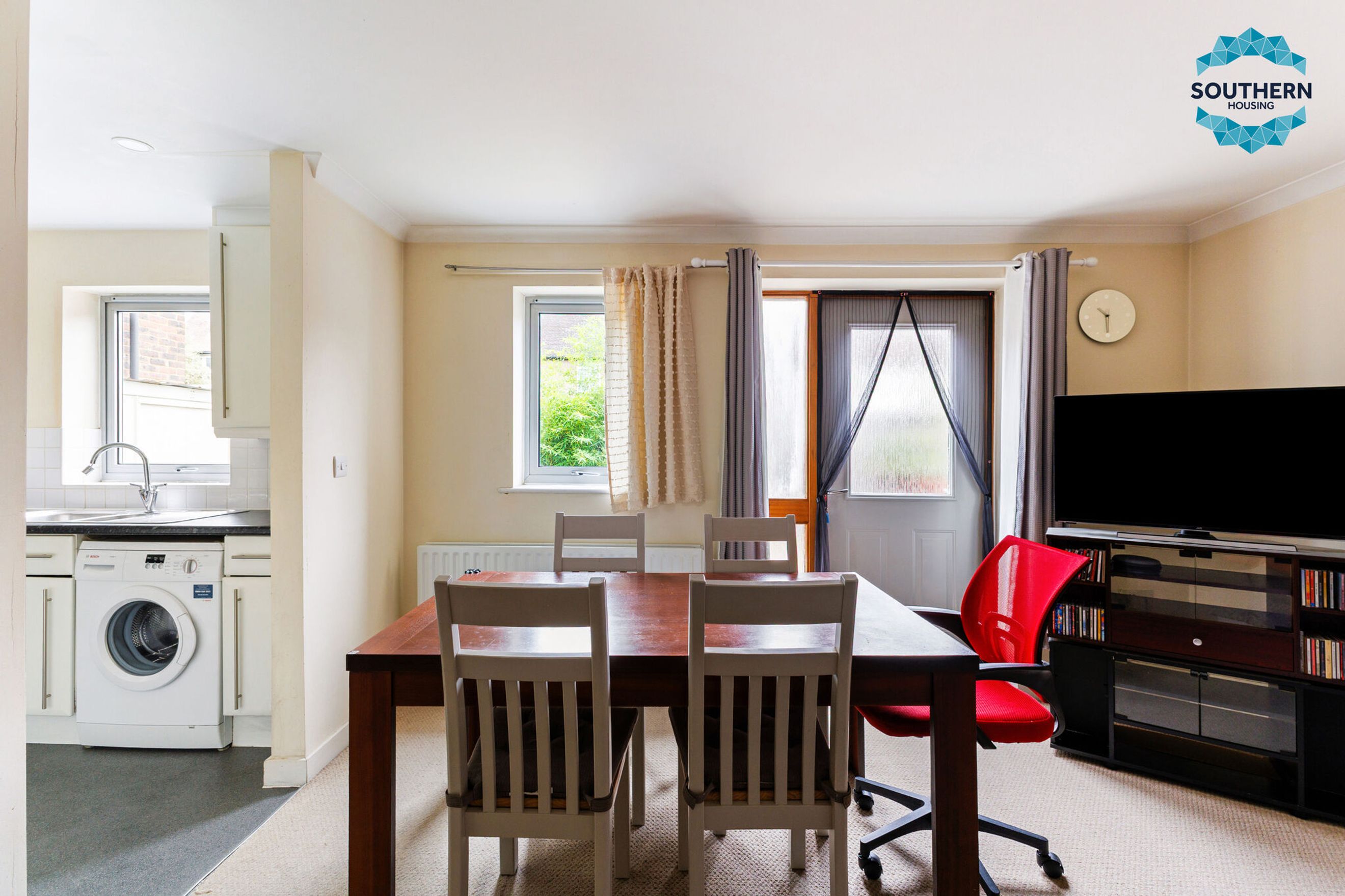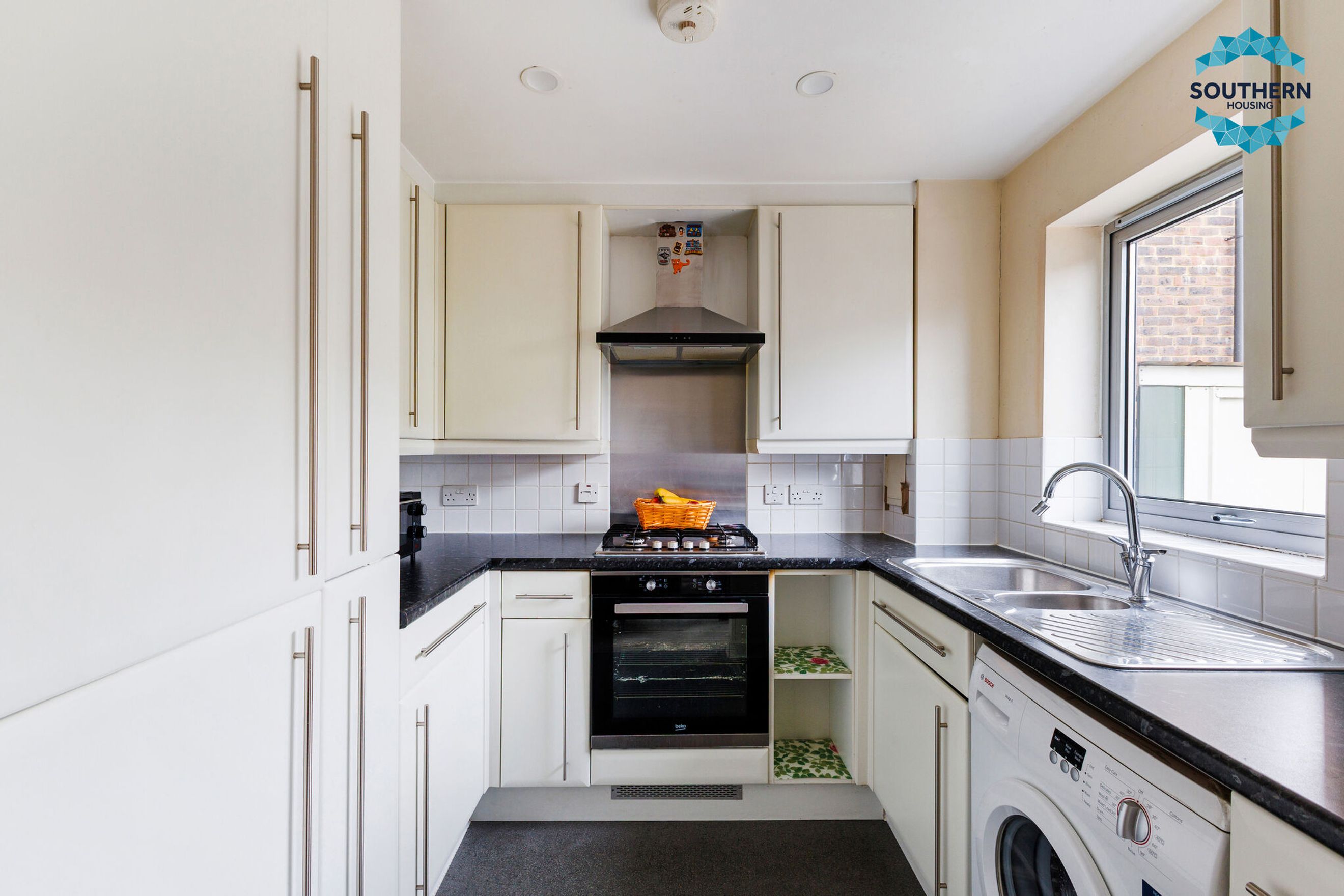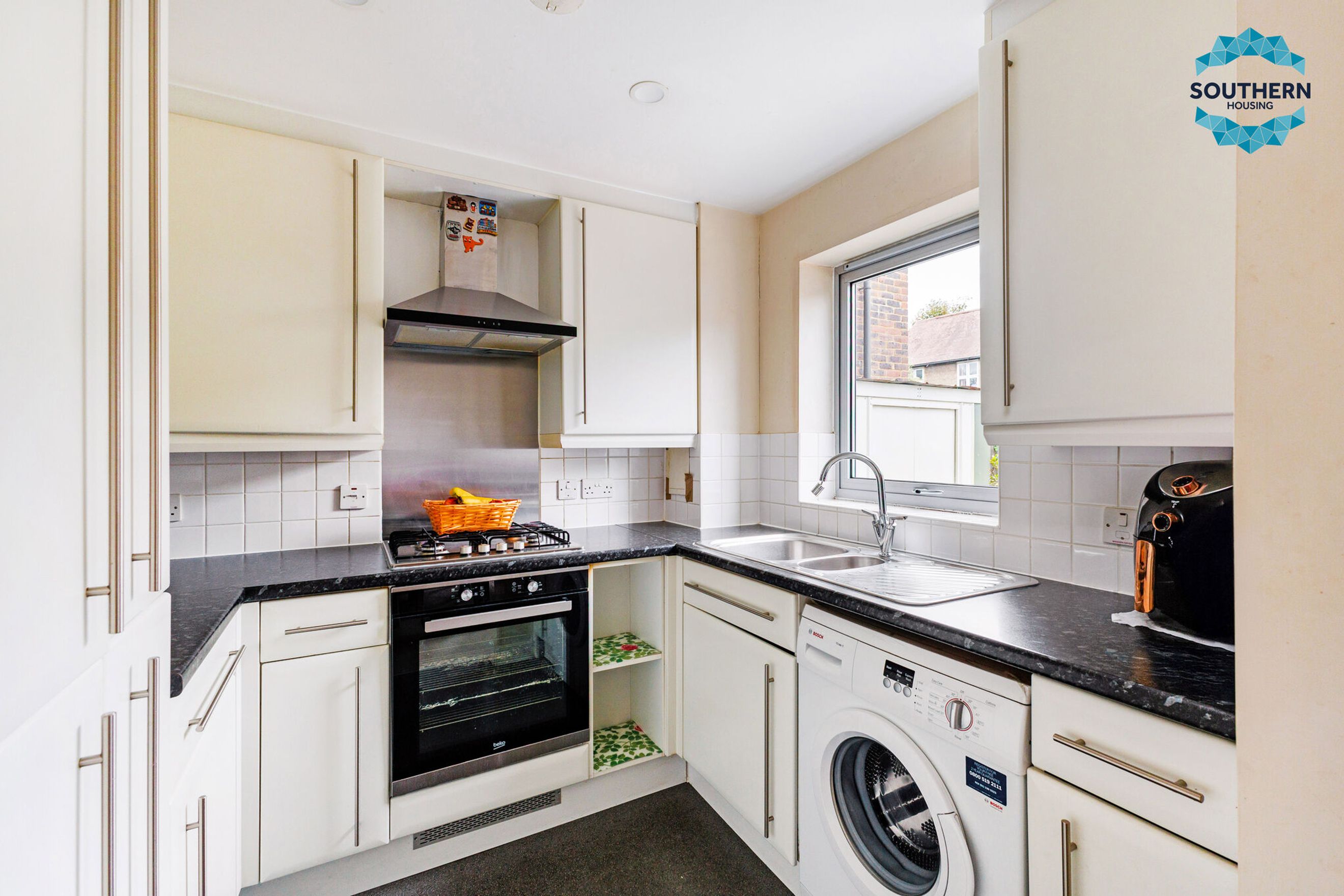 The modern kitchen is equipped with an integrated oven, hob, and extractor fan, along with ample storage and counter space to accommodate all your culinary needs.