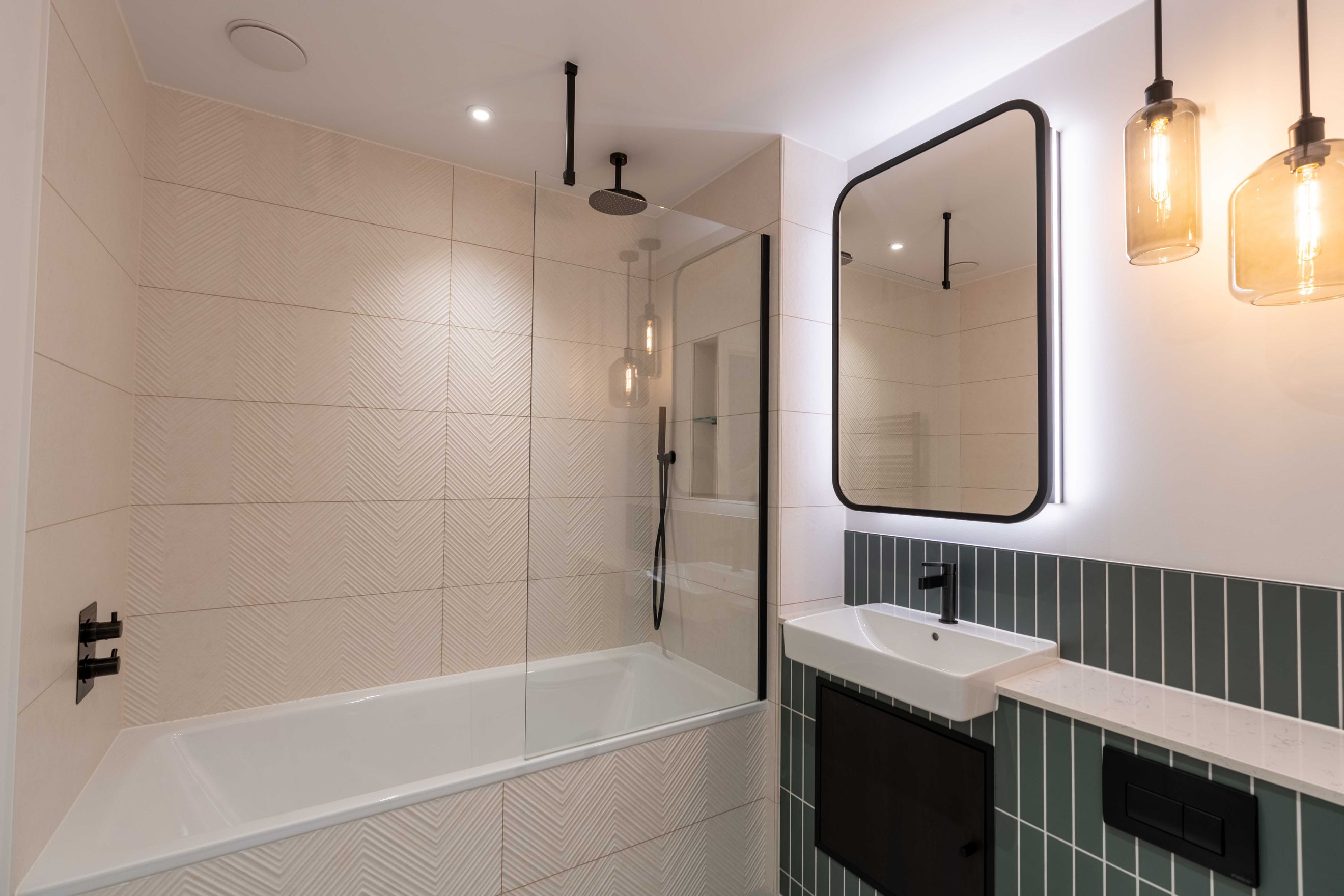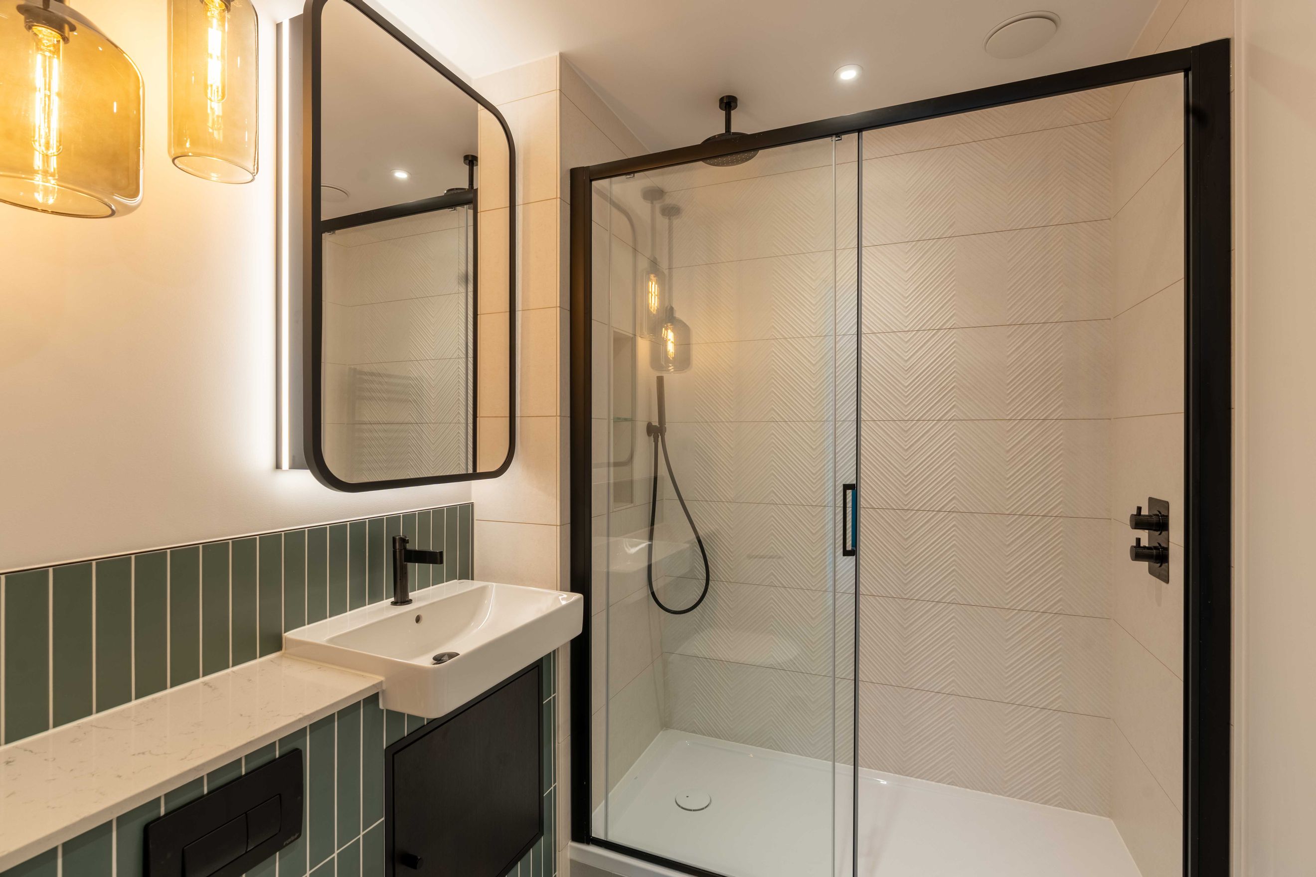 - Contemporary bathrooms featuring premium matte black fixtures and heated towel rails