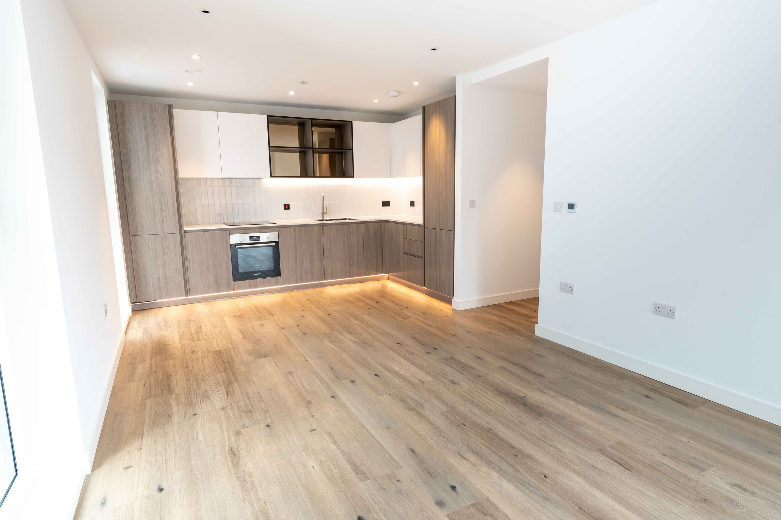 - Bosch integrated appliances: oven, induction hob, fridge/freezer, dishwasher, washer/dryer