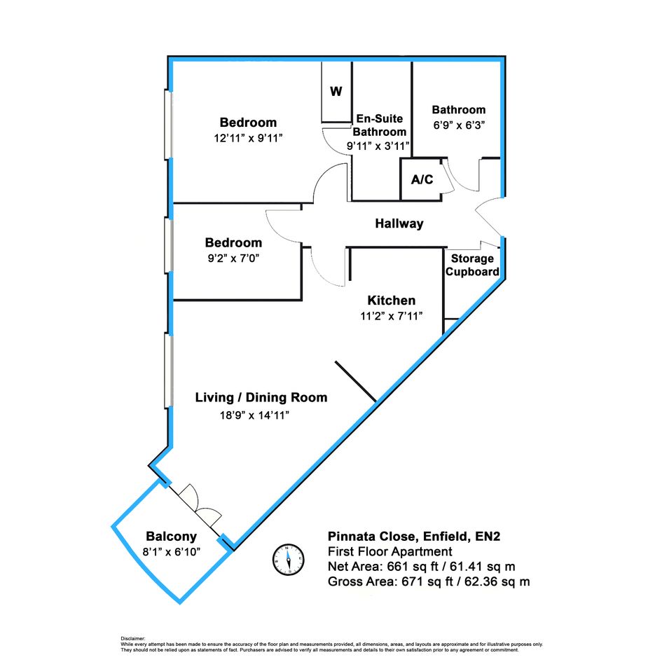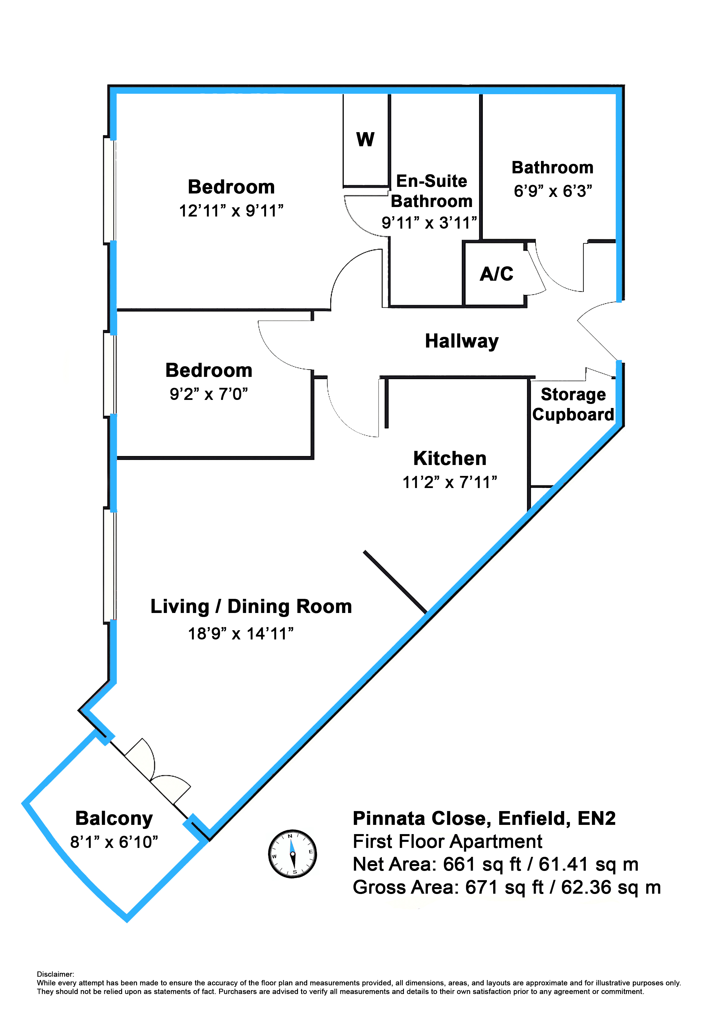The property offers 661 sq ft (61.41 sq m) of net internal space, plus a private southwest-facing balcony, perfect for enjoying afternoon sun and summer evenings.