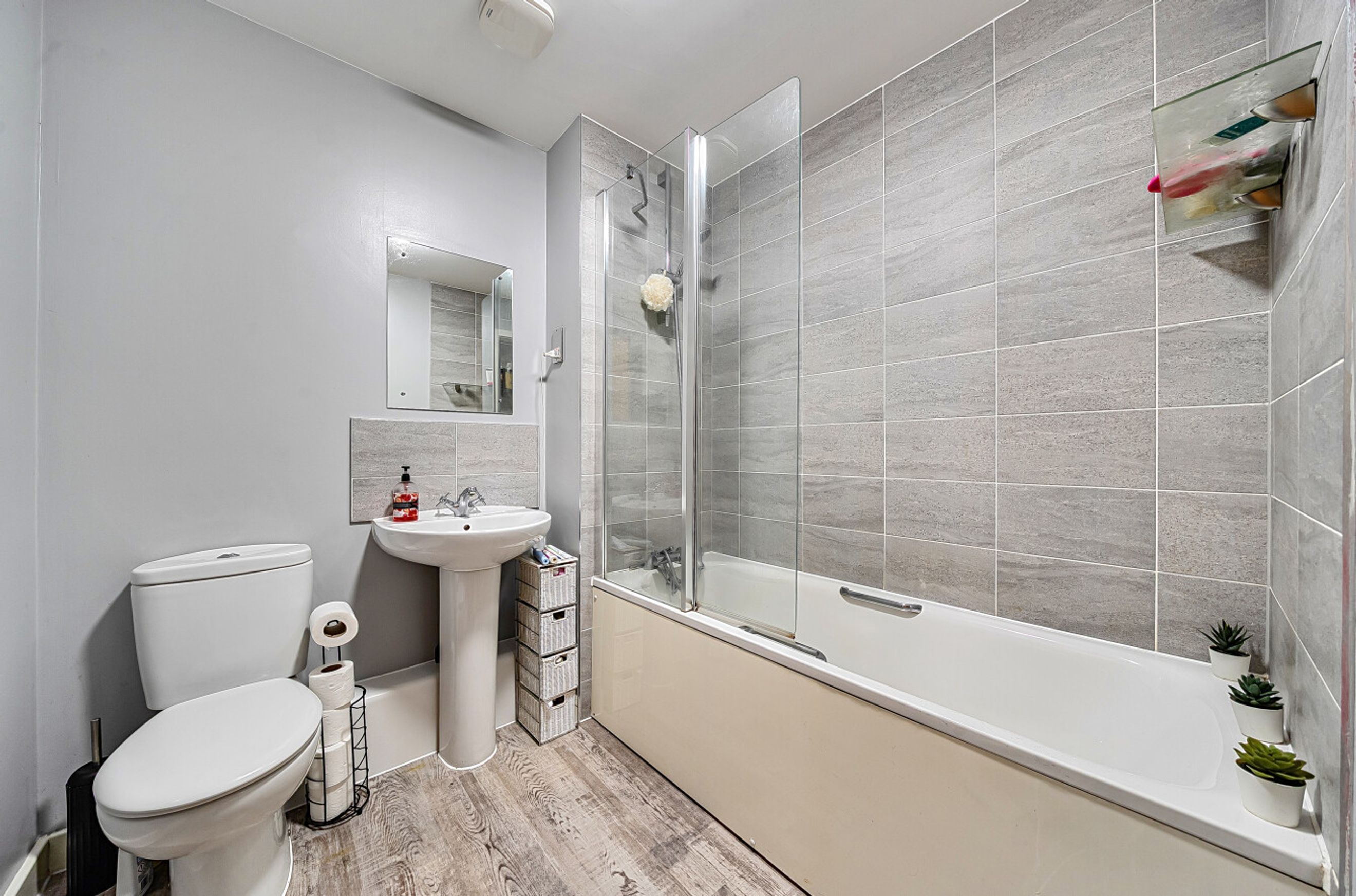 Upstairs, you will find two generously sized double bedrooms. The main bedroom is a the front of the property and is complemented by Bedroom 2, which offers a bright and airy atmosphere. A well-appointed family bathroom with a bathtub and overhead shower completes the first floor, along with useful built-in storage on the landing.