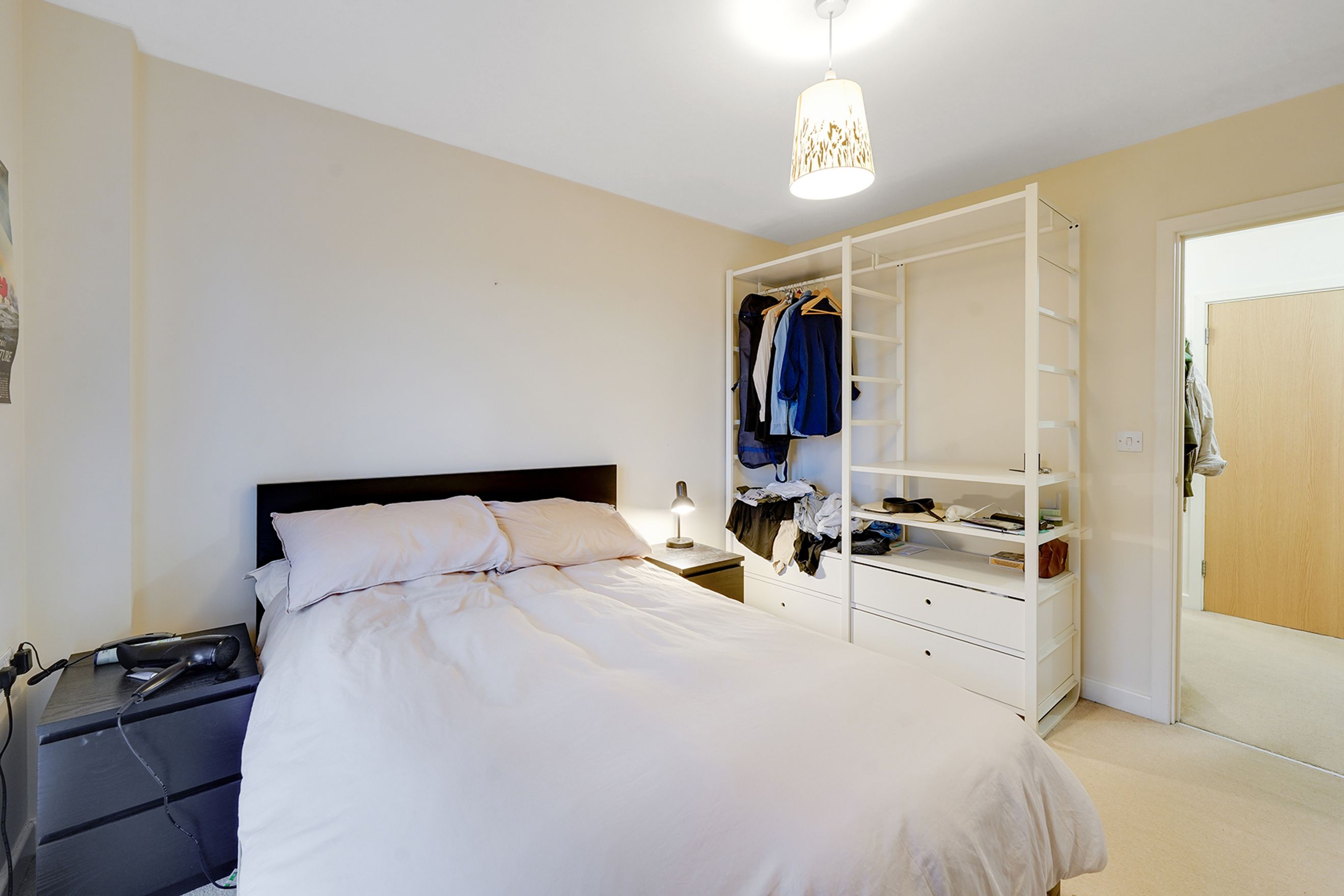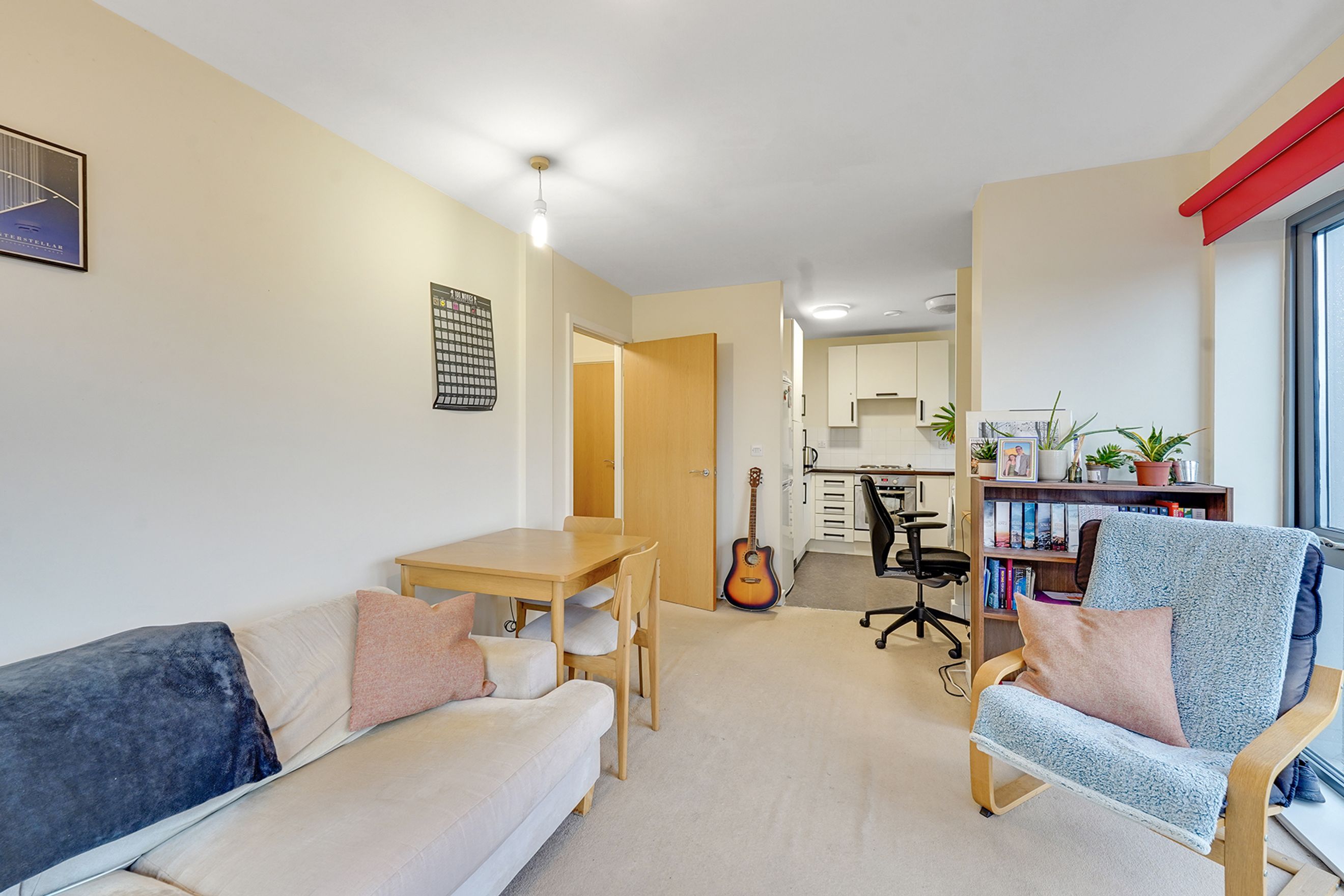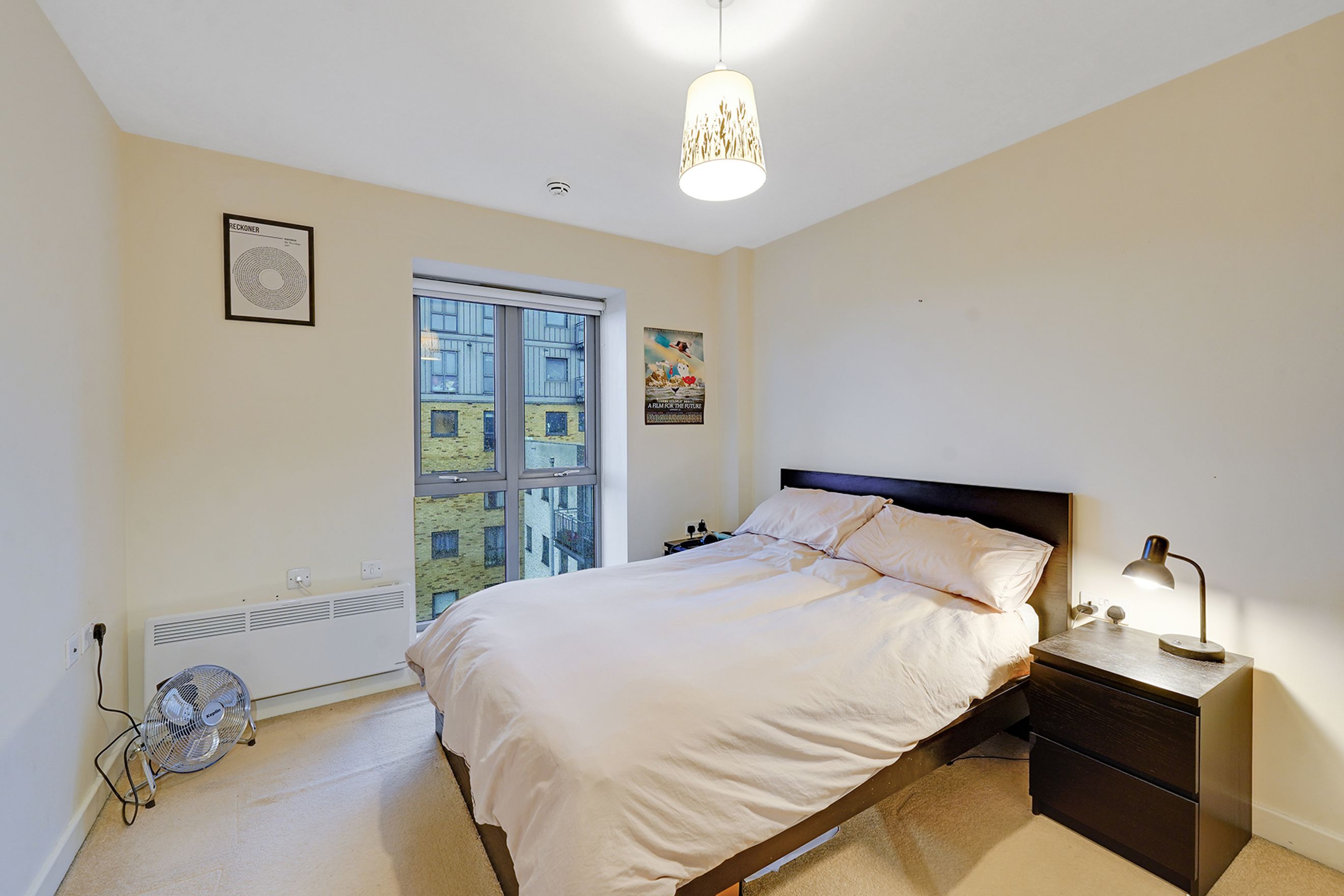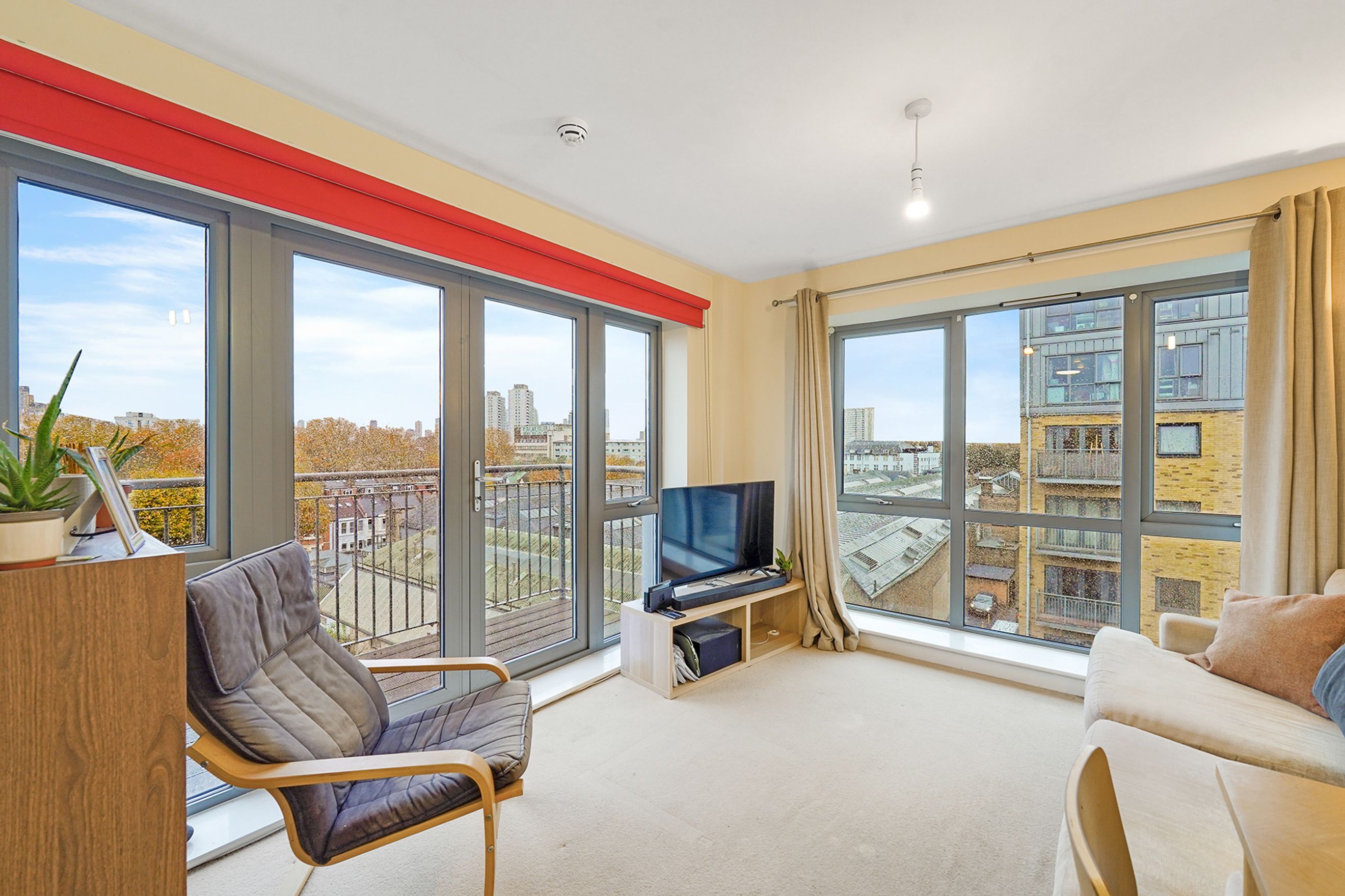 The big, open kitchen/living room captures the light all day, retaining heat. There is ample living space for relaxing and entertaining. The large private balcony is perfect for a morning coffee, dinner or watching the fireworks, with clear view of Canary Wharf, the City and across East London.