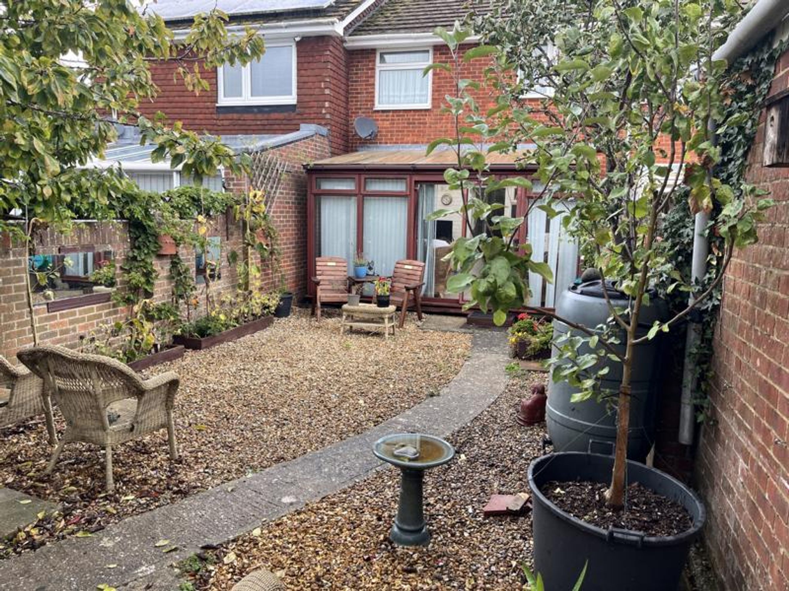 Garden - Access from conservatory, mainly gravelled with established fruit trees and plants. East and west brick-built walls, 6ft high overlapped fence to the rear with gate access to the back alley. Rotary clothes line, waste bin area, tiled patio and door to single garage, up and over garage door access to single car parking area