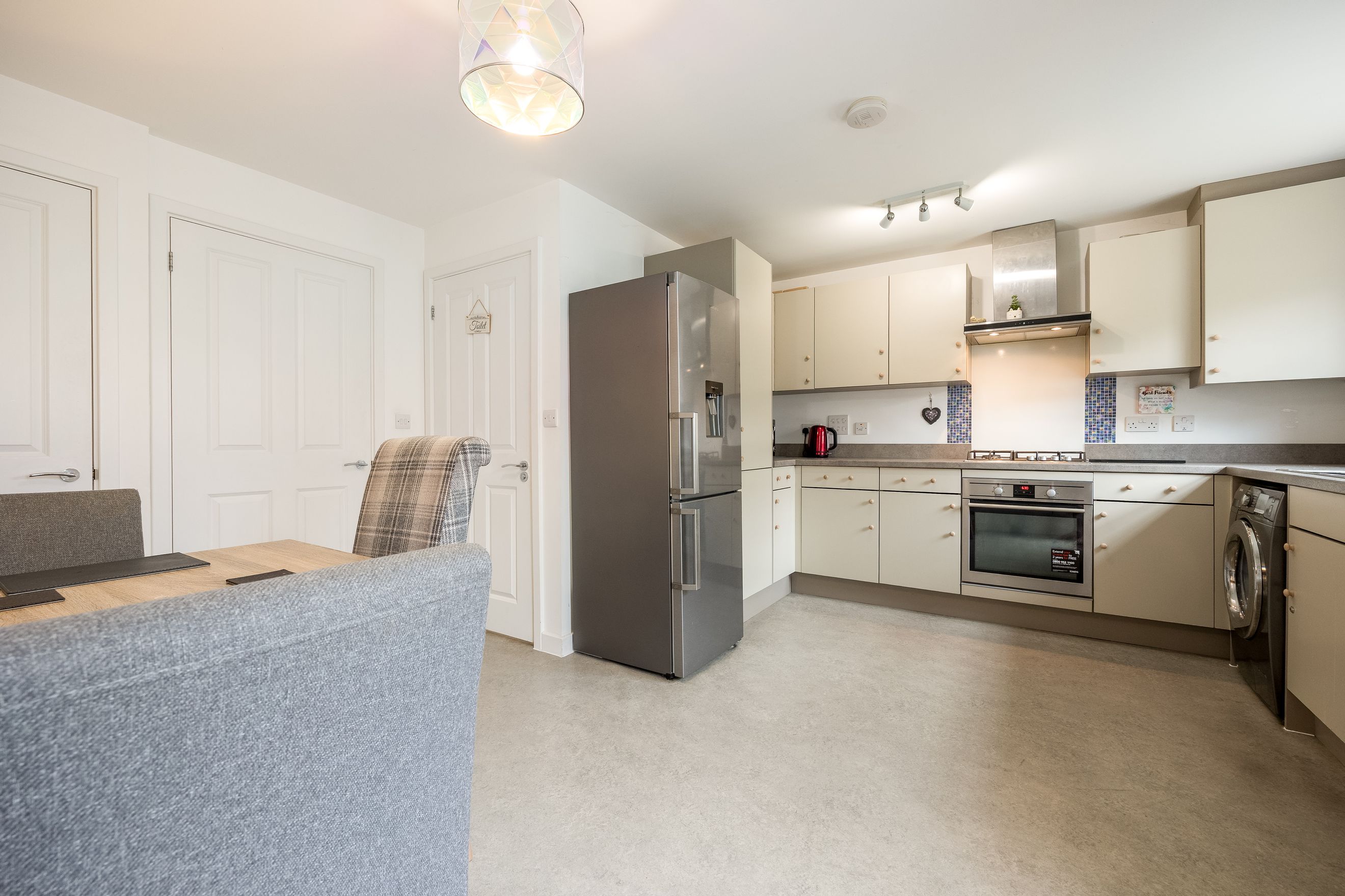 This modern property features a welcoming living room, a well-equipped kitchen with ample storage, and a convenient downstairs WC. Upstairs offers two spacious double bedrooms and a family bathroom with separate airing cupboard. The loft has been boarded for added storage.