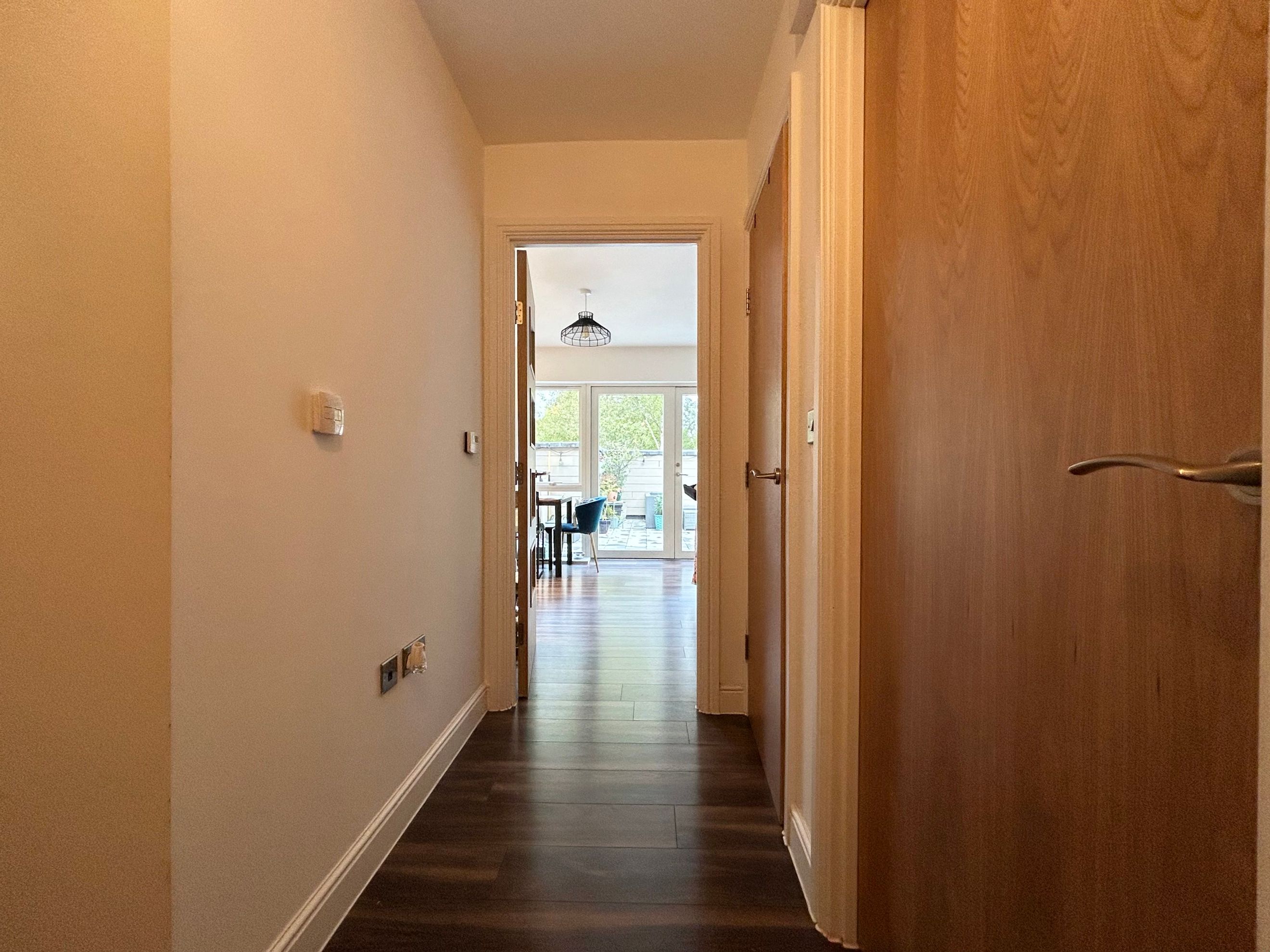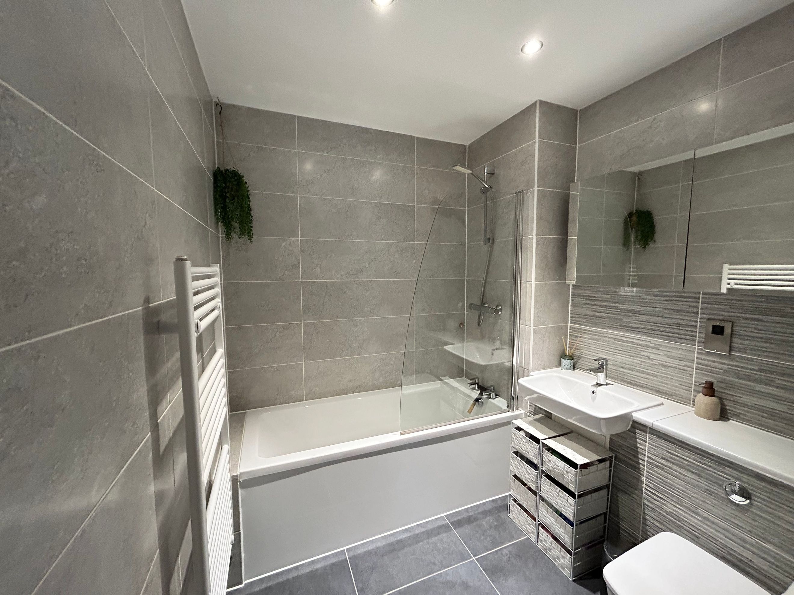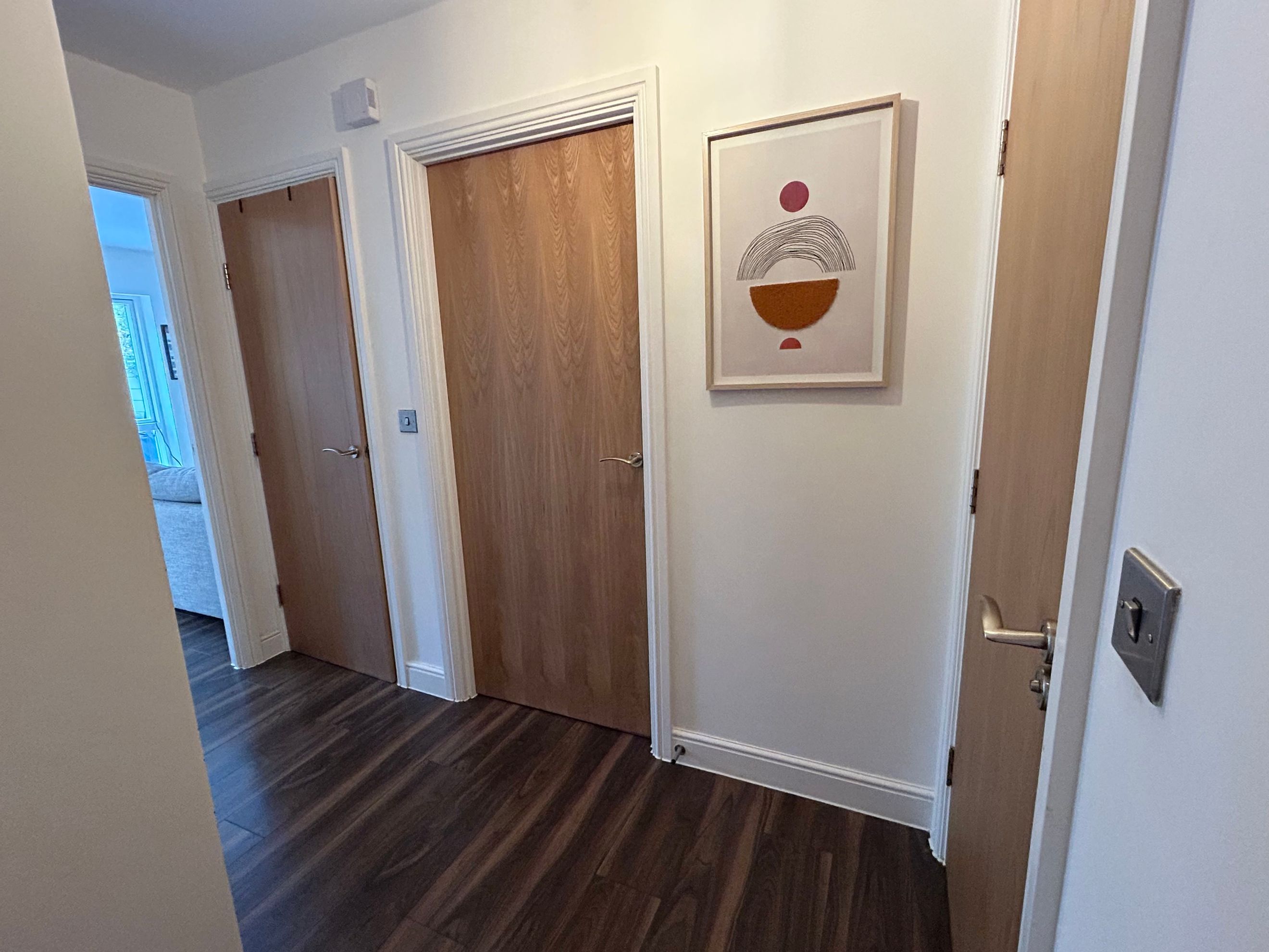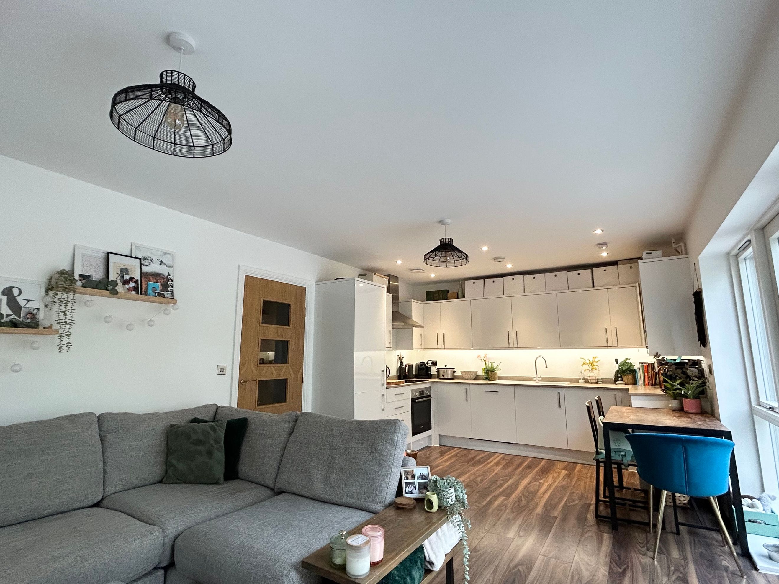 Situated on the second floor, this apartment features a bright and spacious open-plan living area — perfect for relaxing or entertaining guests. The modern kitchen comes fully fitted with high-quality units and integrated appliances, while the sleek bathroom boasts a contemporary white suite with a timeless finish.