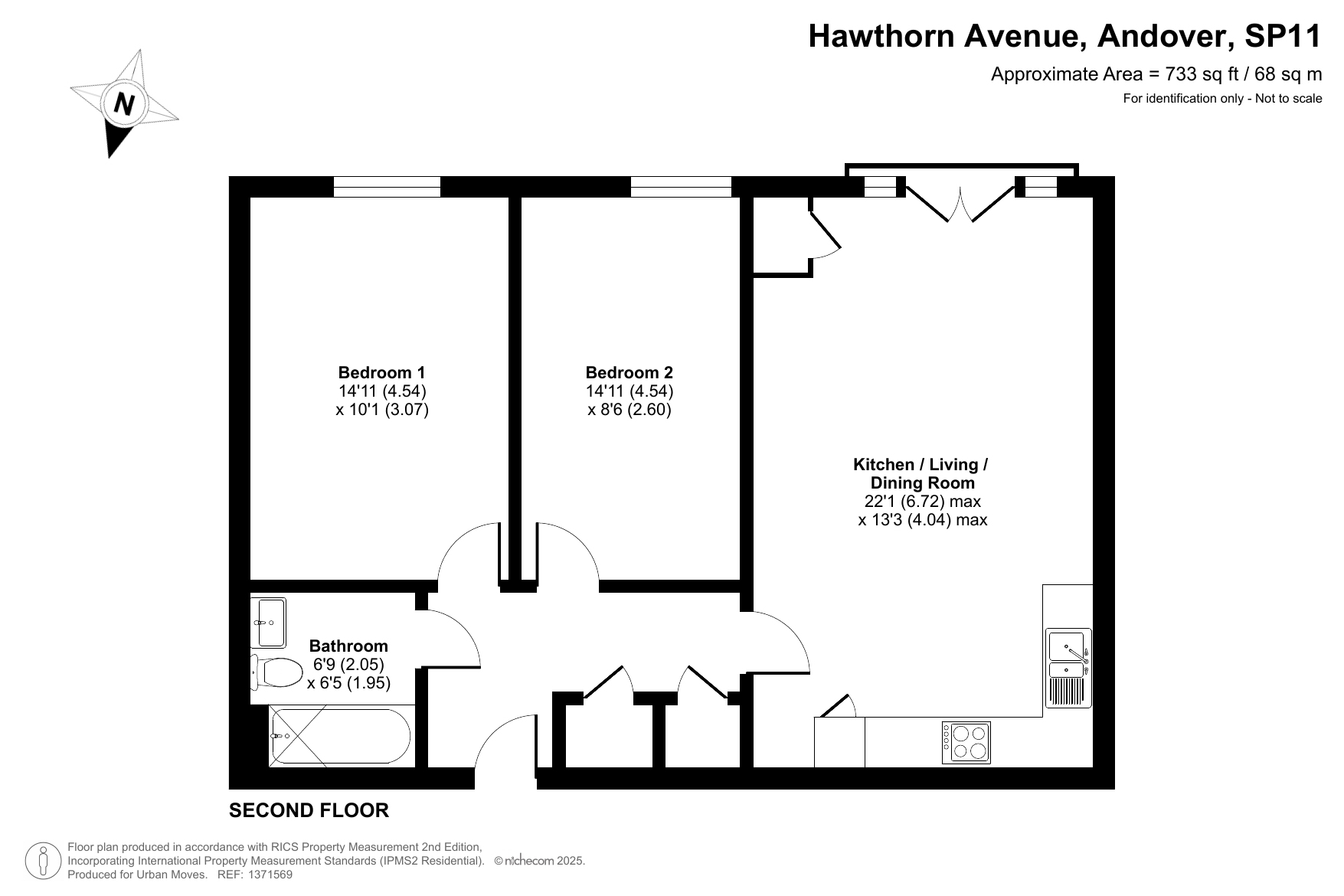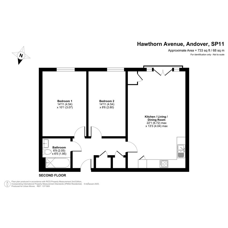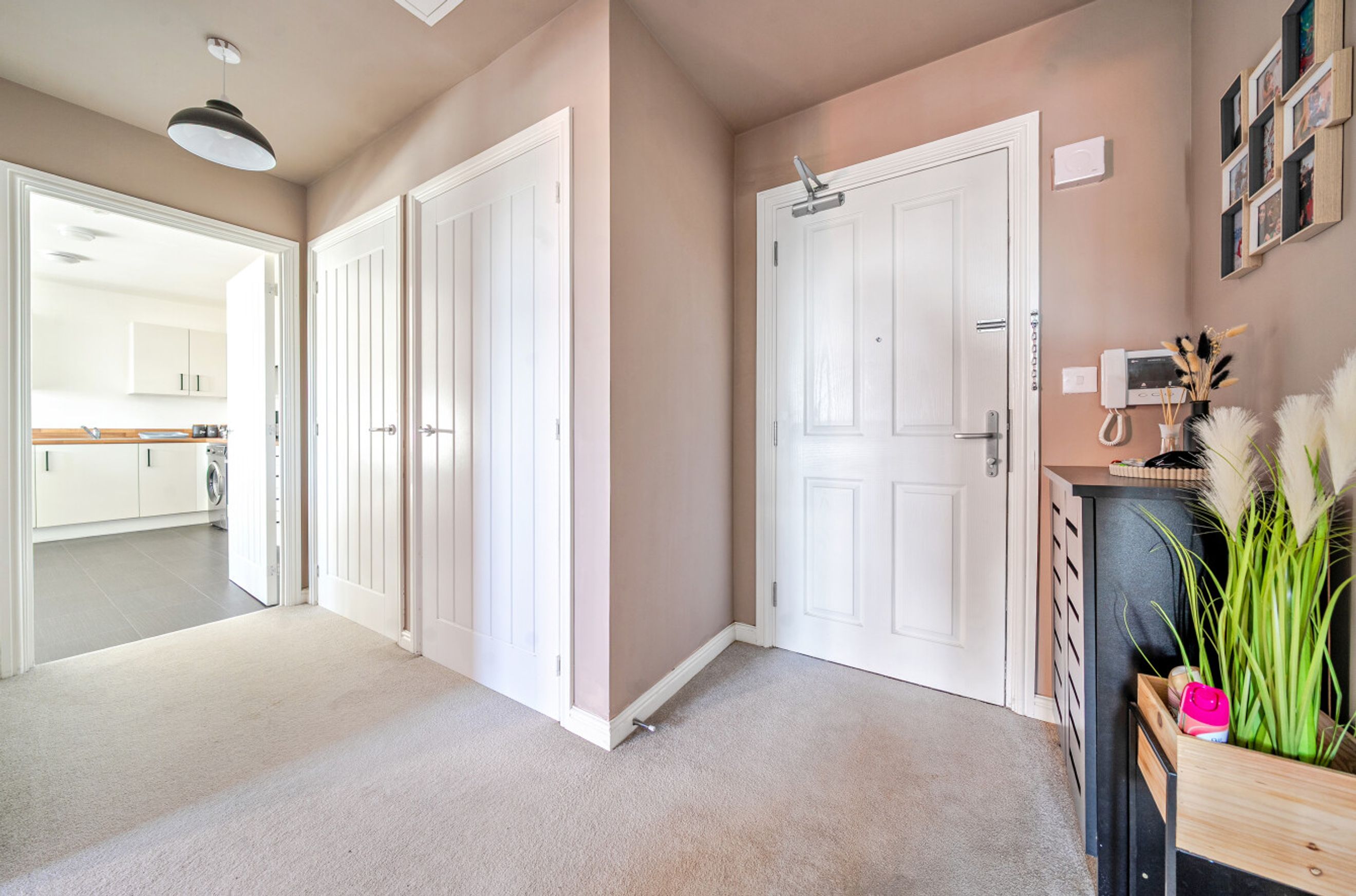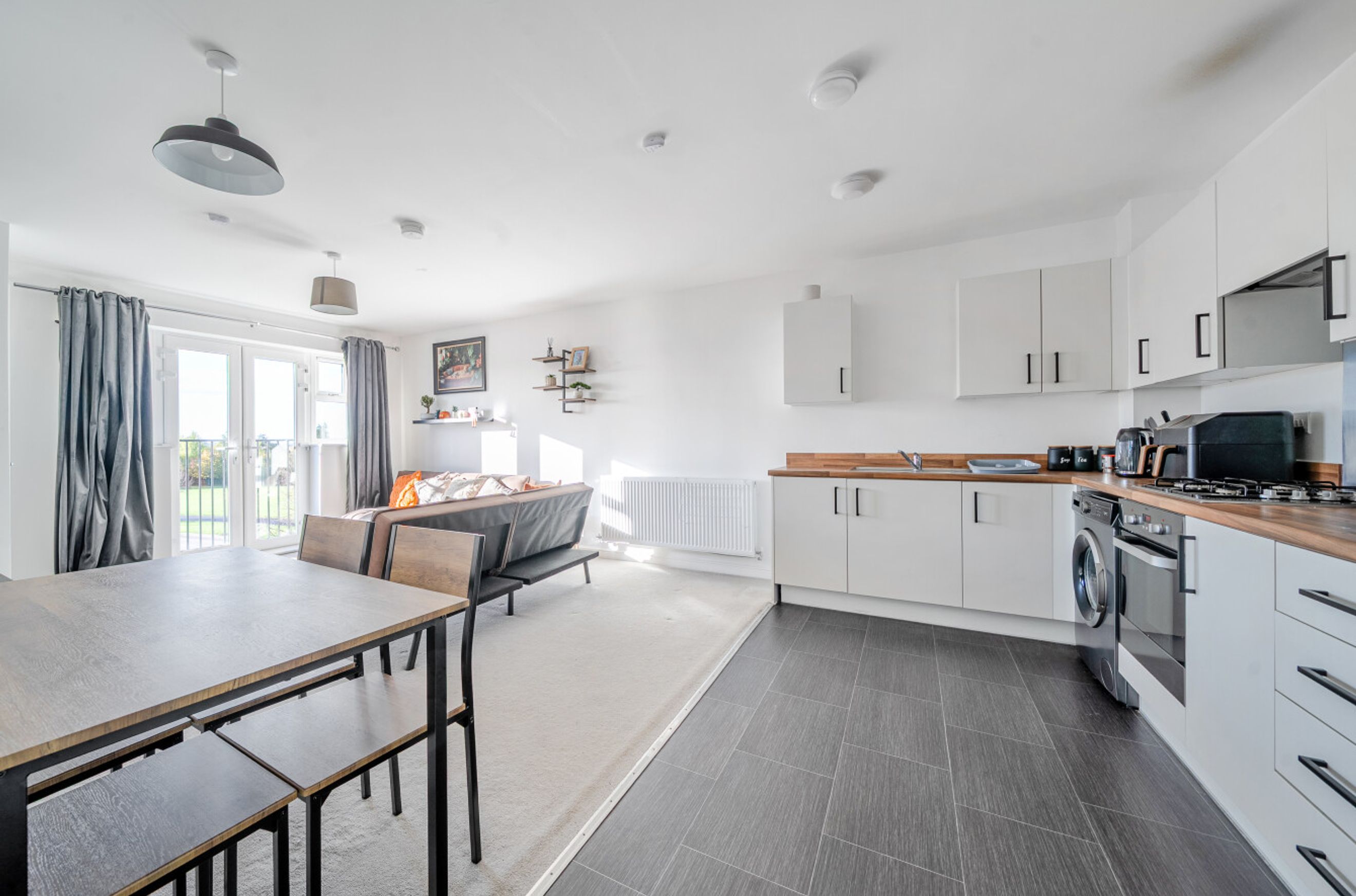 This smartly-presented flat is on the top (second) floor of a modern development. The property has a twenty-two-foot reception room with attractive, open-plan kitchen area at one end and a south-facing Juliette balcony at the other. There is a spacious main bedroom plus a slightly smaller second double bedroom, a good-sized bathroom and some useful hallway storage. Well insulated walls and roof, high performance glazing and gas central heating all contribute towards a very good energy-efficiency rating. The flat comes with the use of a car port plus an additional parking space and is only a short drive from both Andover Railway Station and the town centre. Nearby Diamond Wood was formed in 2012 so the trees still have growing to do but the forty-four acres provide plenty of outside space to explore.
