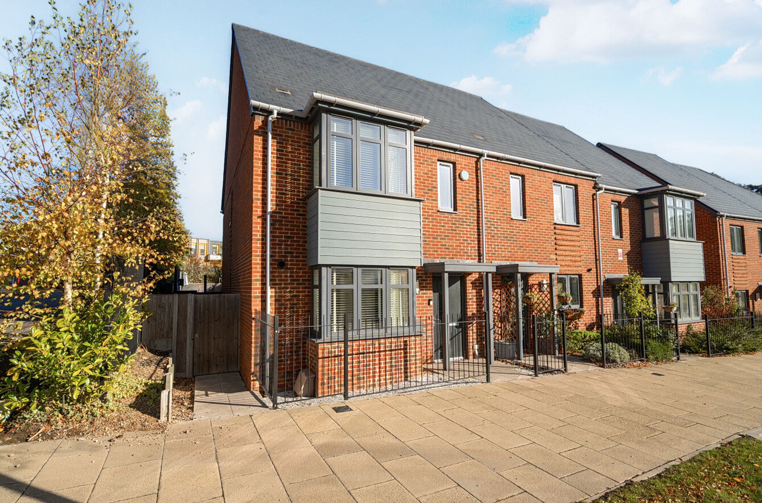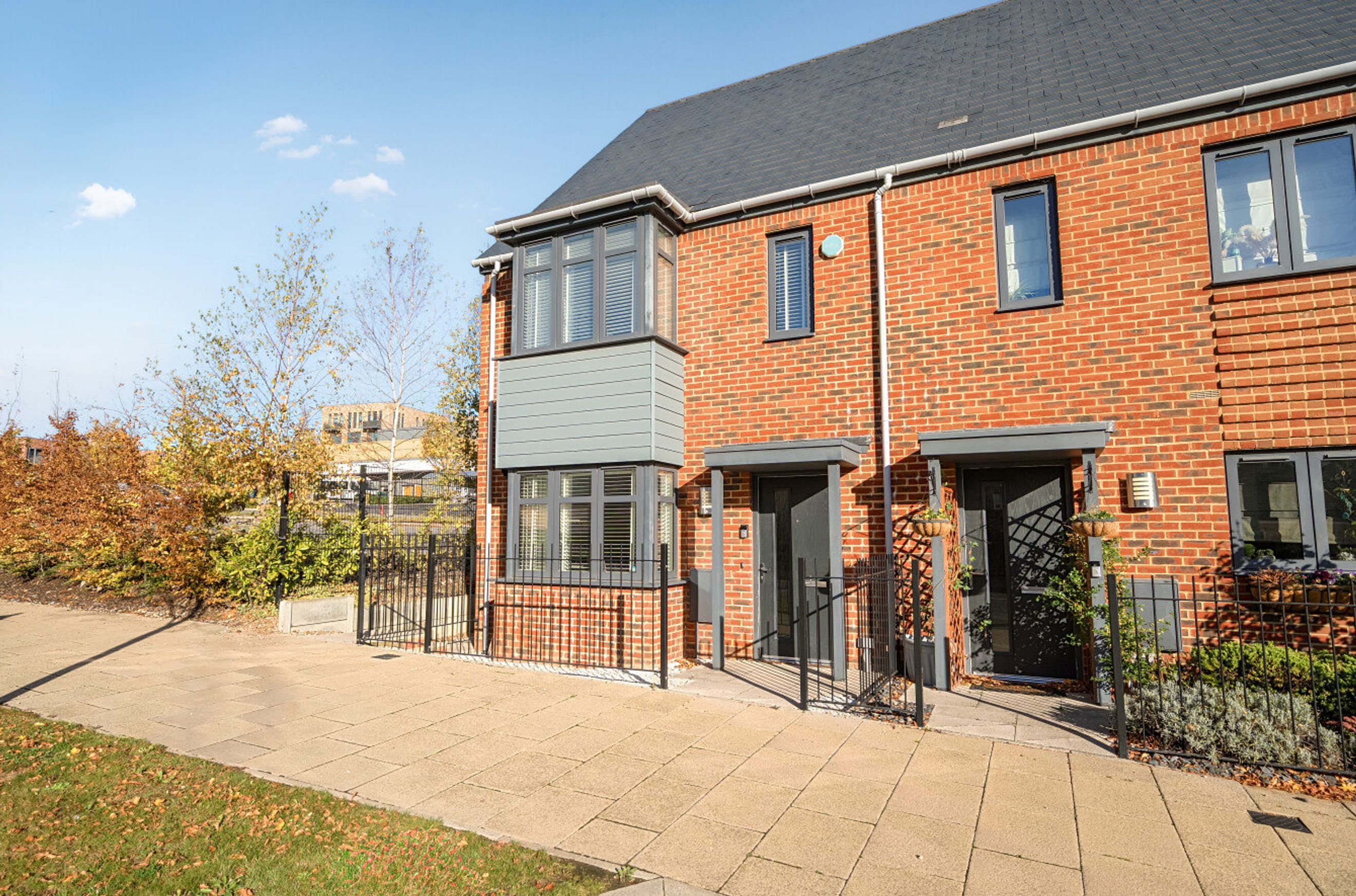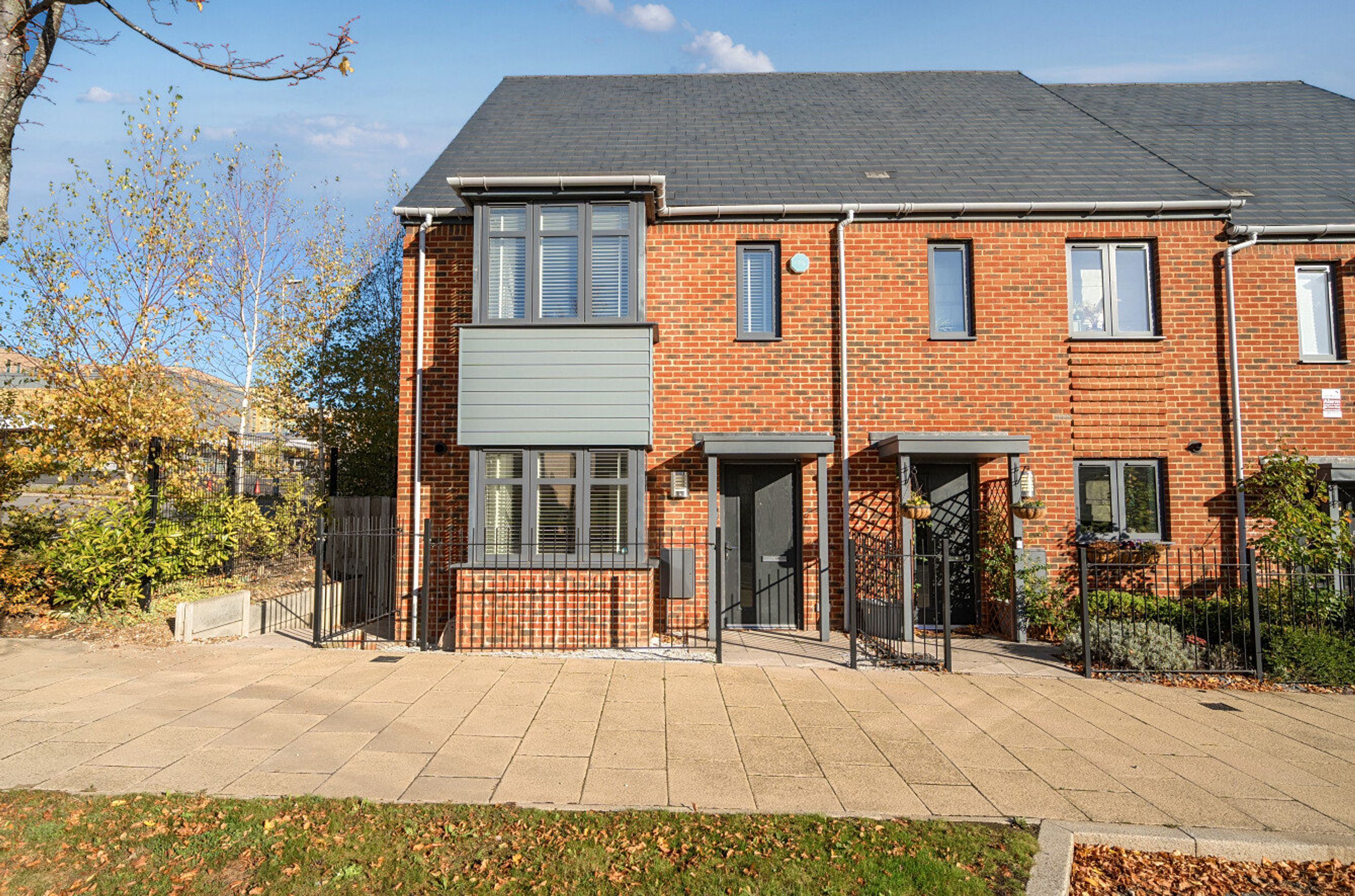 A great chance to buy a spacious, shared-ownership family home. This modern, end-of-terrace property has an attractive entrance hall with herringbone-style flooring, a generously-sized kitchen with integrated appliances, a central cloakroom and a full-width reception room with decorative wood panelling. Patio doors open onto a sixty-two-foot rear garden. Upstairs, on the first floor of the house, is a main bedroom with bay window plus two further double bedrooms and a naturally-lit bathroom. The energy-efficiency rating is very good, thanks to well insulated walls, roof and floor, gas central heating and high performance glazing. Behind the terrace, and easily accessible via the garden gate, is a parking area which includes a space allocated to this property. There are also several, shared, visitor spaces nearby. Alternatively, Castle Hill Drive is within walking distance, or brief bike ride, of both Swanscombe and Ebbsfleet Railway Stations. Cherry Orchard Primary School, which is just minutes away, is Ofsted-rated 'Outstanding'.