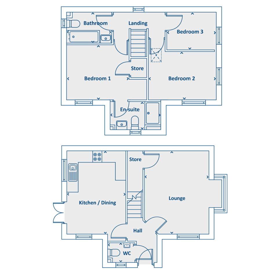 The ground floor of the Weaver features a light and airy lounge with a feature bay window, a fitted kitchen and a dining room with French doors leading onto a private rear garden ideal for alfresco dining. There is also a downstairs W.C.